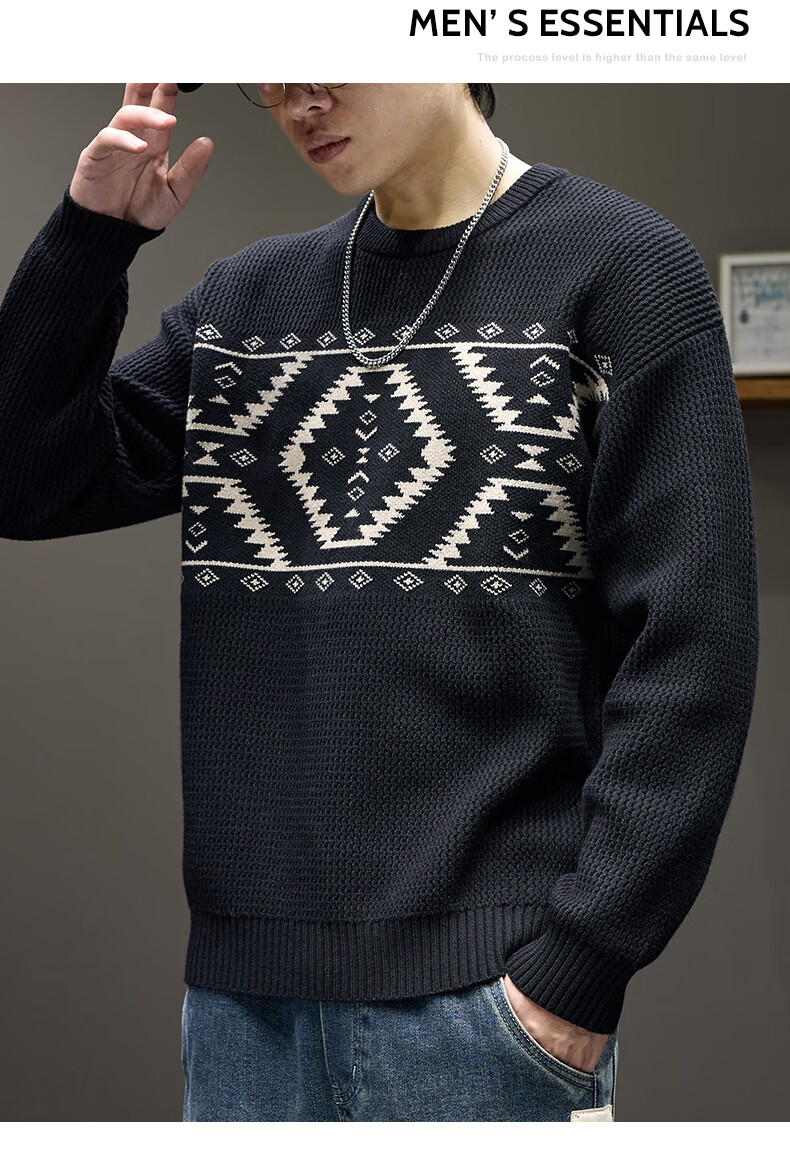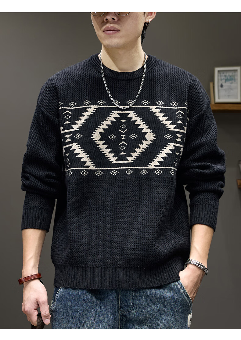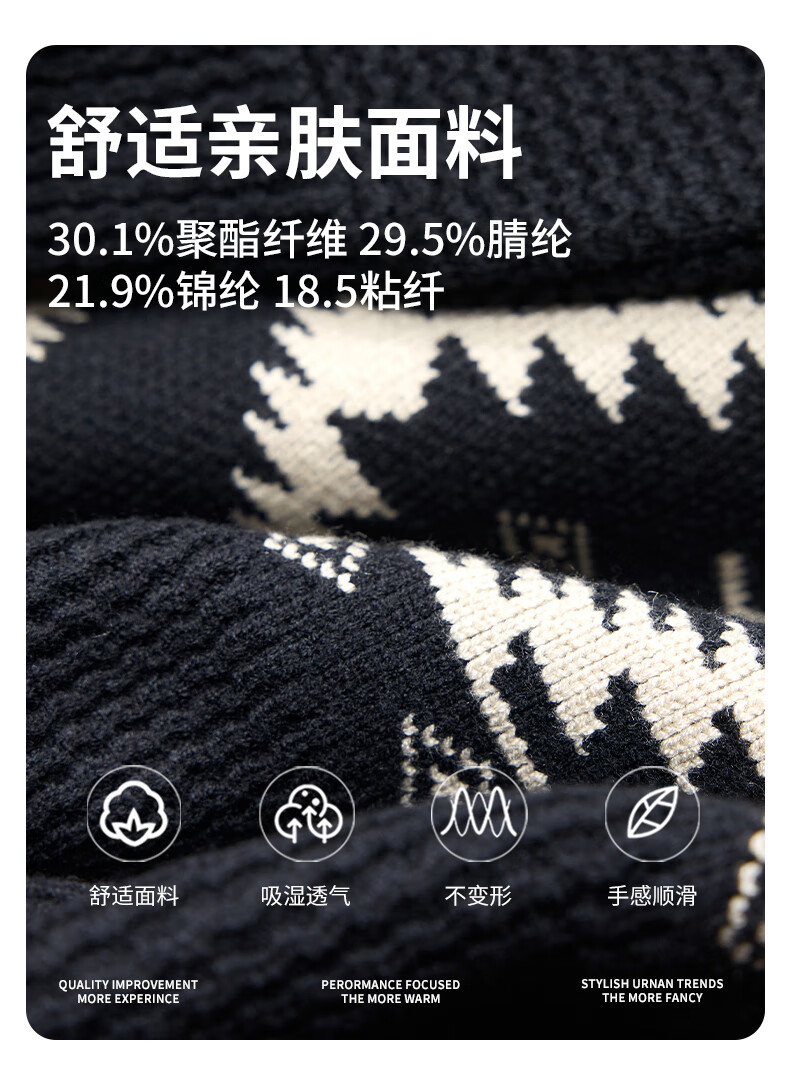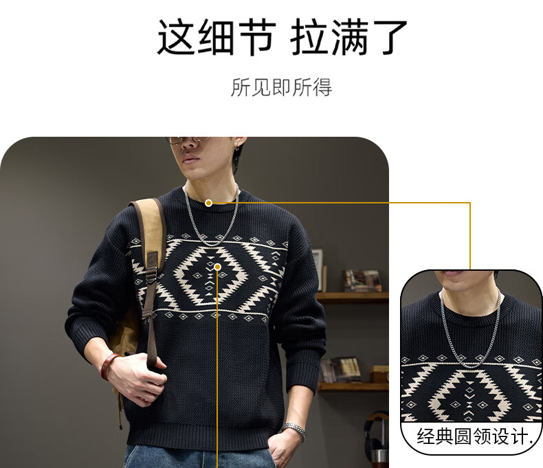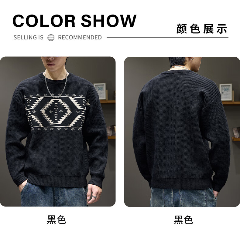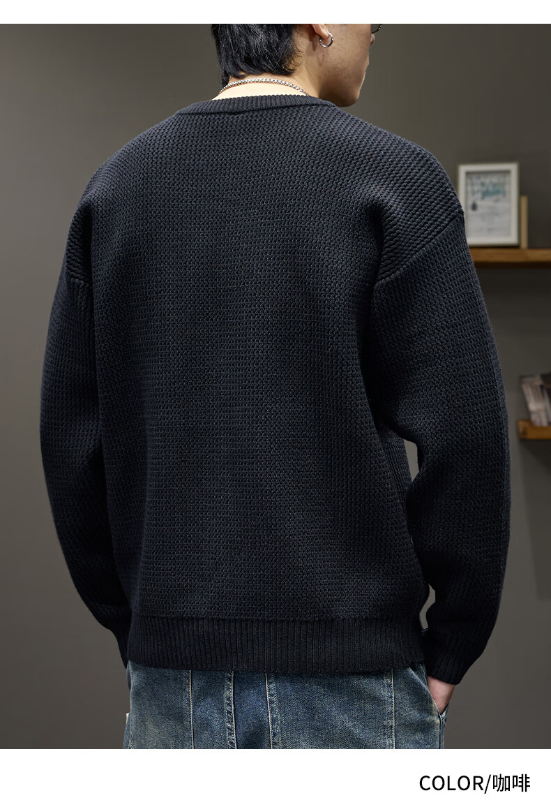 新百伦重磅圆领毛衣男士冬季加厚保暖针织衫宽松潮牌休闲毛线衣外套 黑色 L 码【建议130-145斤】
