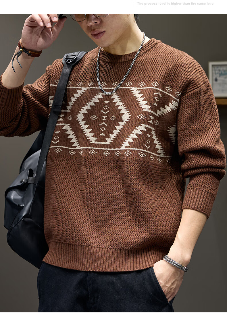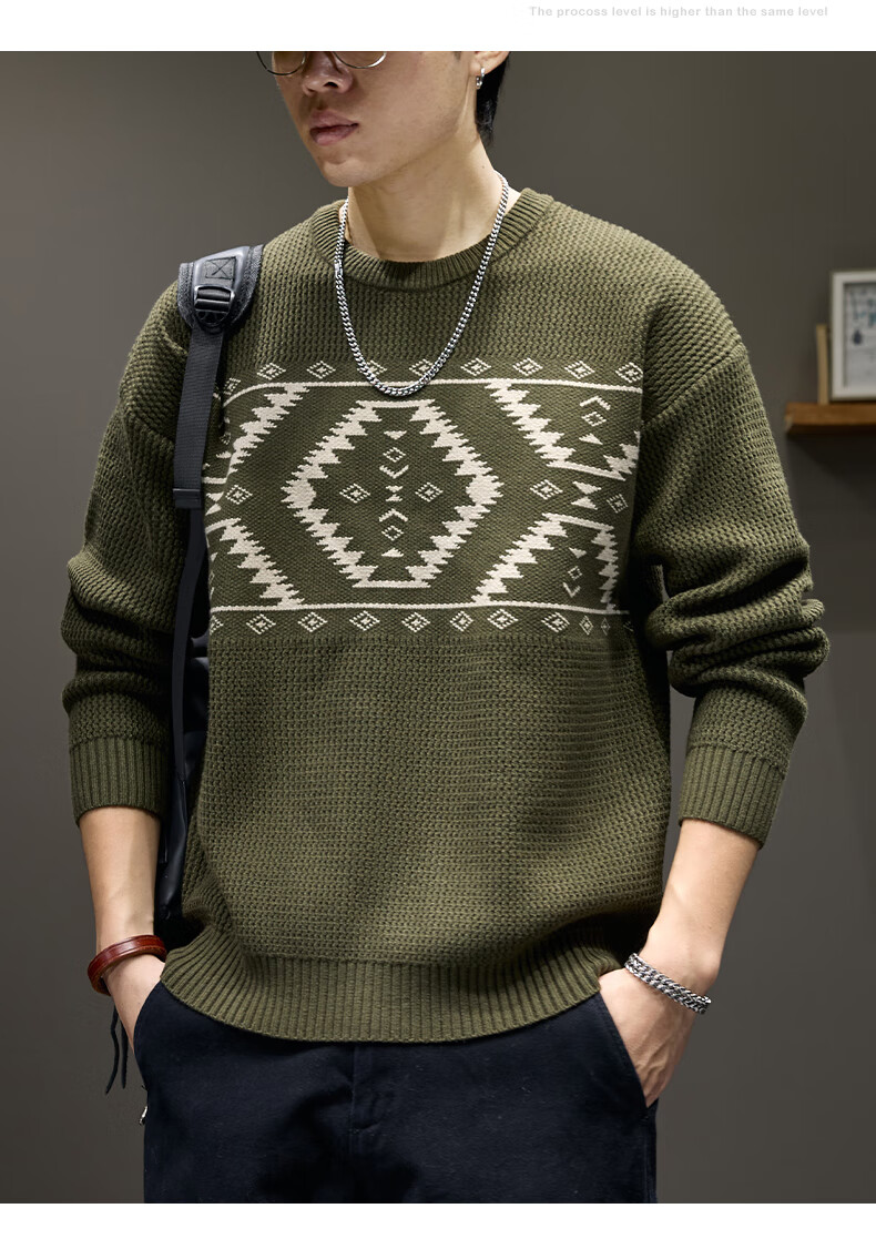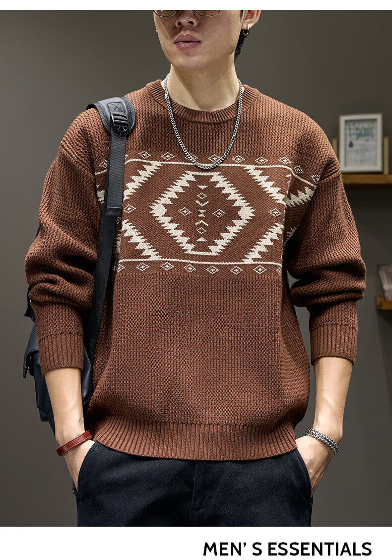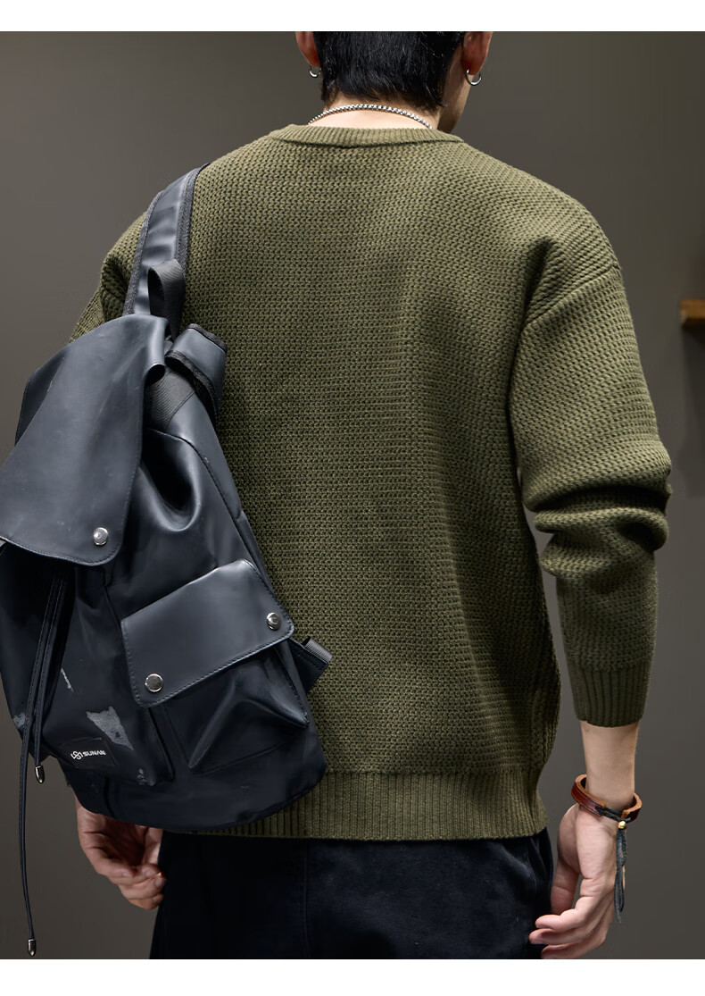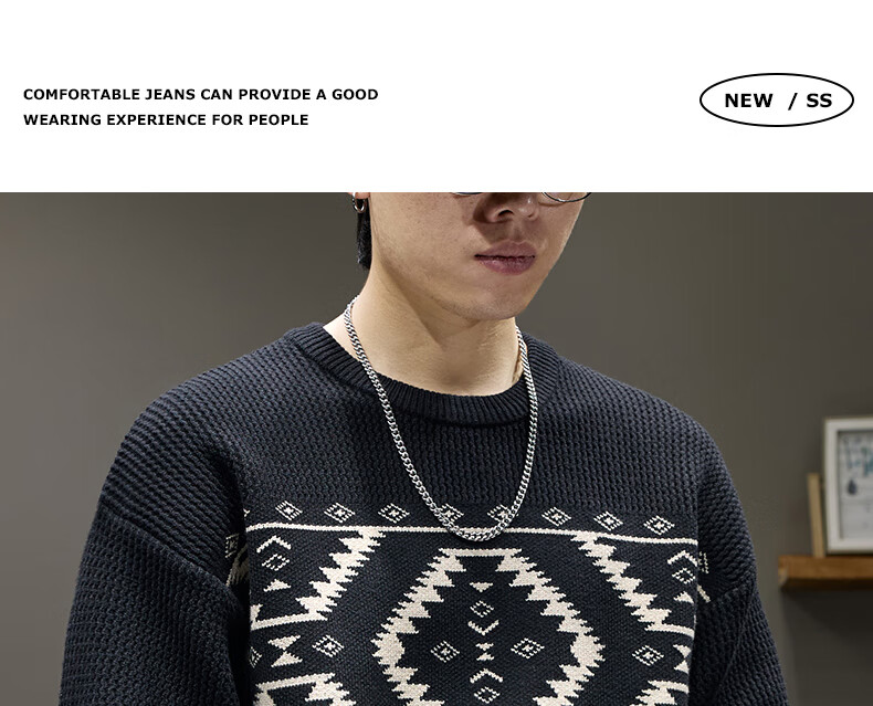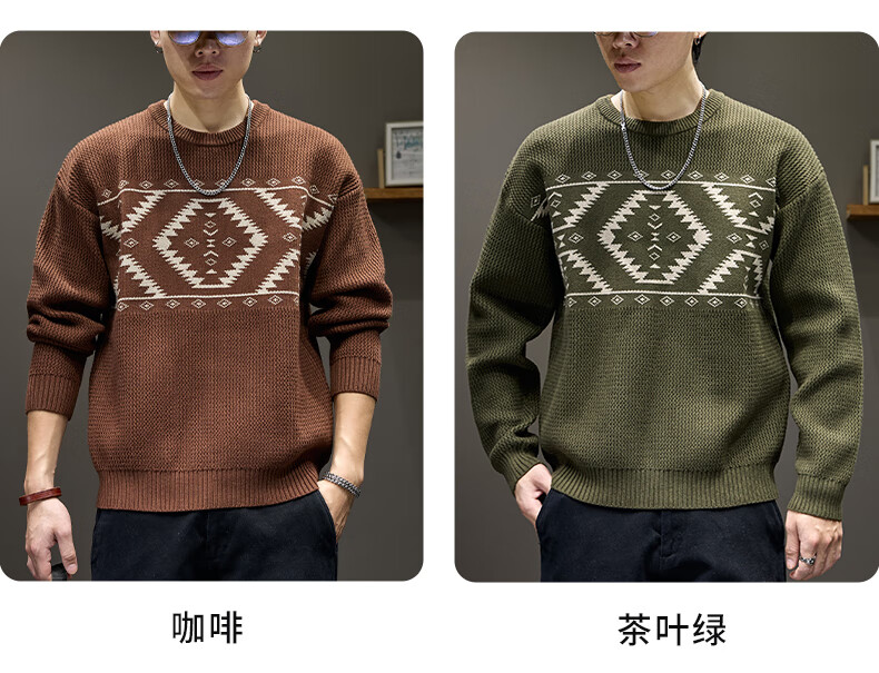 新百伦重磅圆领毛衣男士冬季加厚保暖针织衫宽松潮牌休闲毛线衣外套 黑色 L 码【建议130-145斤】