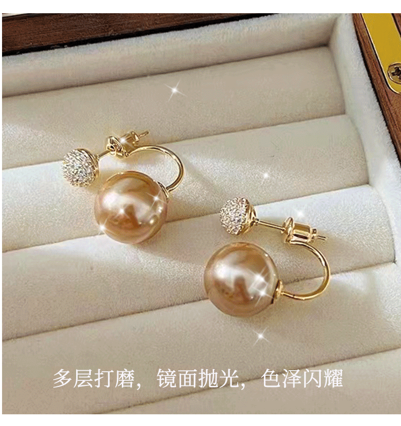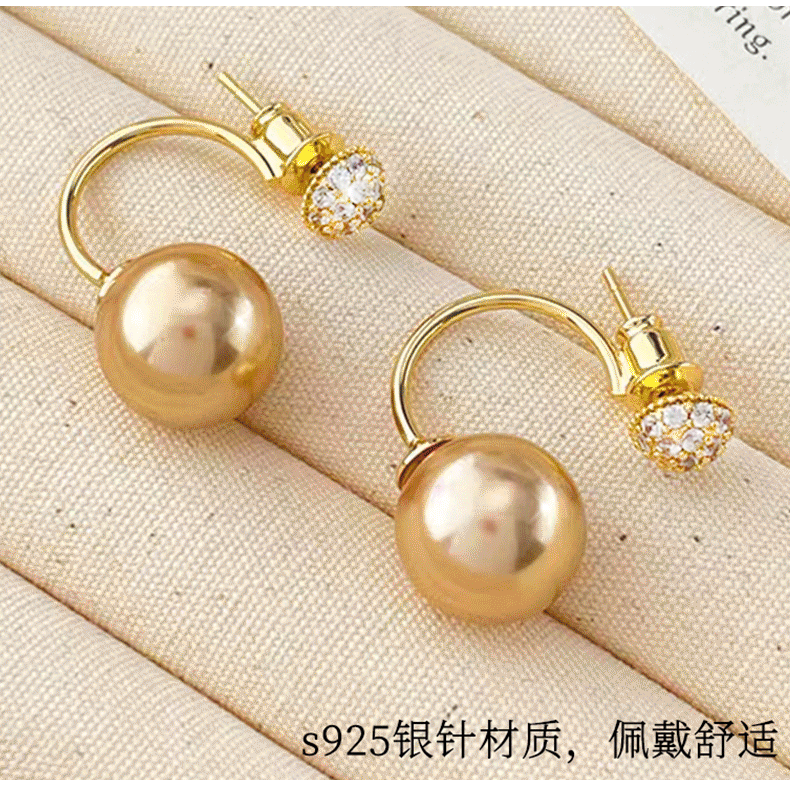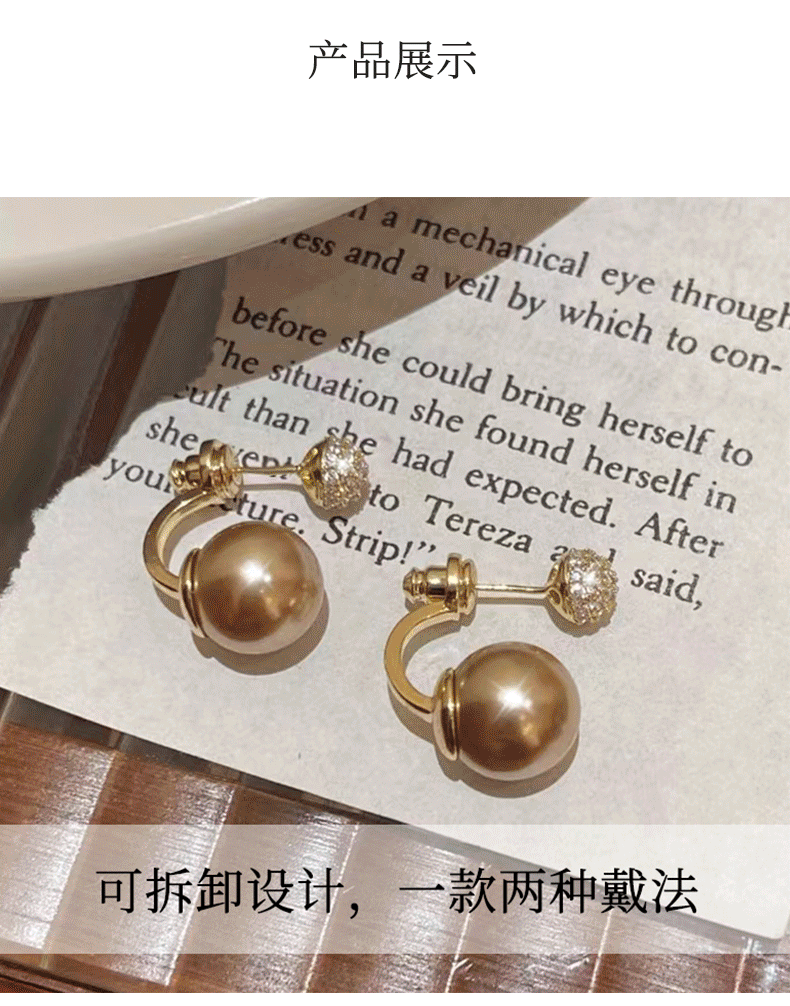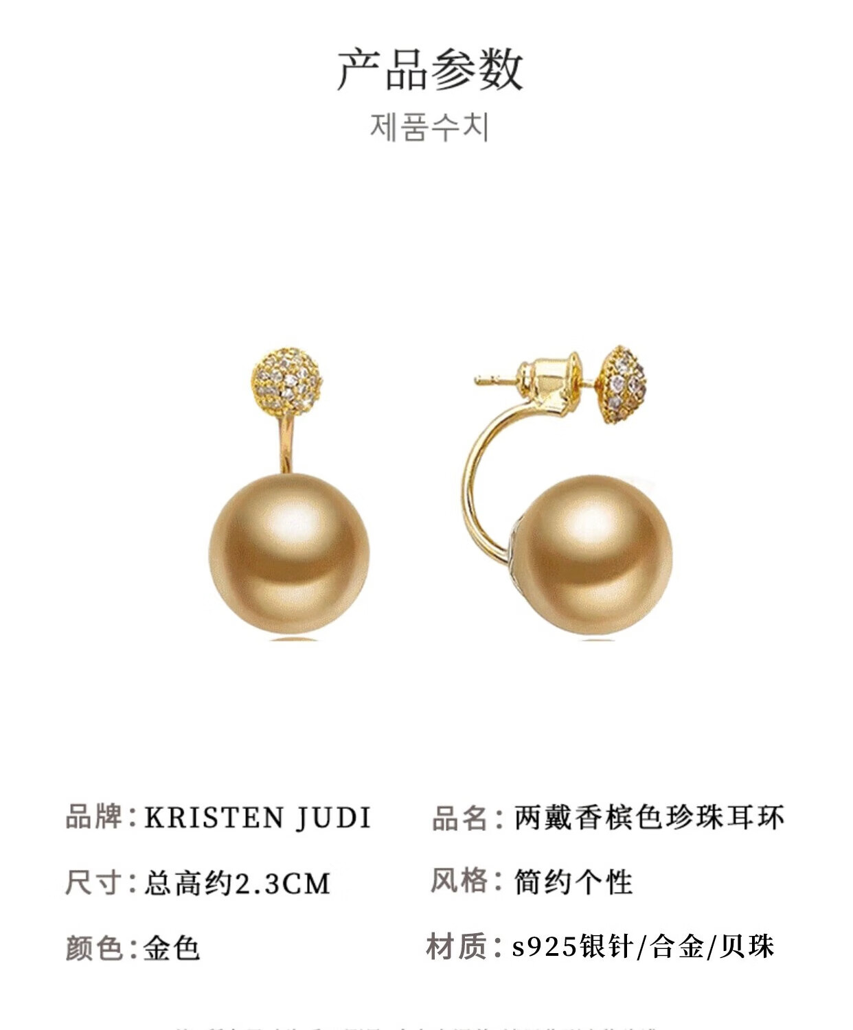 KRISTEN JUDI香槟金色大颗珍珠耳环女银针气质两戴耳钉妈妈耳饰生日七夕礼物 金色送女友老婆妈妈闺蜜实用礼盒