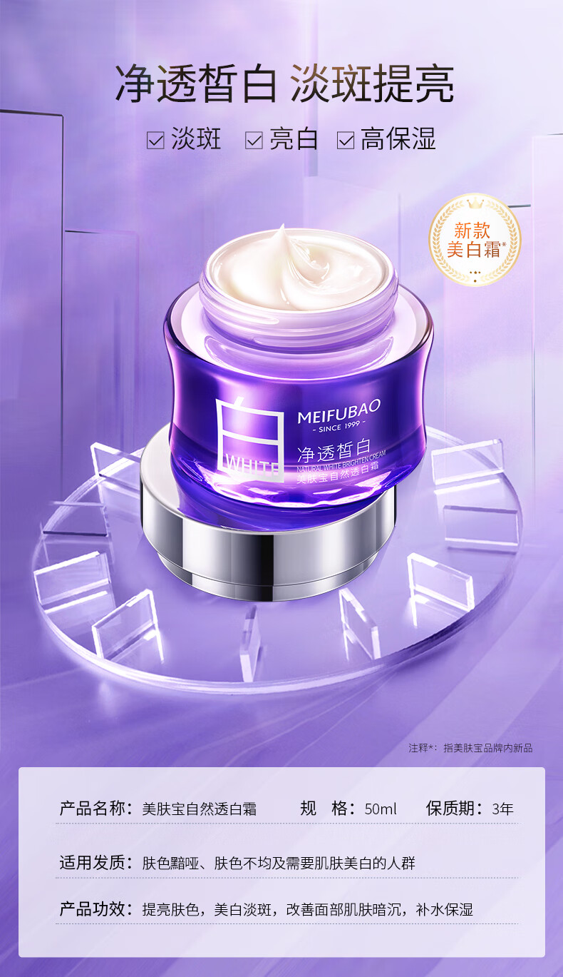美肤宝精华霜面霜 保湿霜美白祛斑黯哑粗糙润泽滋润护肤品 自然透白霜50ml