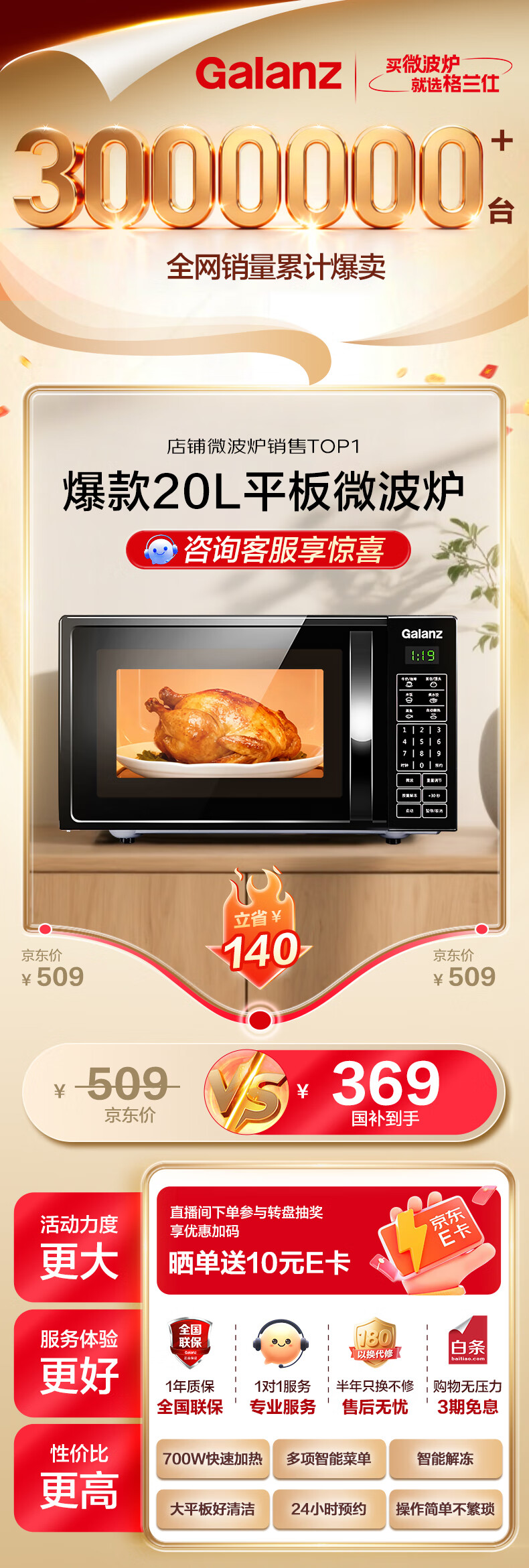 格兰仕(Galanz)【国家补贴】微波炉 20升 大平板底盘 智能菜单 简单 家用微波炉 DG(B0)