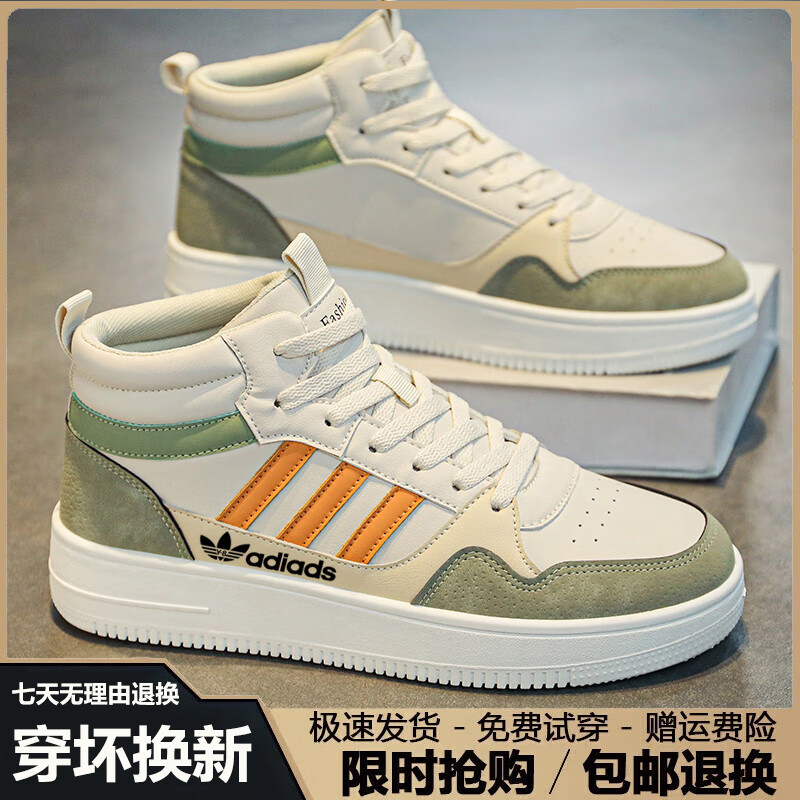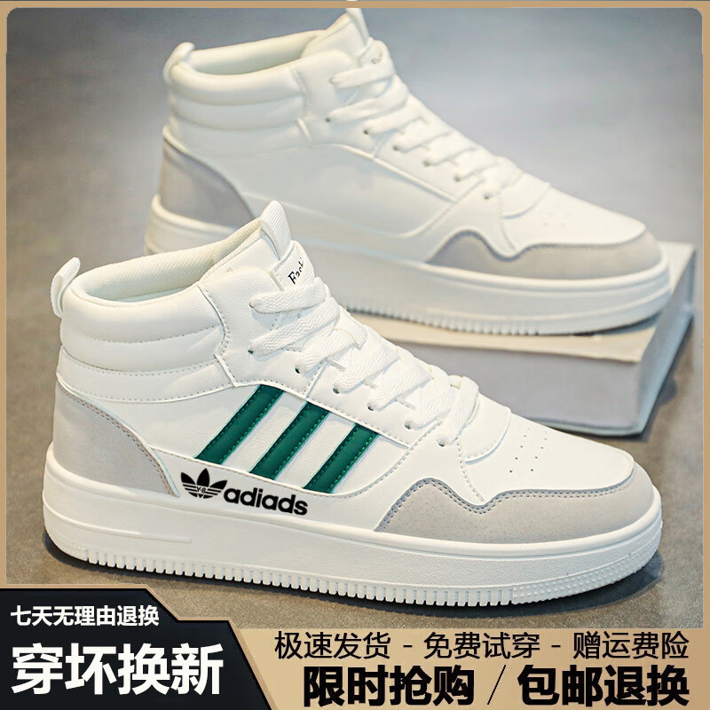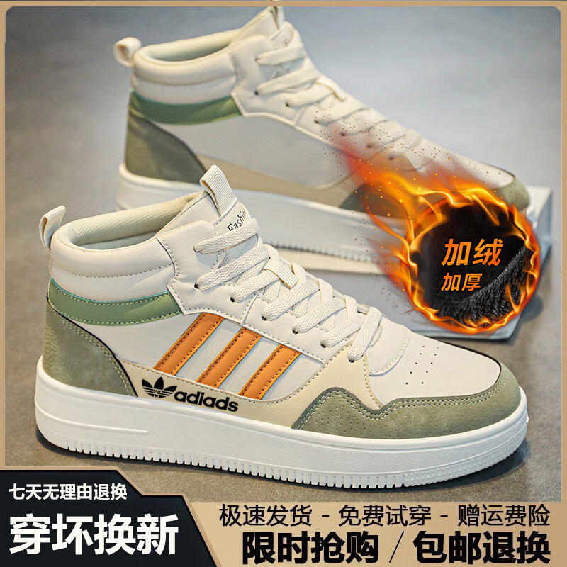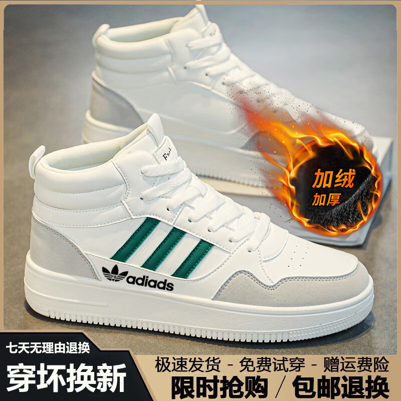 加绒棉鞋男鞋2025秋冬季板鞋男士软底透气休闲运动鞋子男小白鞋男 AD522白绿【皮面】 42