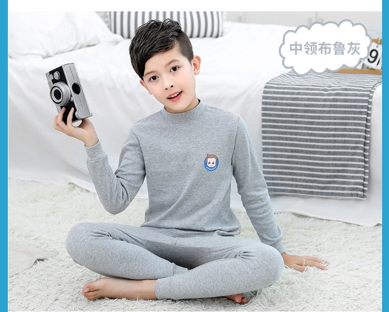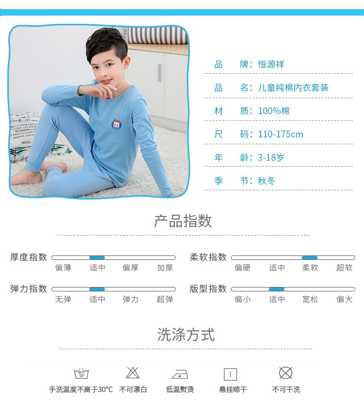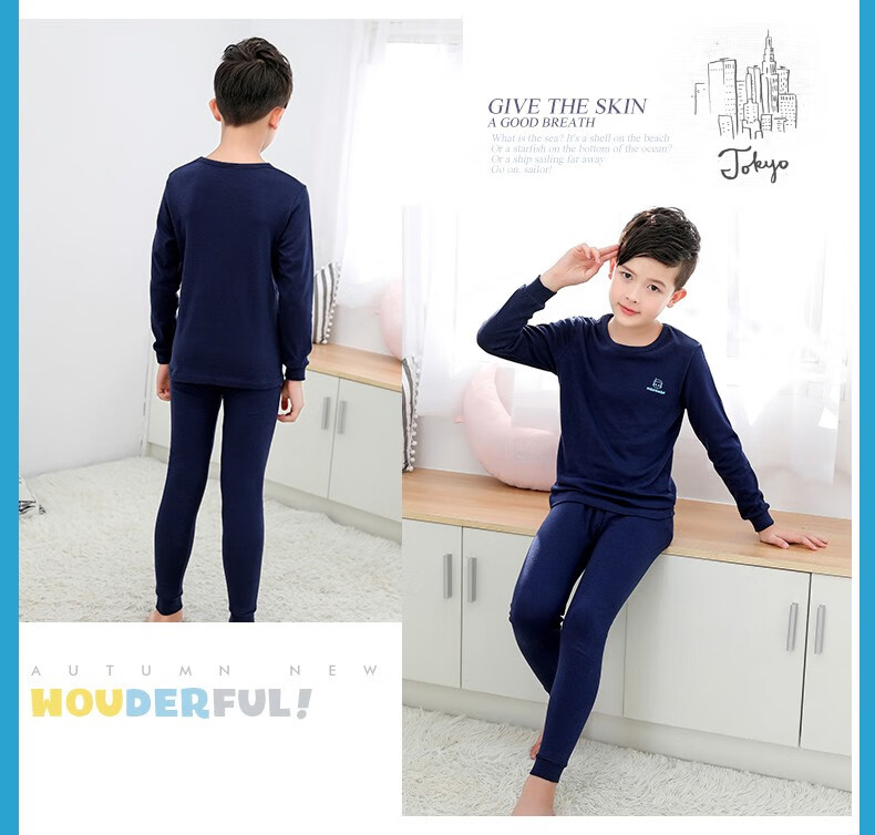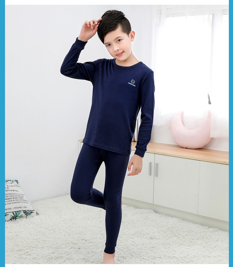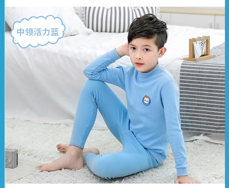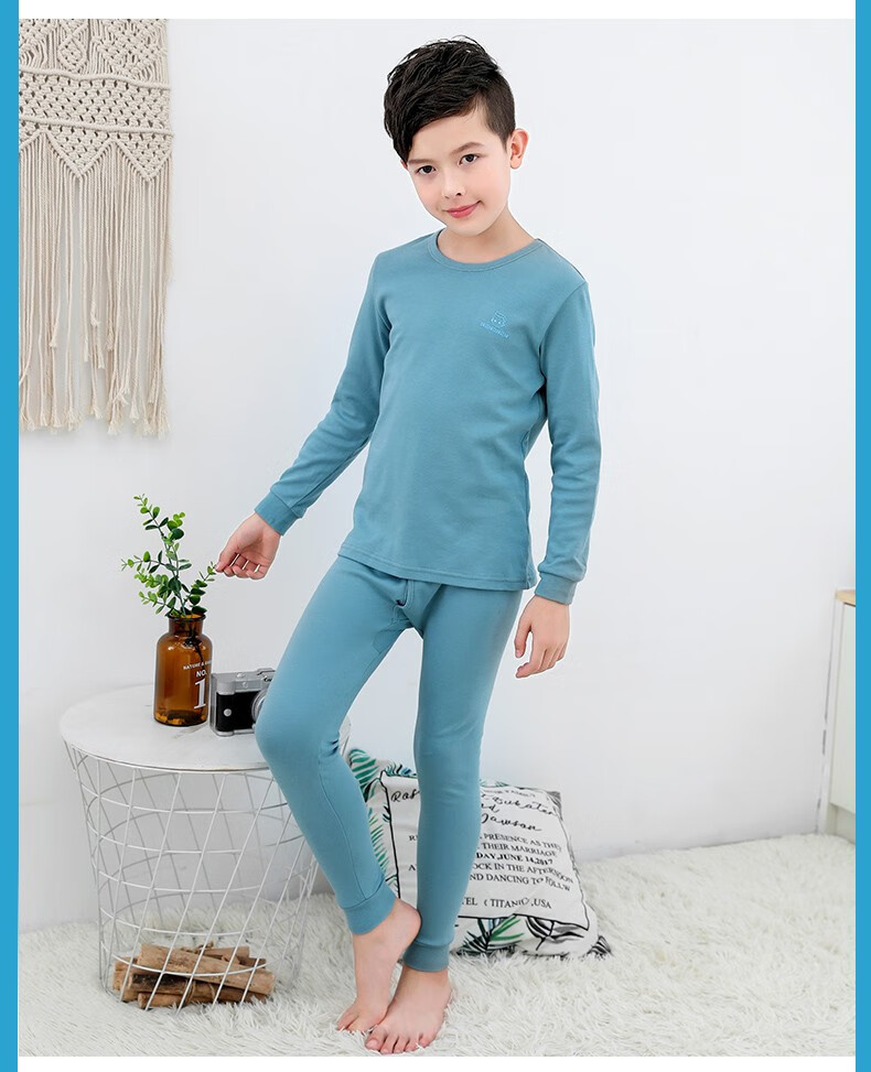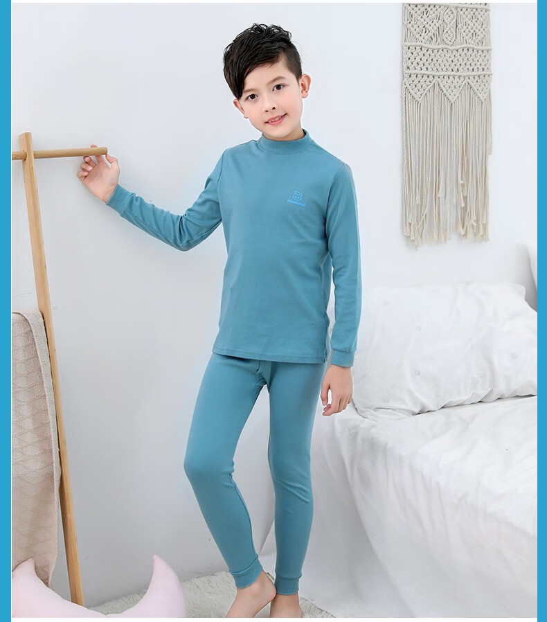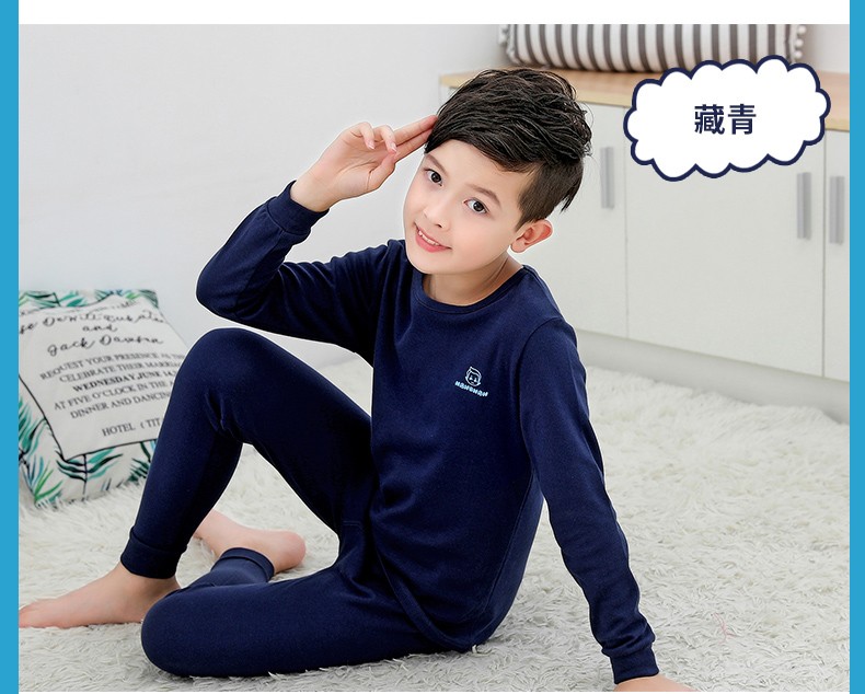 恒源祥儿童内衣套装纯棉男童青少年秋衣秋裤 男孩中大童学生全棉睡衣家居服 中领藏青150