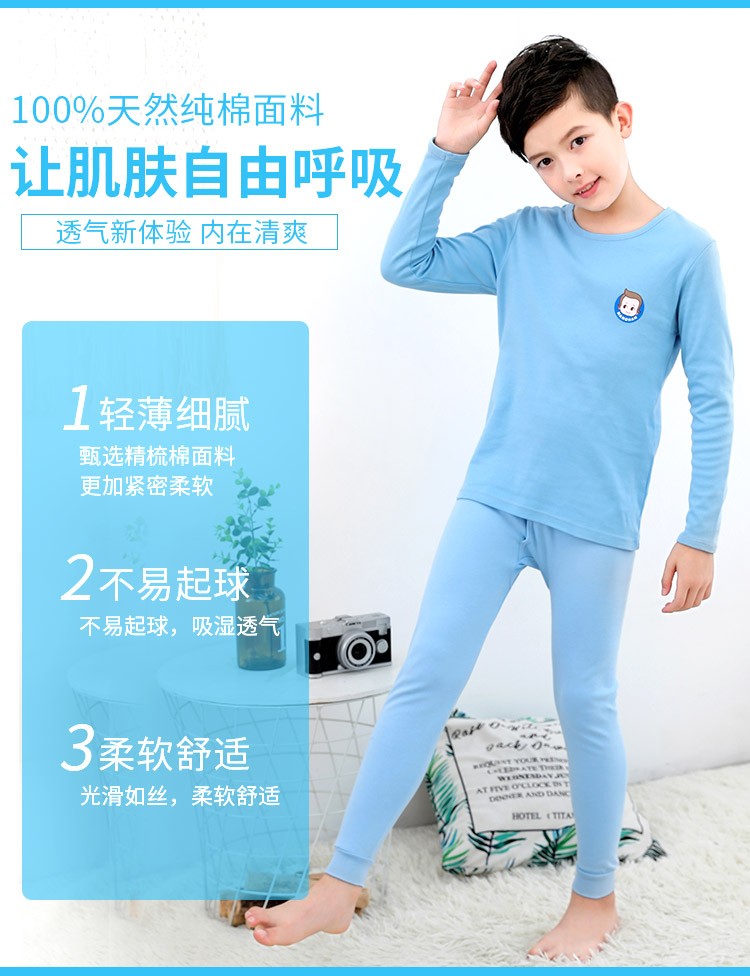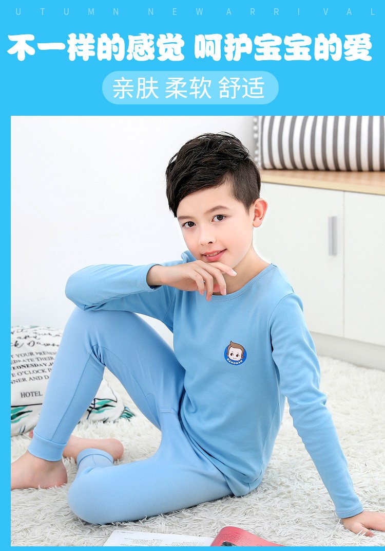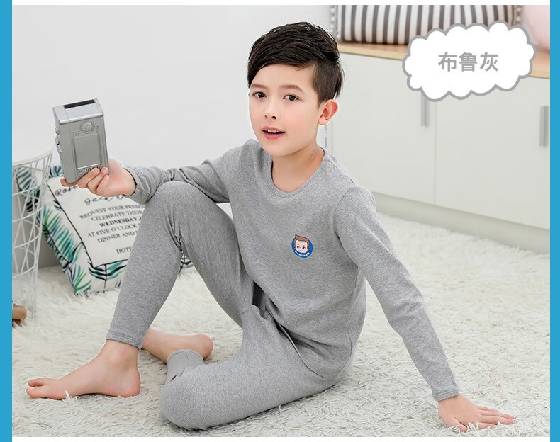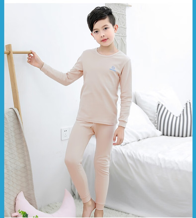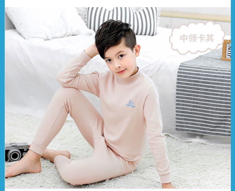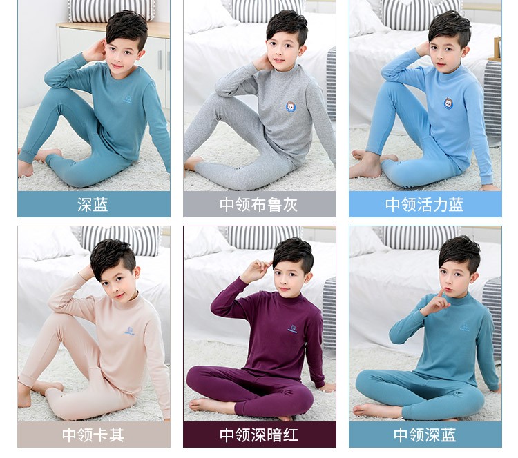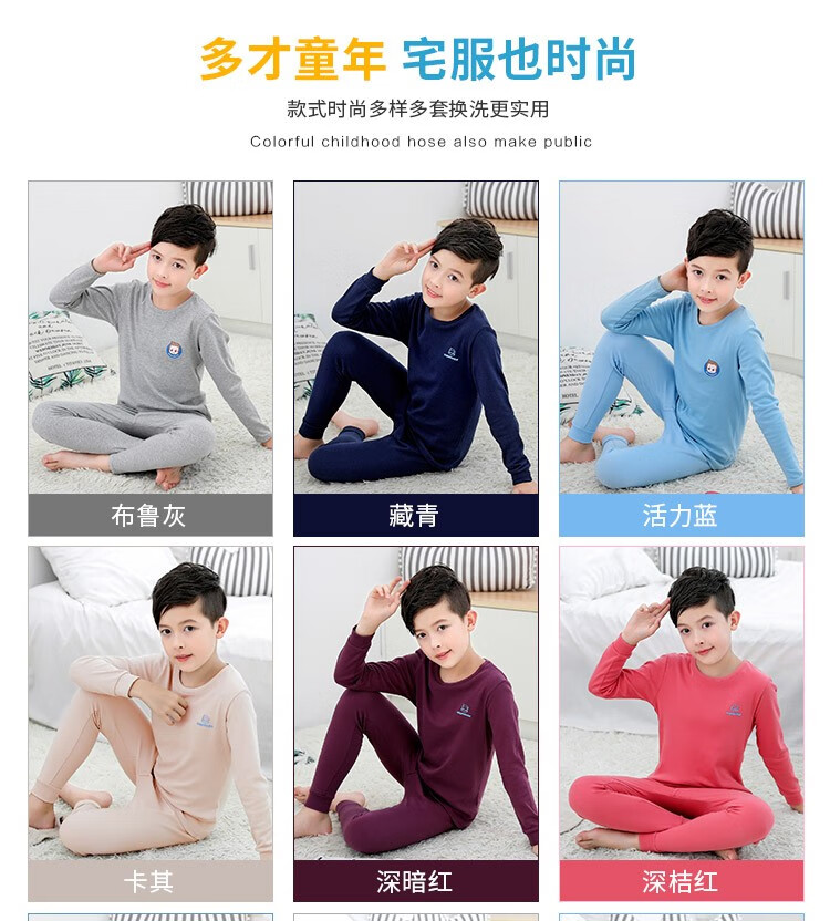恒源祥儿童内衣套装纯棉男童青少年秋衣秋裤 男孩中大童学生全棉睡衣家居服 中领藏青150