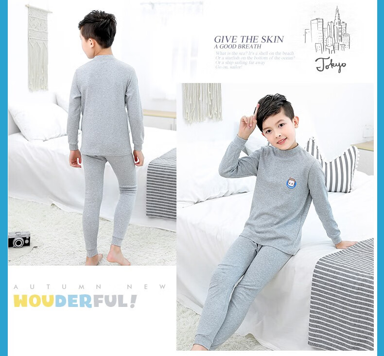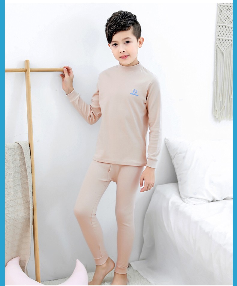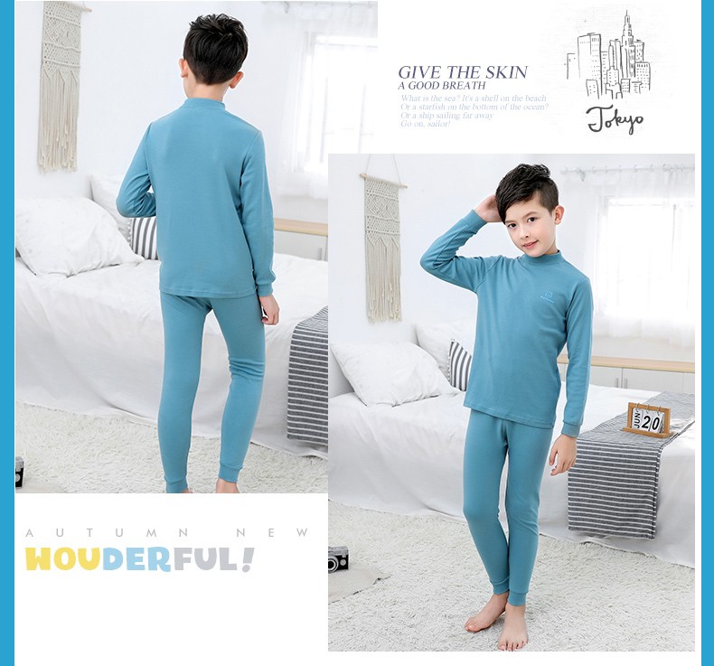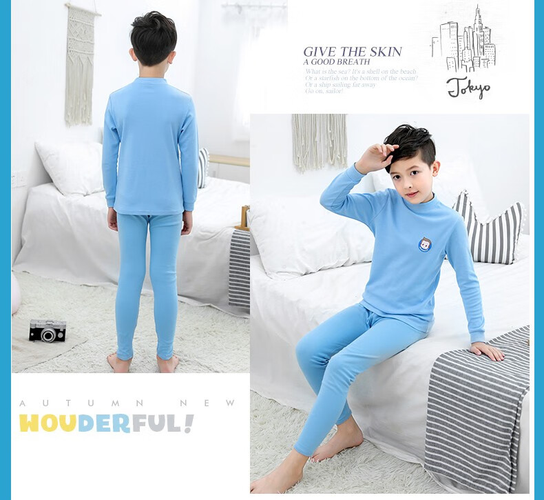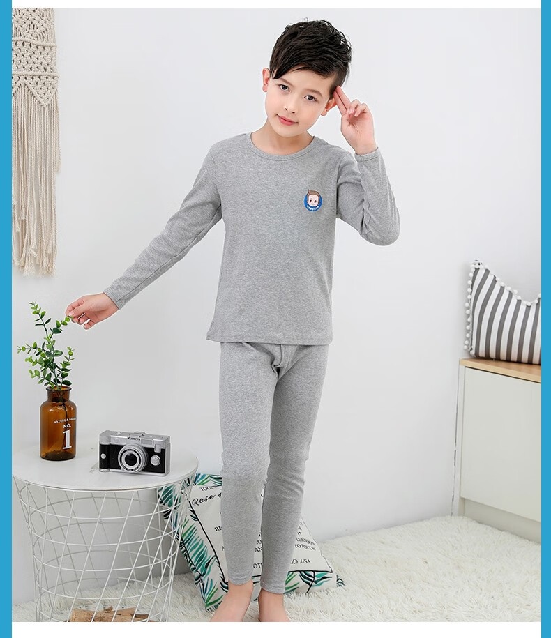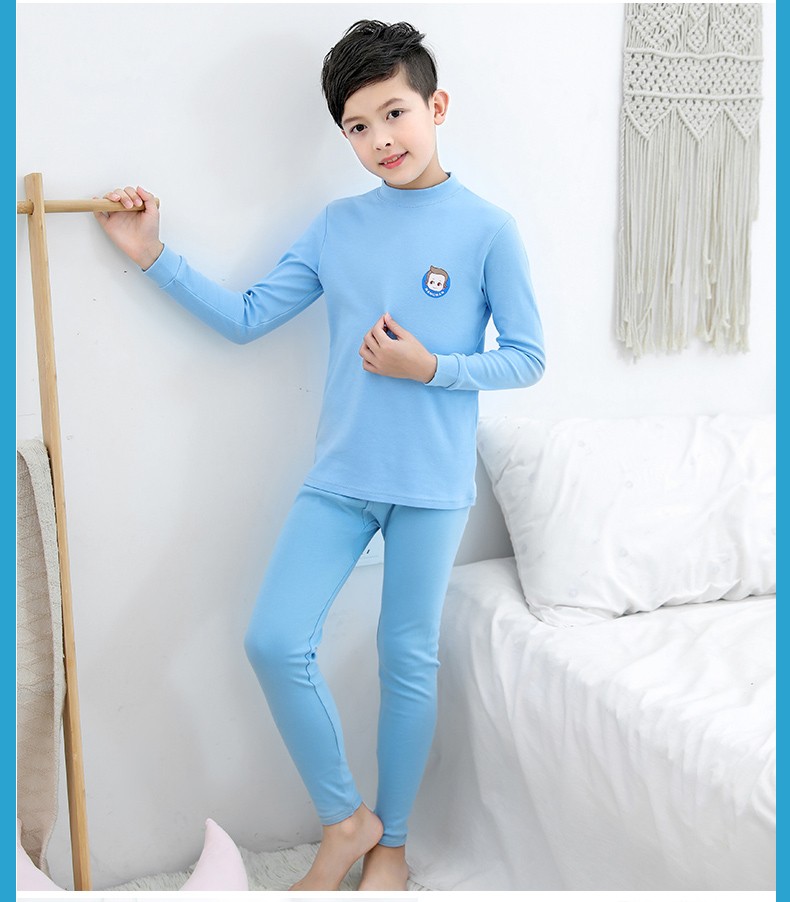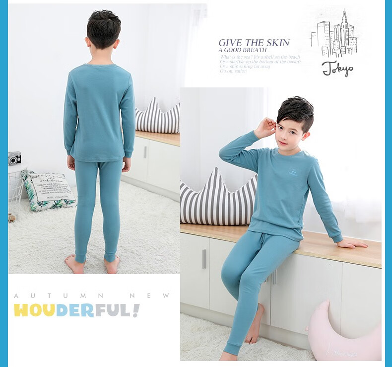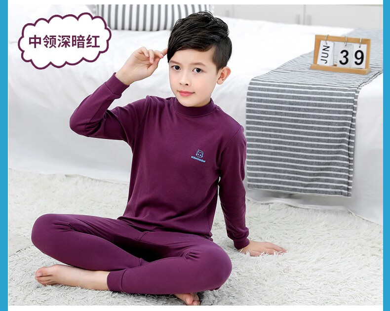 恒源祥儿童内衣套装纯棉男童青少年秋衣秋裤 男孩中大童学生全棉睡衣家居服 中领藏青150