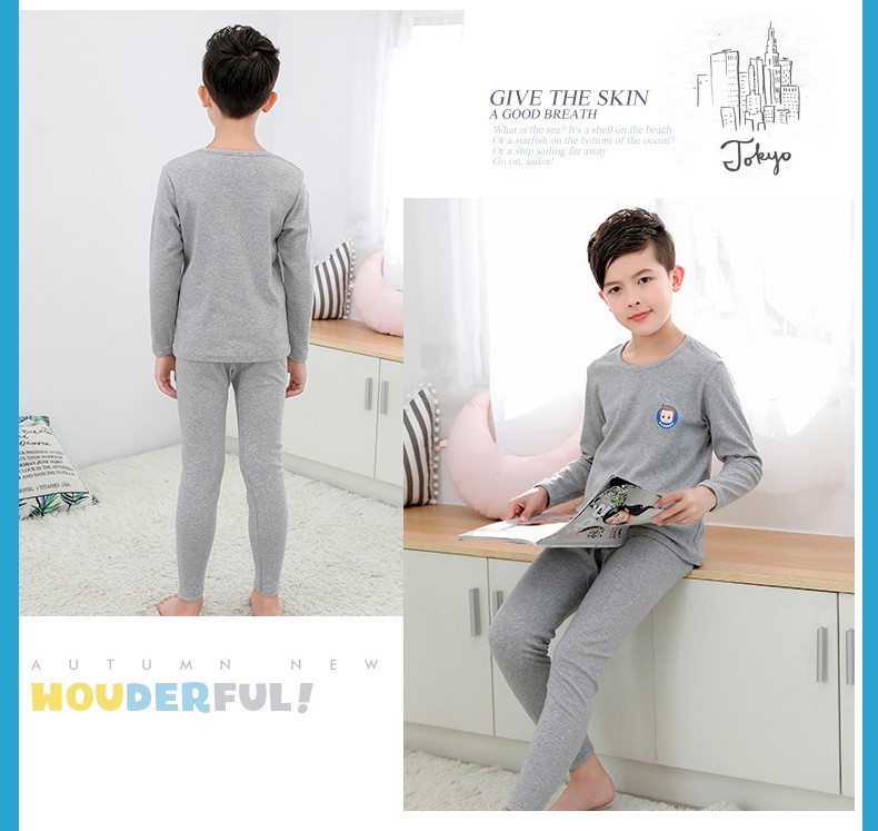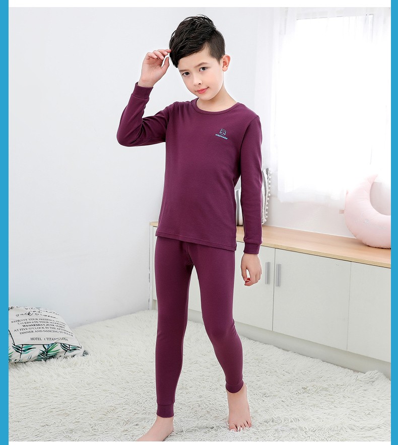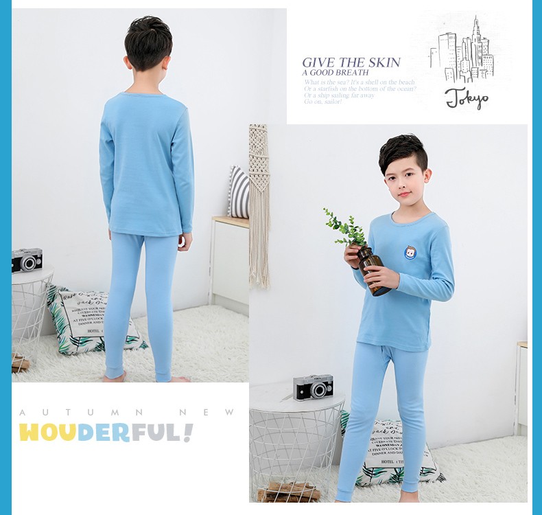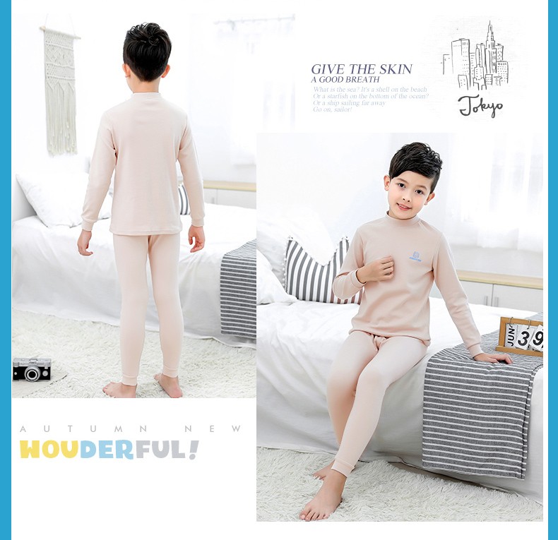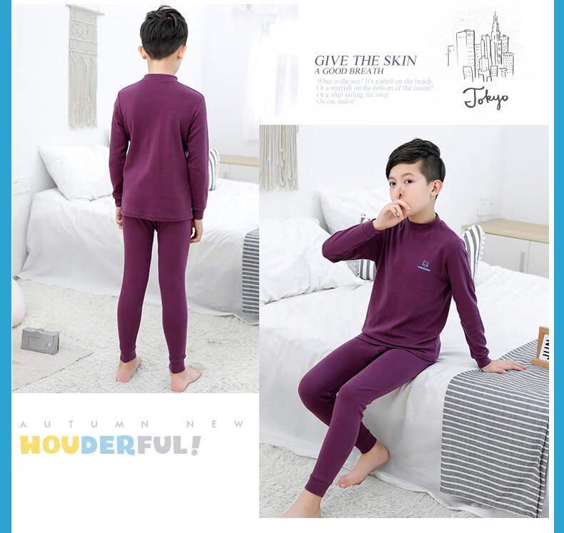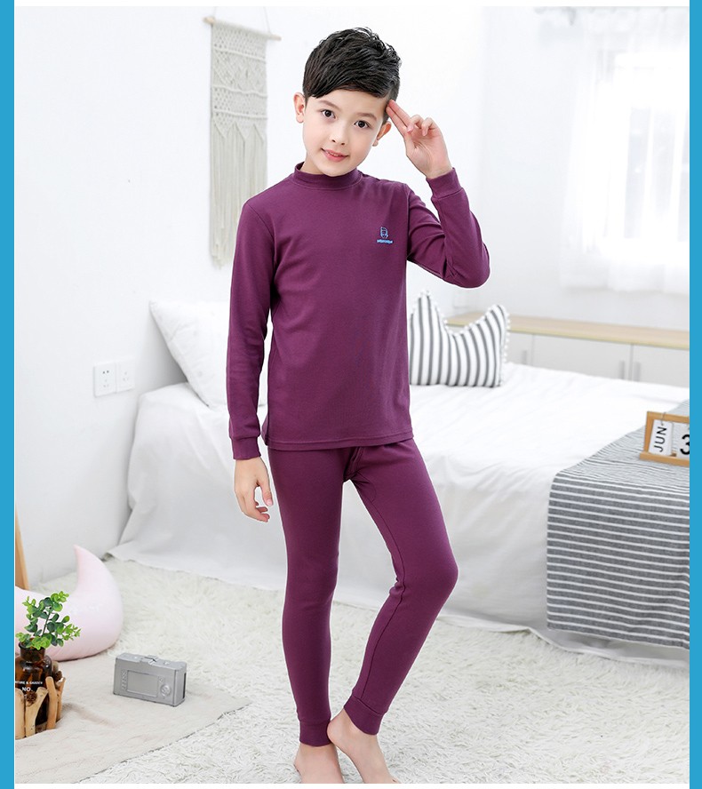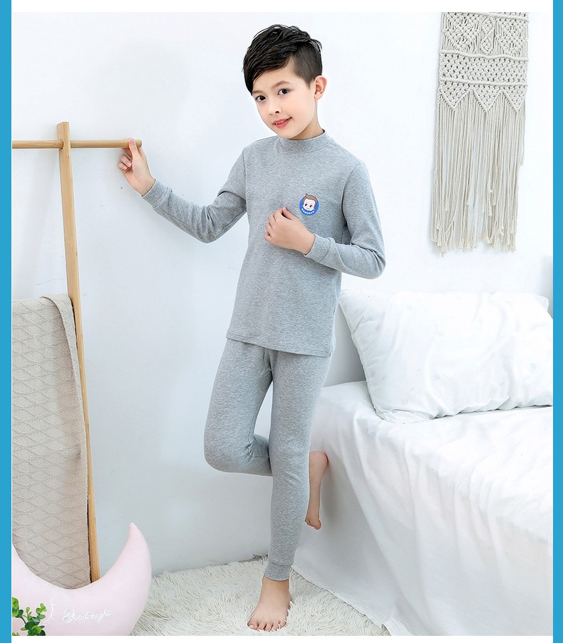 恒源祥儿童内衣套装纯棉男童青少年秋衣秋裤 男孩中大童学生全棉睡衣家居服 中领藏青150