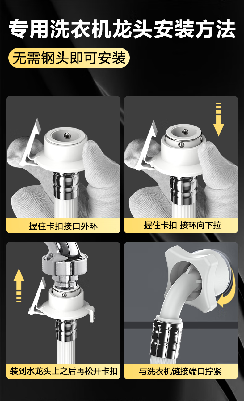 匠无同洗衣机进水管1.5米 加长延长管接上管全自动滚筒波轮海尔连接卡扣通用水龙头配件