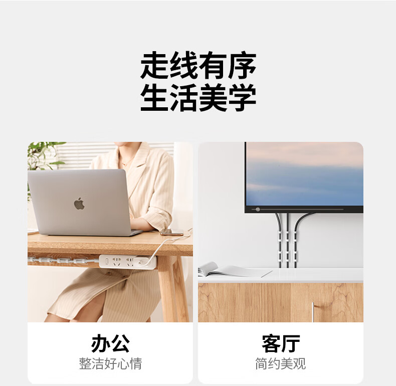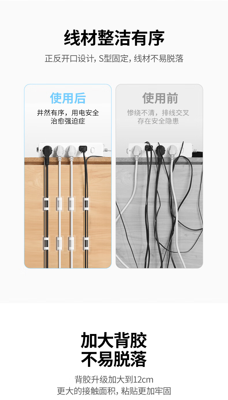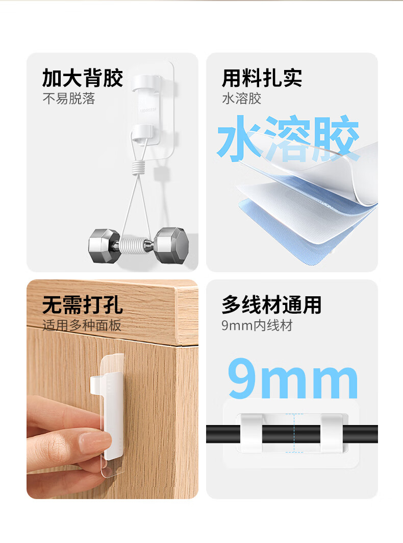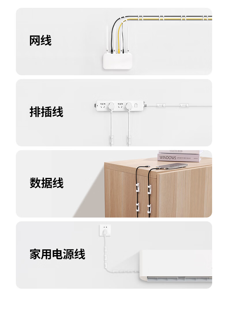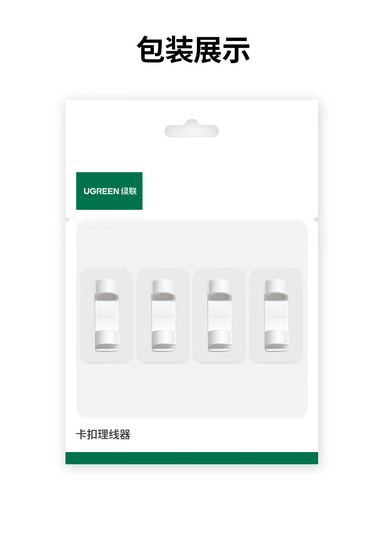 绿联理线器 电线固定器走线神器免钉墙贴无痕电源线收纳整理走线夹网线加大背板卡扣自粘神器4个装