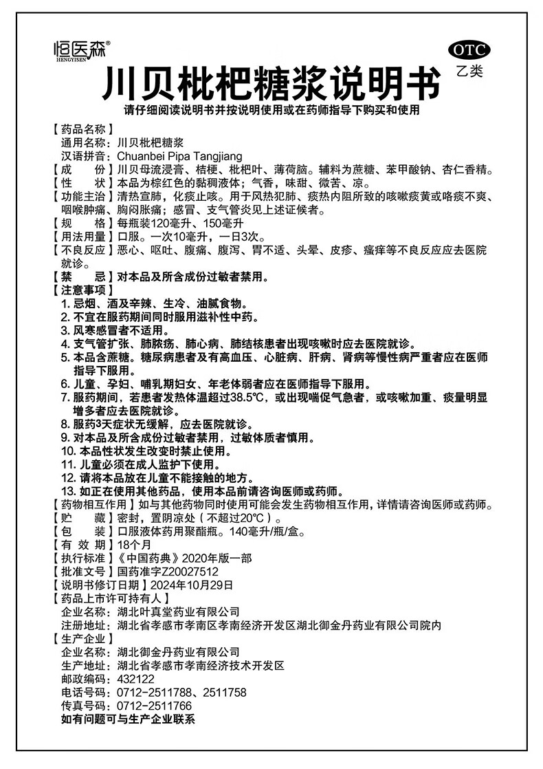 恒医森 川贝枇杷糖浆140ml 止咳化痰清热宣肺润肺祛痰风热感冒咳嗽药膏咽喉肿痛胸闷胀痛支气管炎嗓子干痒