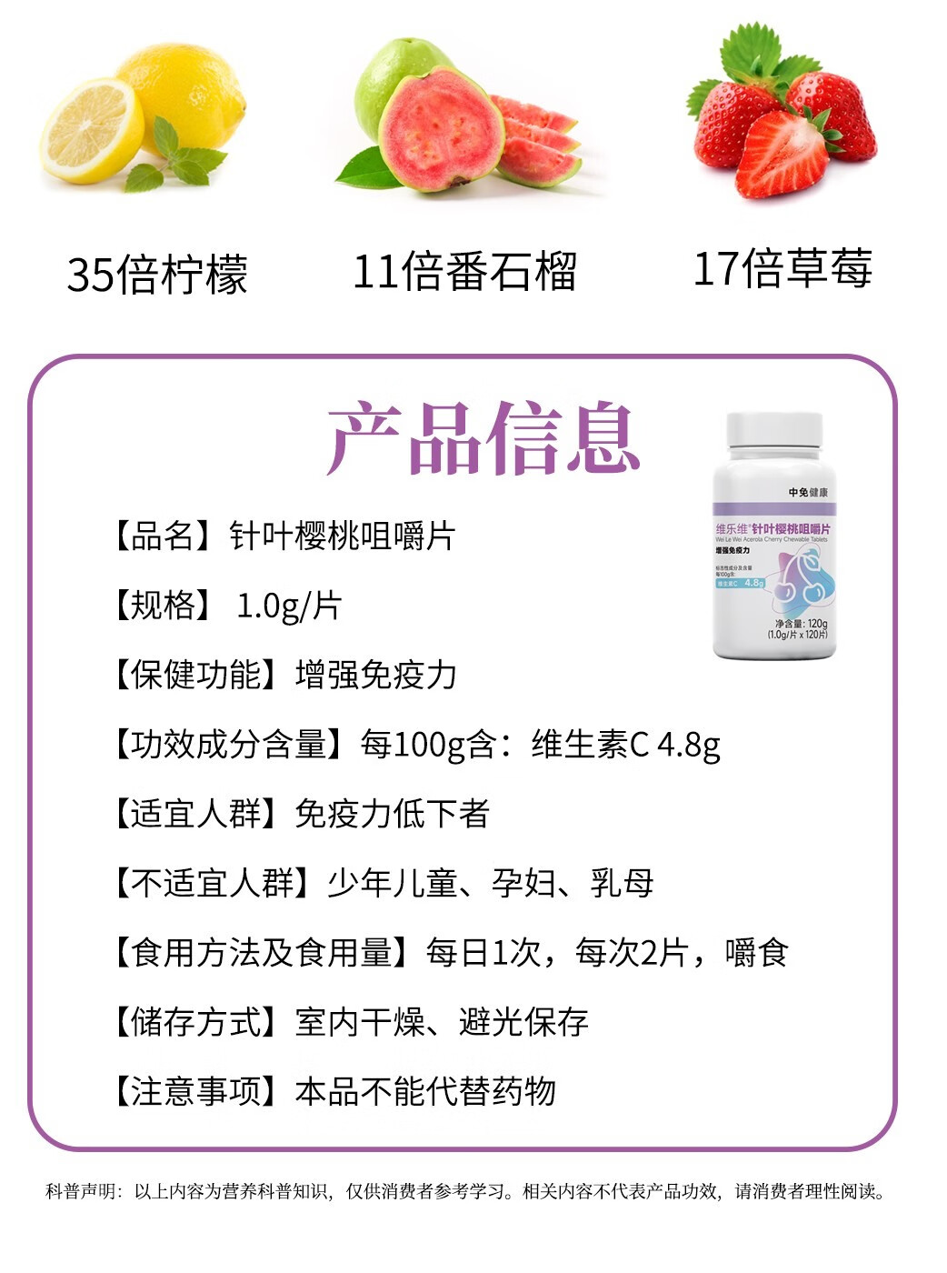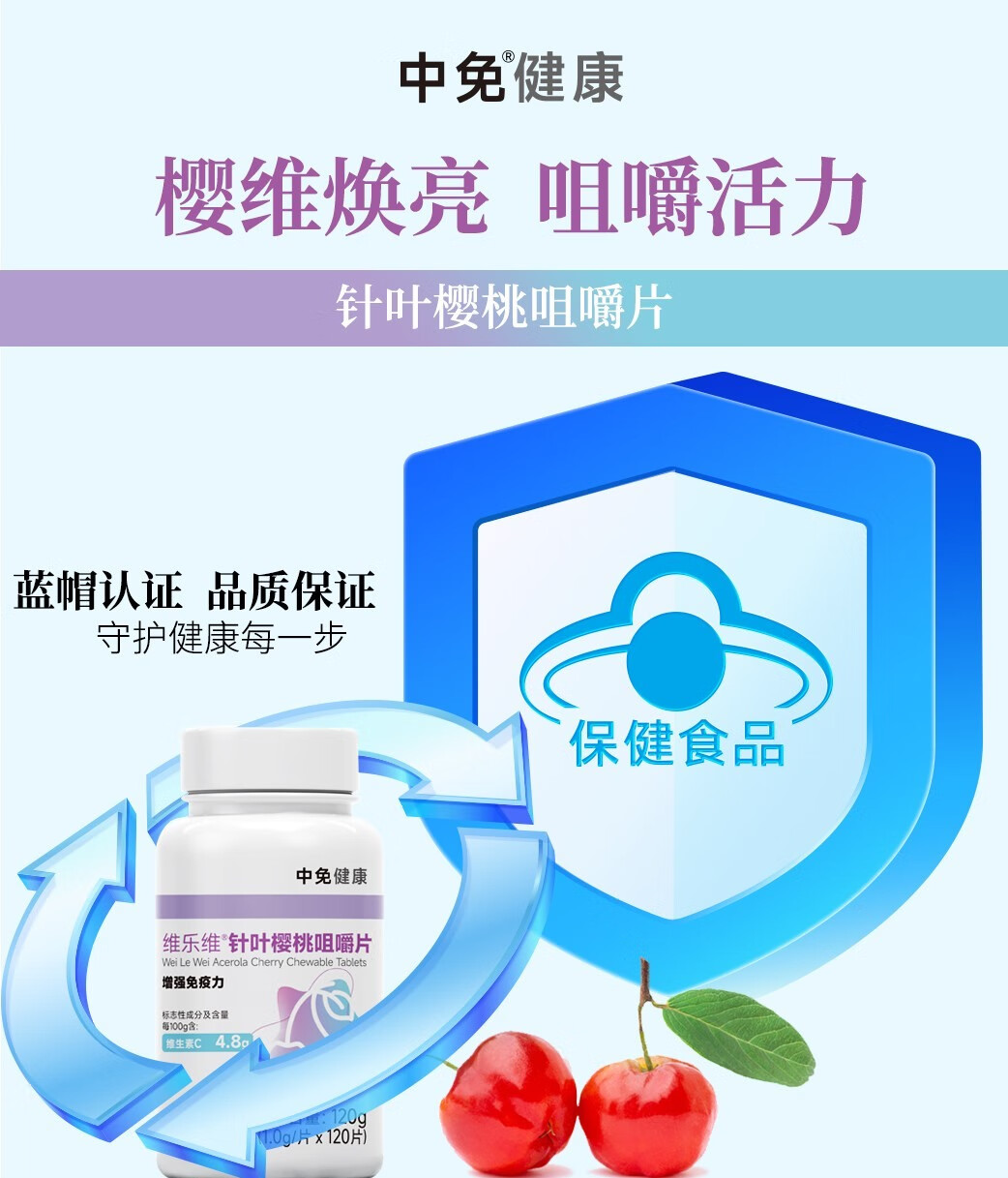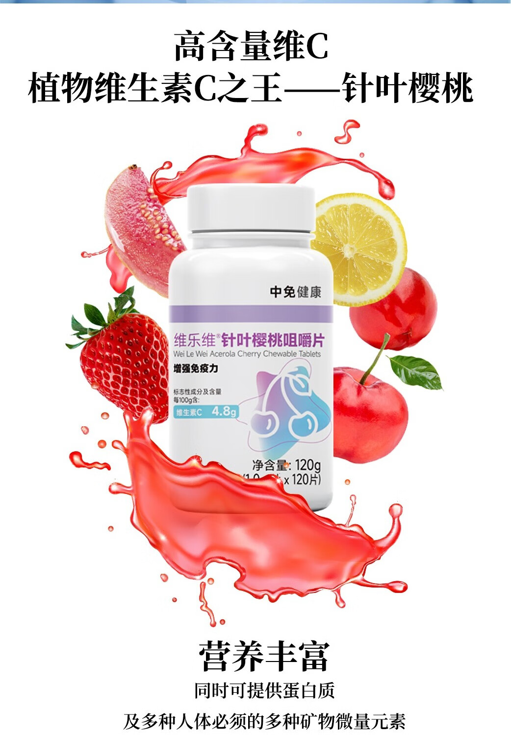 中免健康维生素C针叶樱桃维生素咀嚼片120粒/瓶增强免疫力