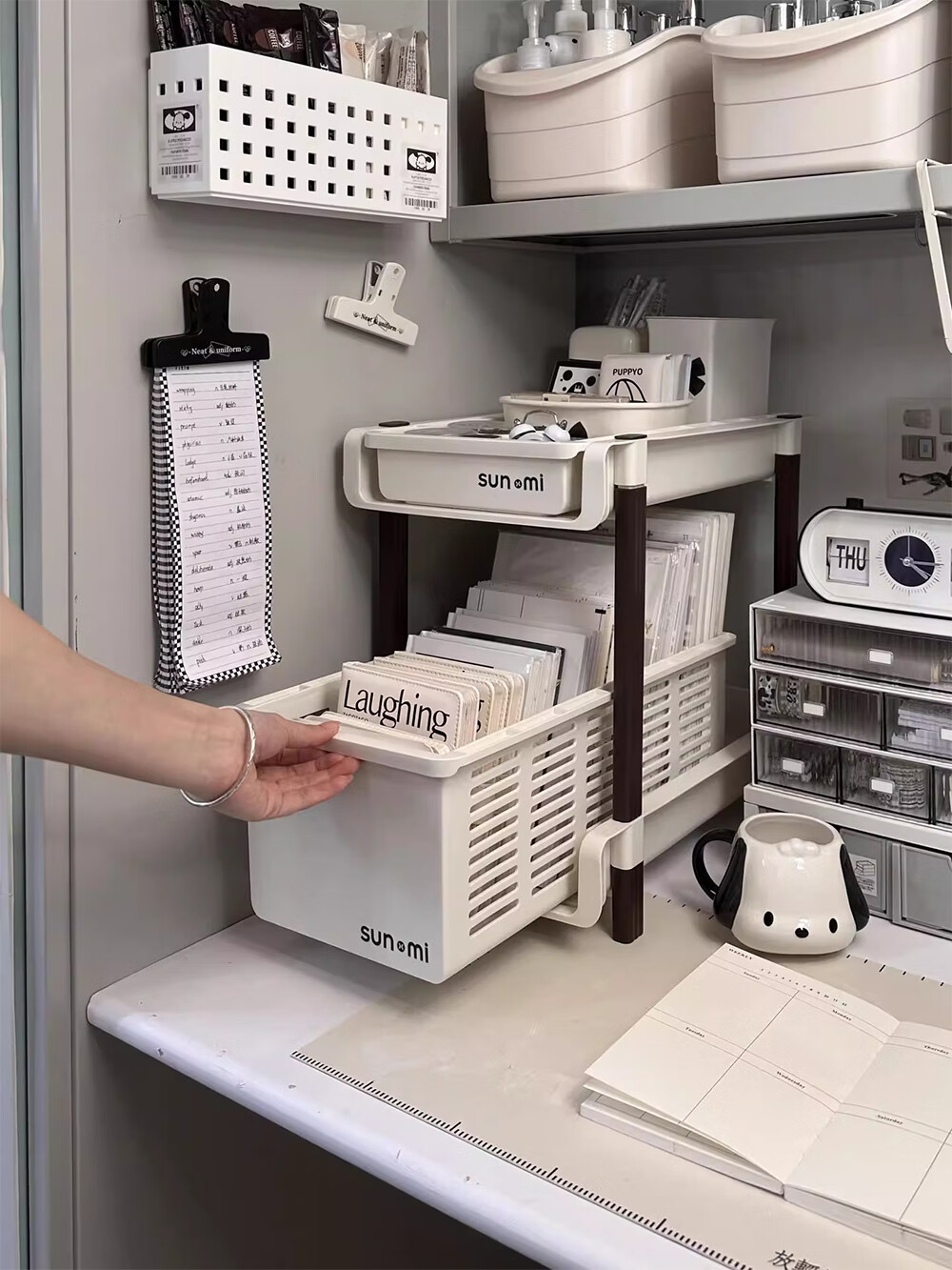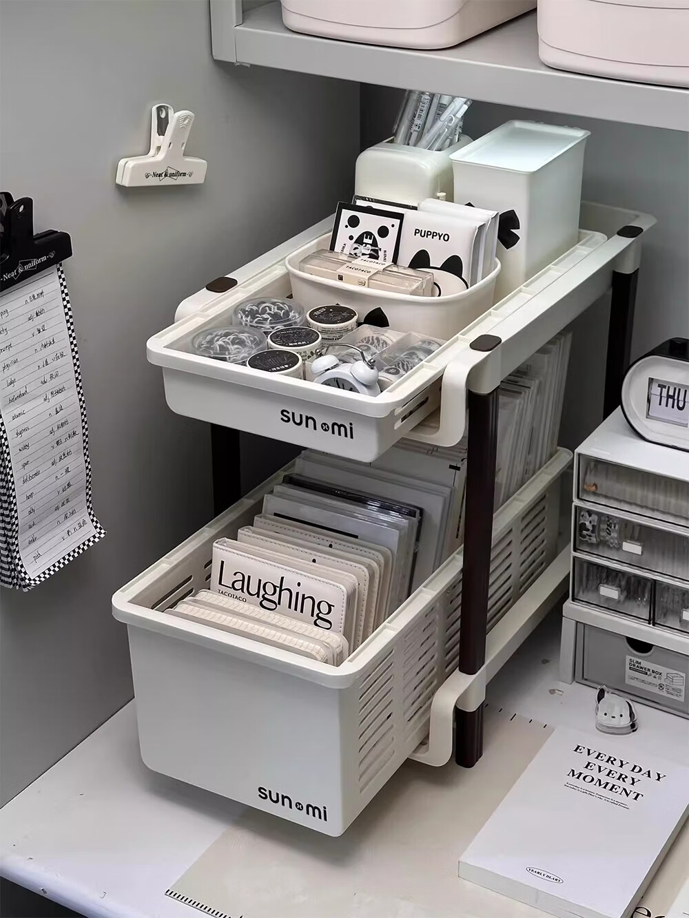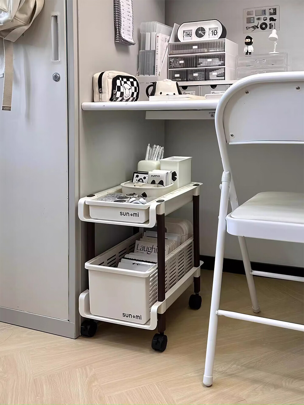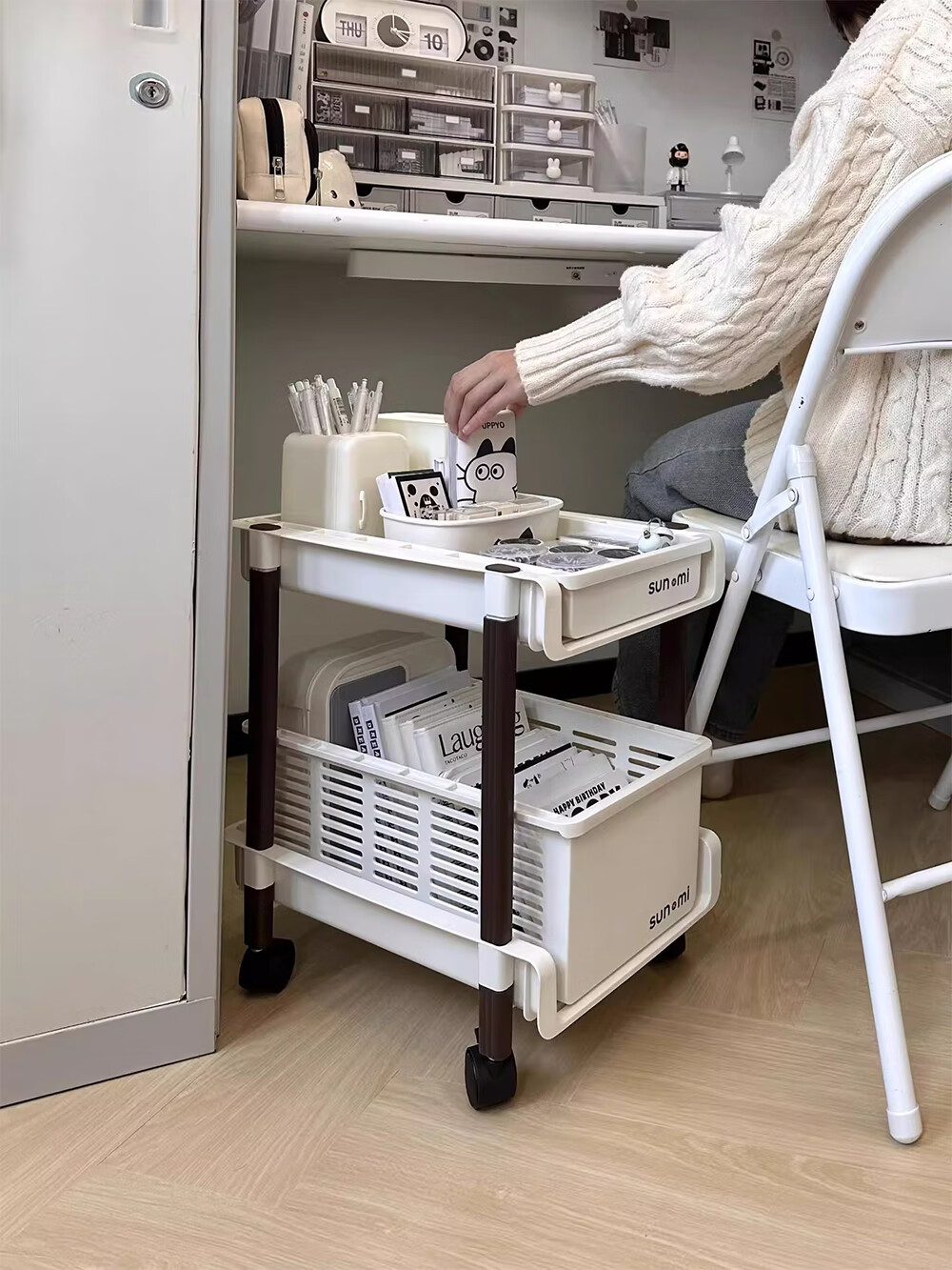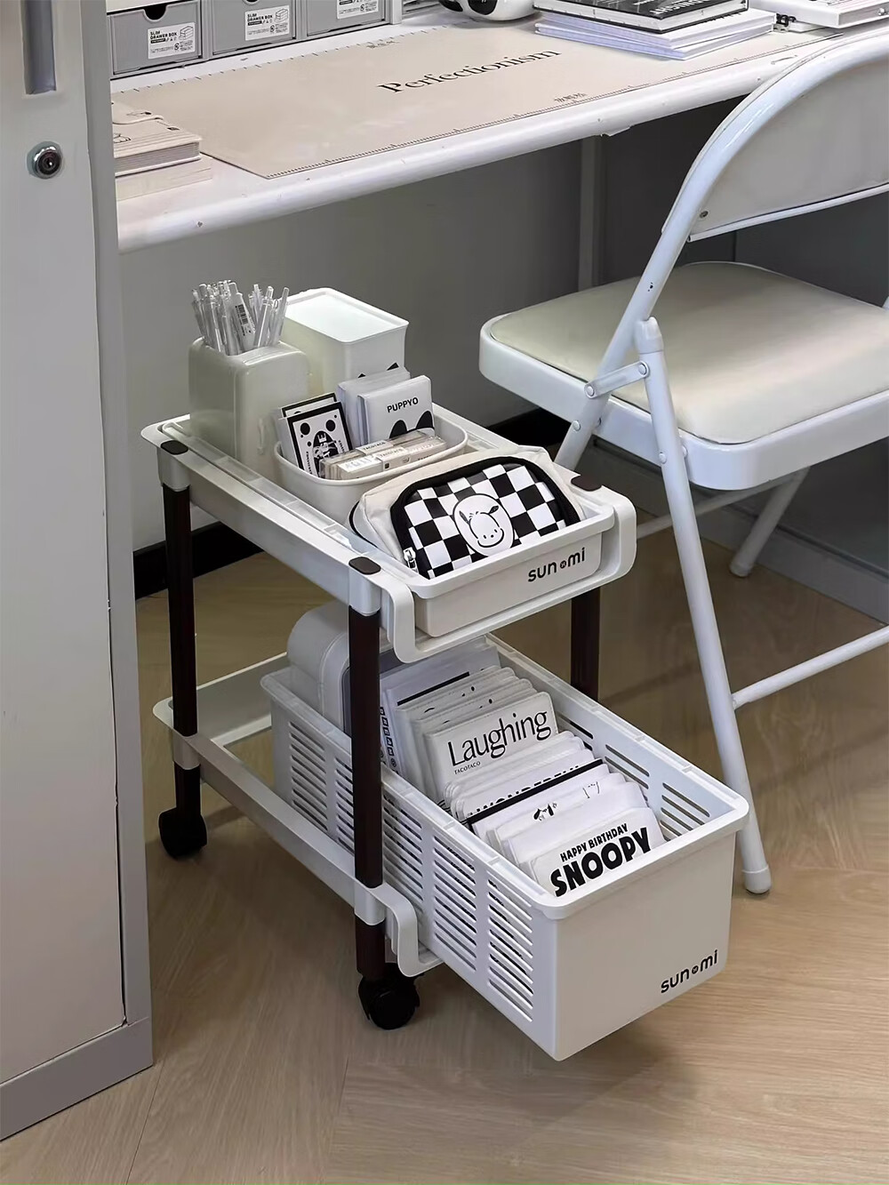 木格格桌下置物架可移动抽屉式小推车办公室宿舍桌下收纳架落地书桌收纳 落地双层置物架-万向轮