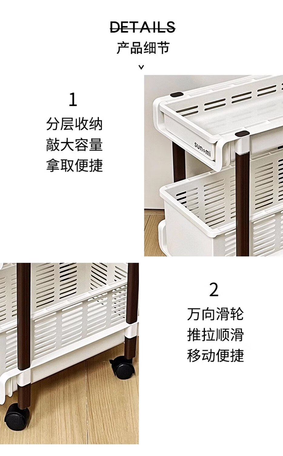 【精选厂家】落地小推车置物架玩具零食收纳卫生间厨房储物架 白色五层