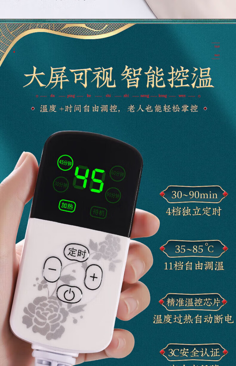 DEATKN日本盐袋热敷包海盐粗盐电加热理疗袋子艾灸艾草肩颈腰腹全身 [加长绑带紫]全配置+11档控温+智能控温