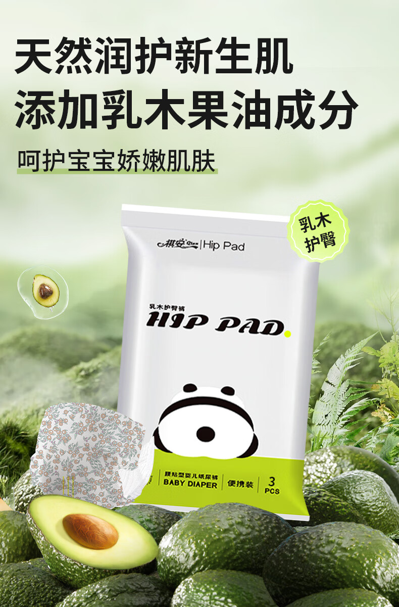 祺安熊猫乳木果油婴儿护臀纸尿裤L码3片试用装16-22斤超薄透气成长裤