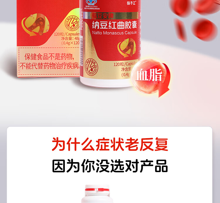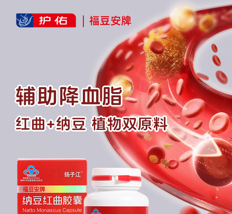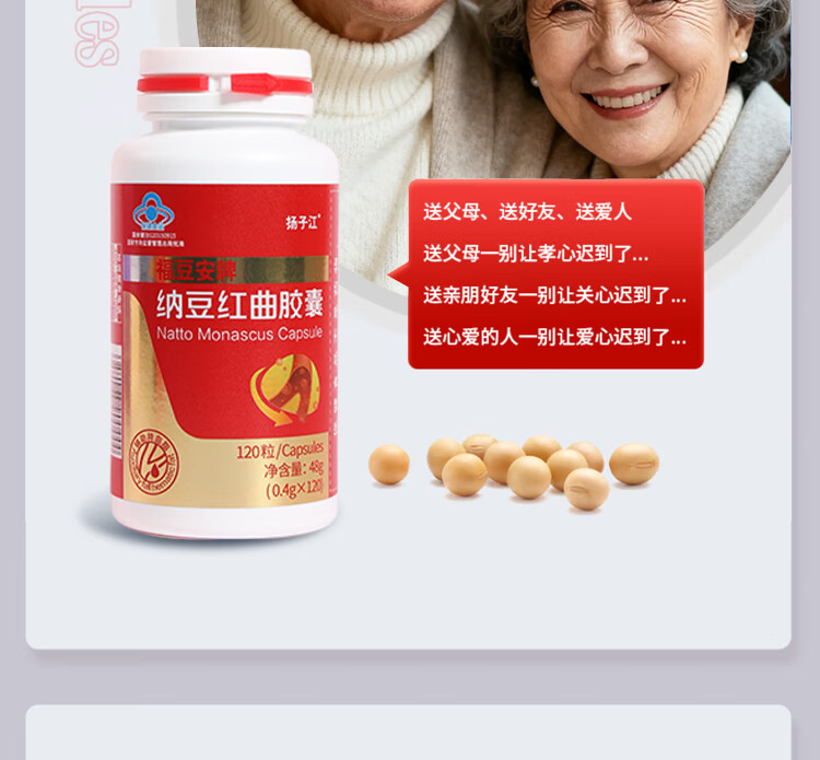 护佑扬子江 纳豆红曲胶囊 120粒 中老年心脑血管辅助降血脂 纳豆激酶