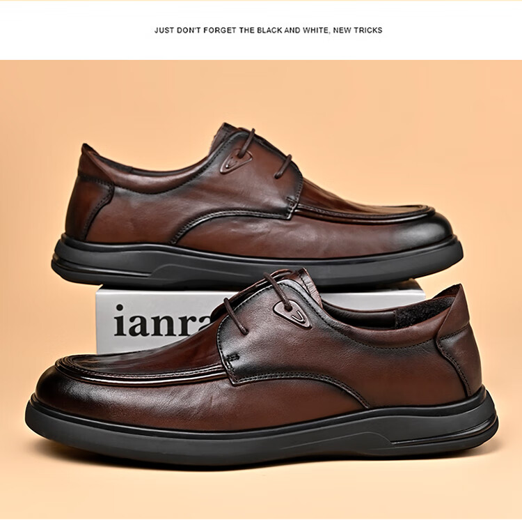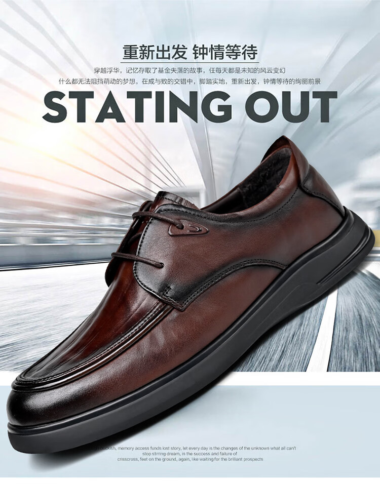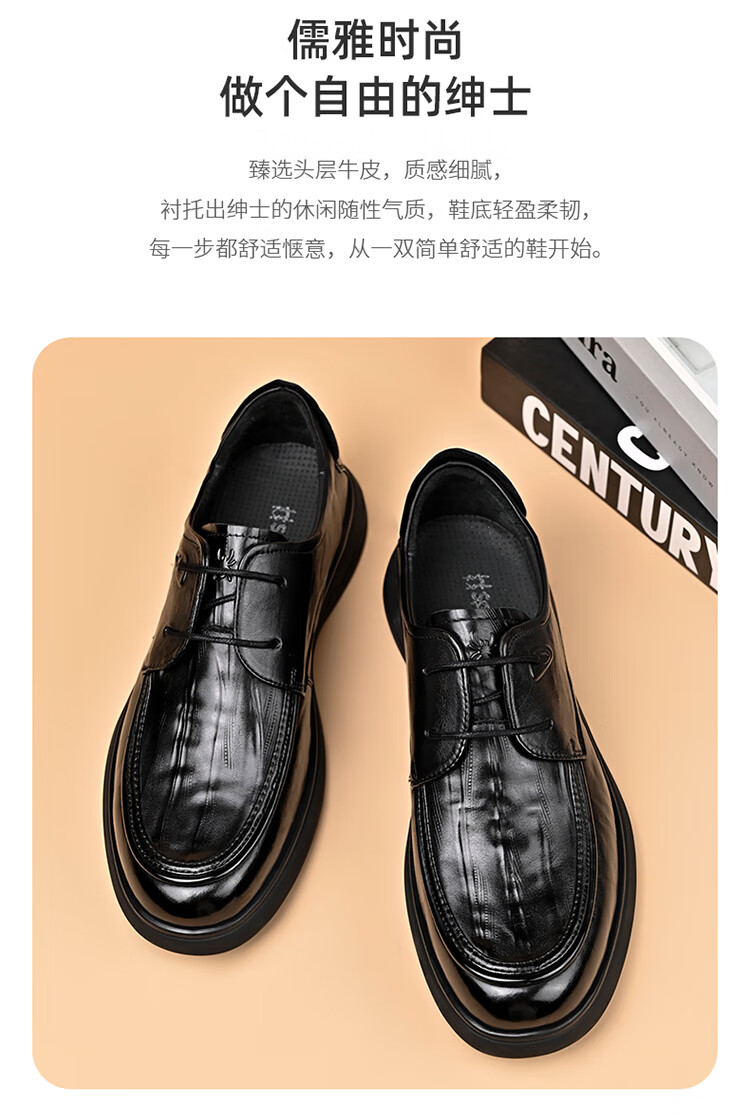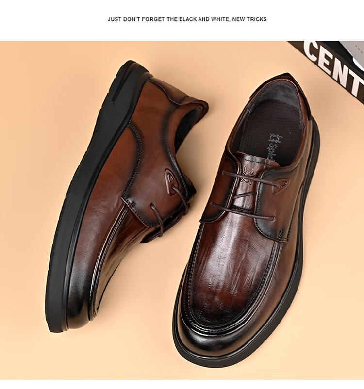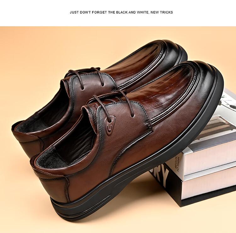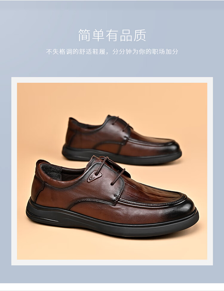 SPIDERKING蜘蛛王男士皮鞋秋季舒适通勤牛皮商务休闲爸爸鞋 棕色 41