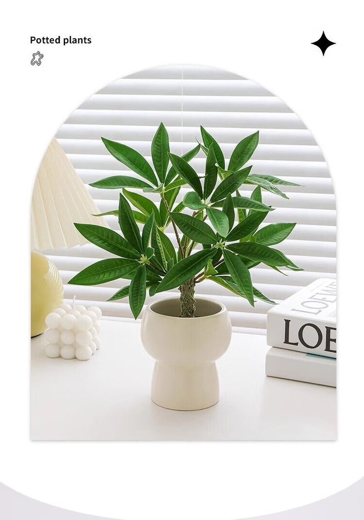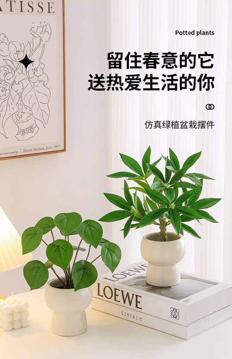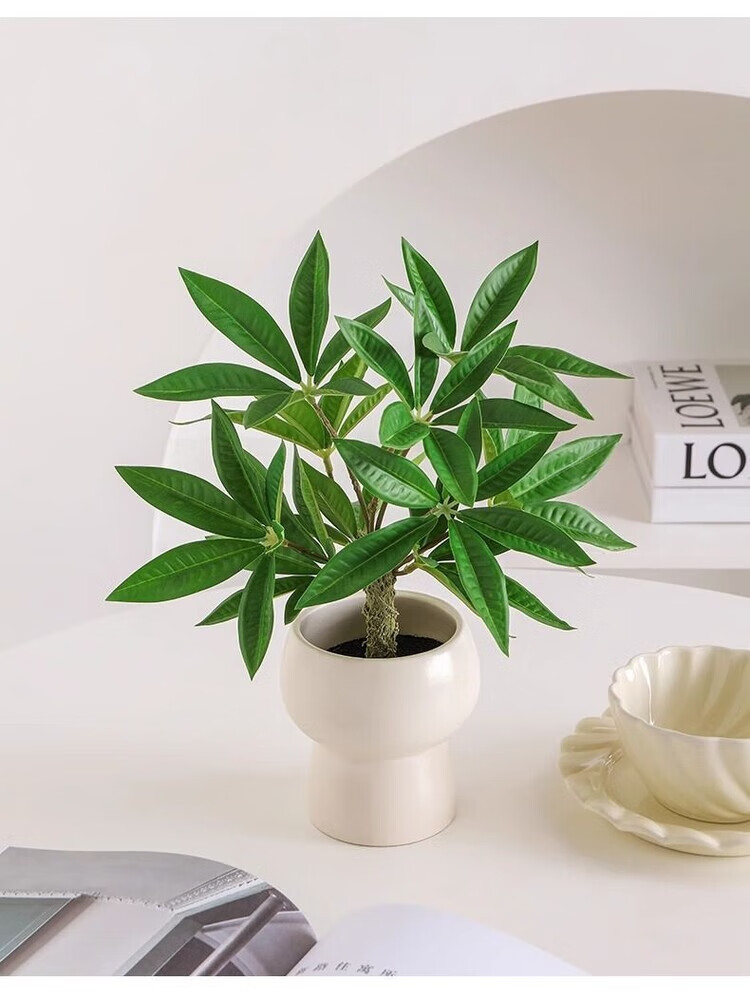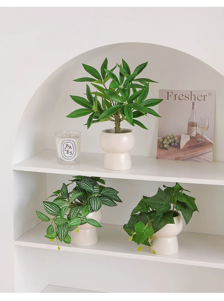 SMVP奶油风仿真绿植假植物仿生花客厅餐桌桌面装饰摆设小盆栽假花摆件 森语发财树 - 泡泡瓶 A 款