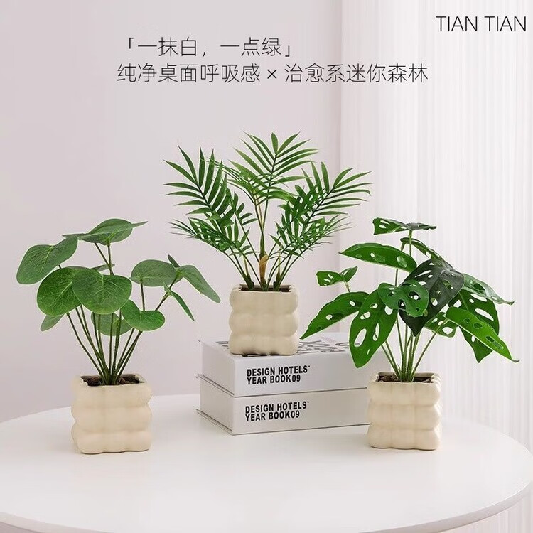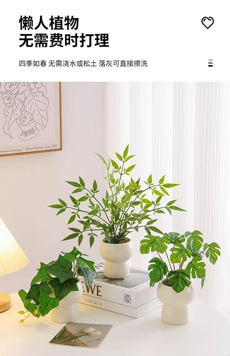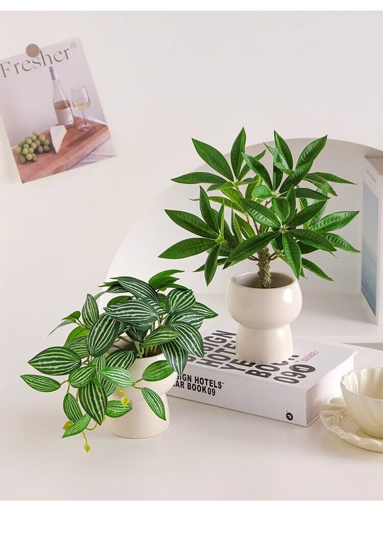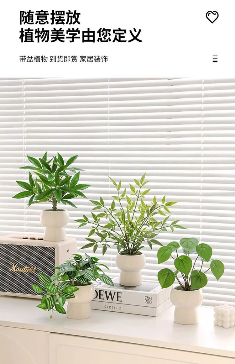 SMVP奶油风仿真绿植假植物仿生花客厅餐桌桌面装饰摆设小盆栽假花摆件 森语发财树 - 泡泡瓶 A 款