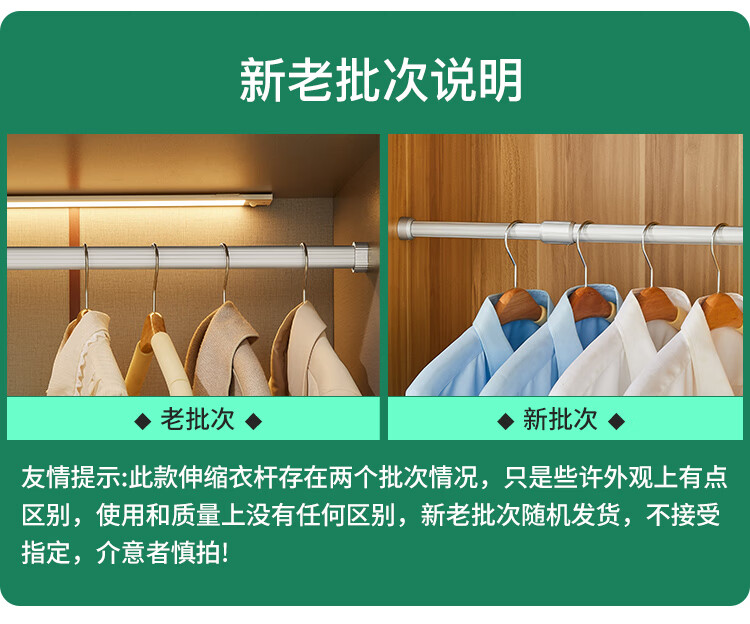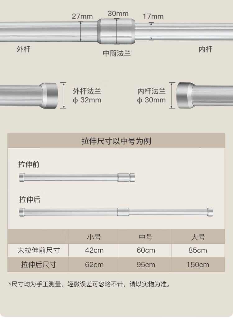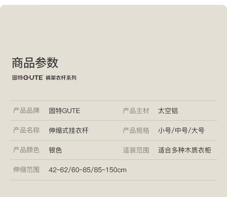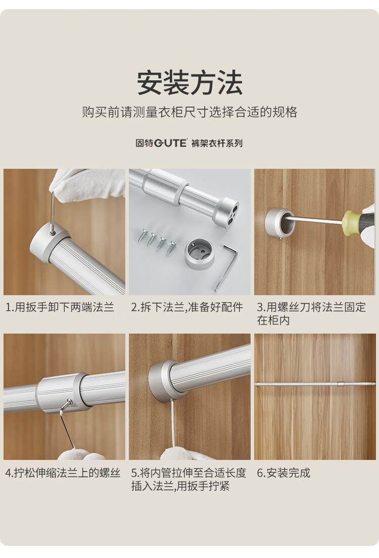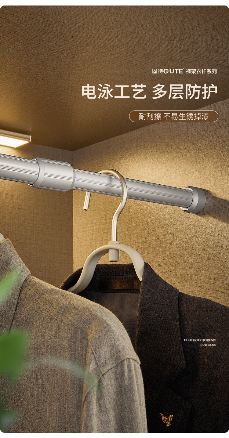 固特(GUTE)衣柜挂衣杆可伸缩橱柜杆衣柜杆固定杆衣架晾衣杆配底座银色中号