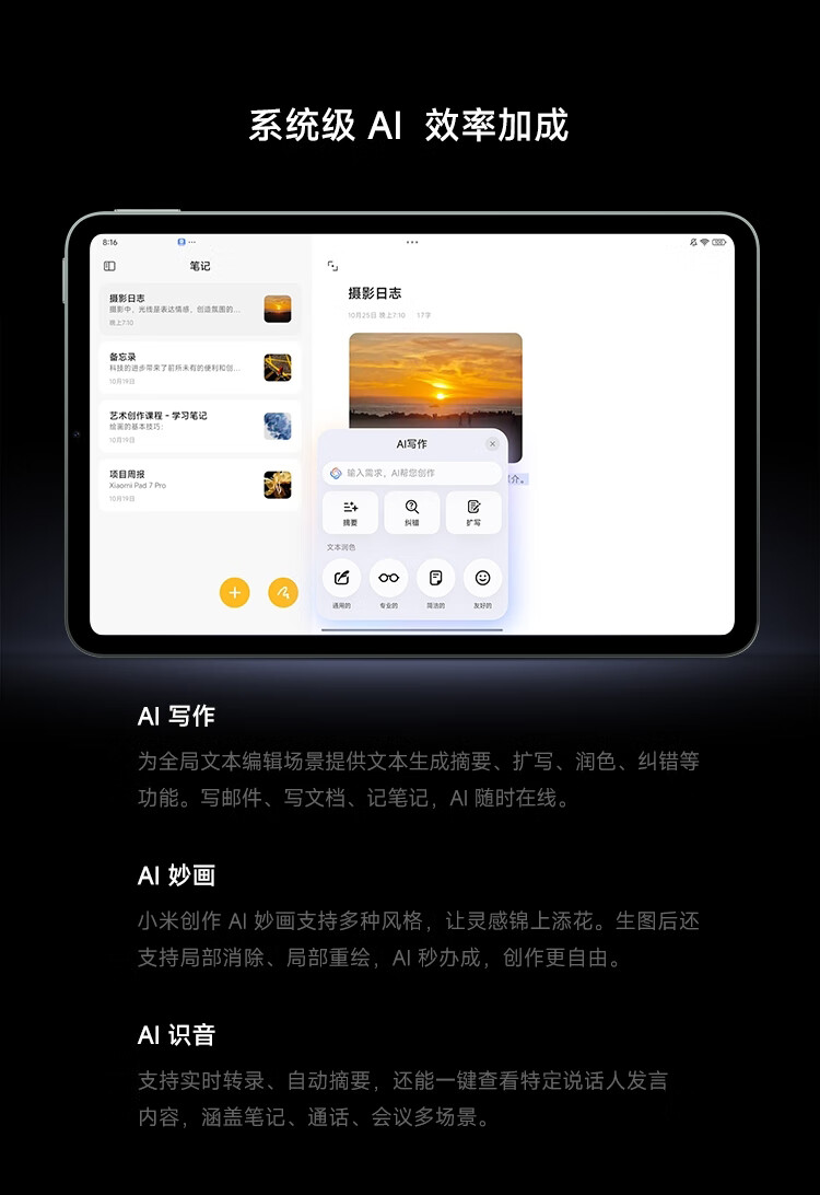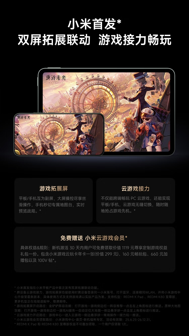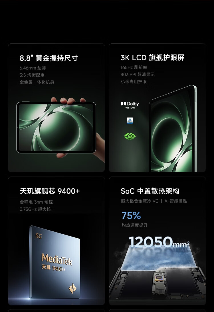 小米(MI) 小米平板 REDMI K Pad 红米 8.8英寸平板电脑 3K屏 天玑9400+ 电竞平板 8+256G 深邃黑