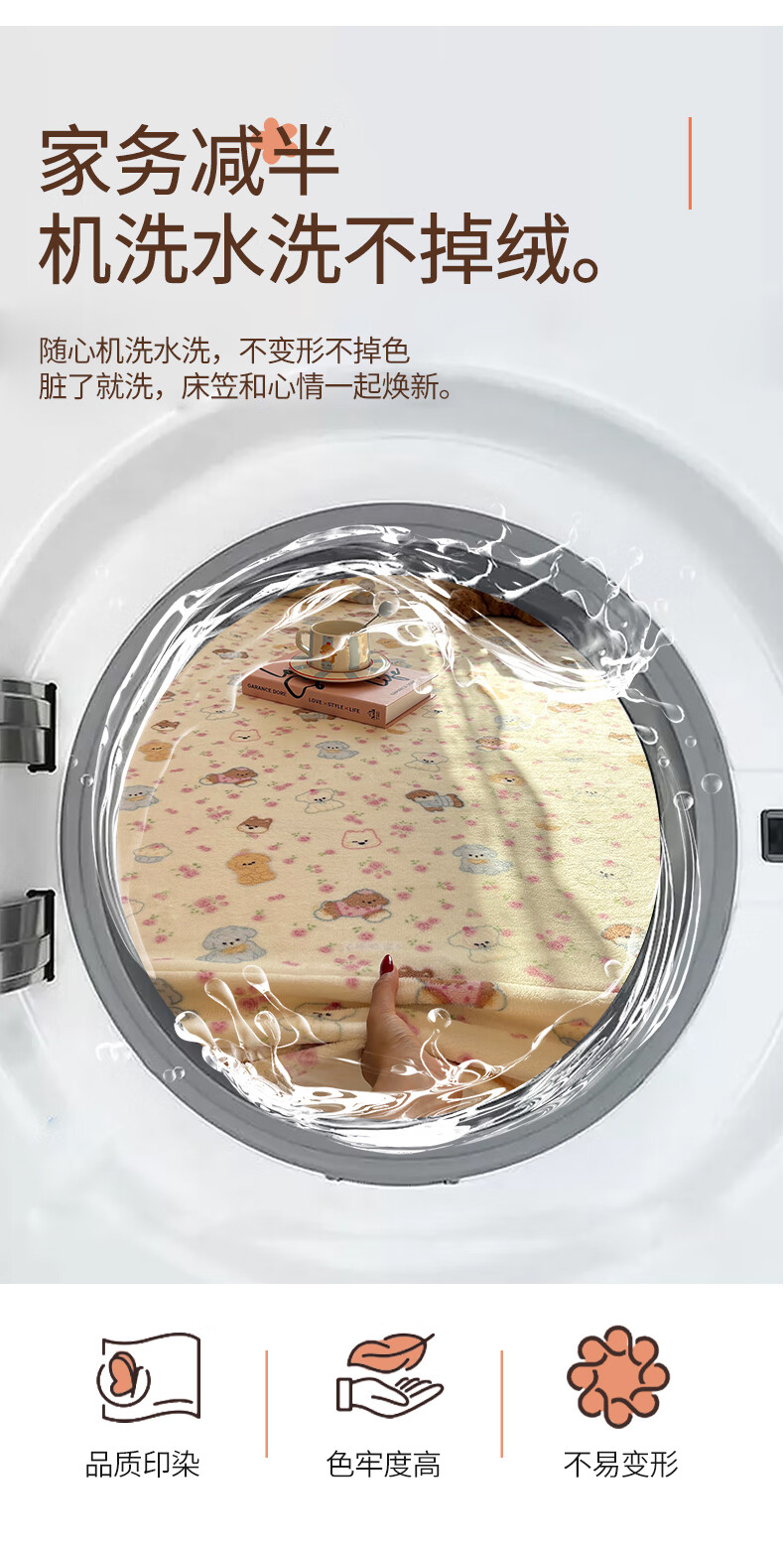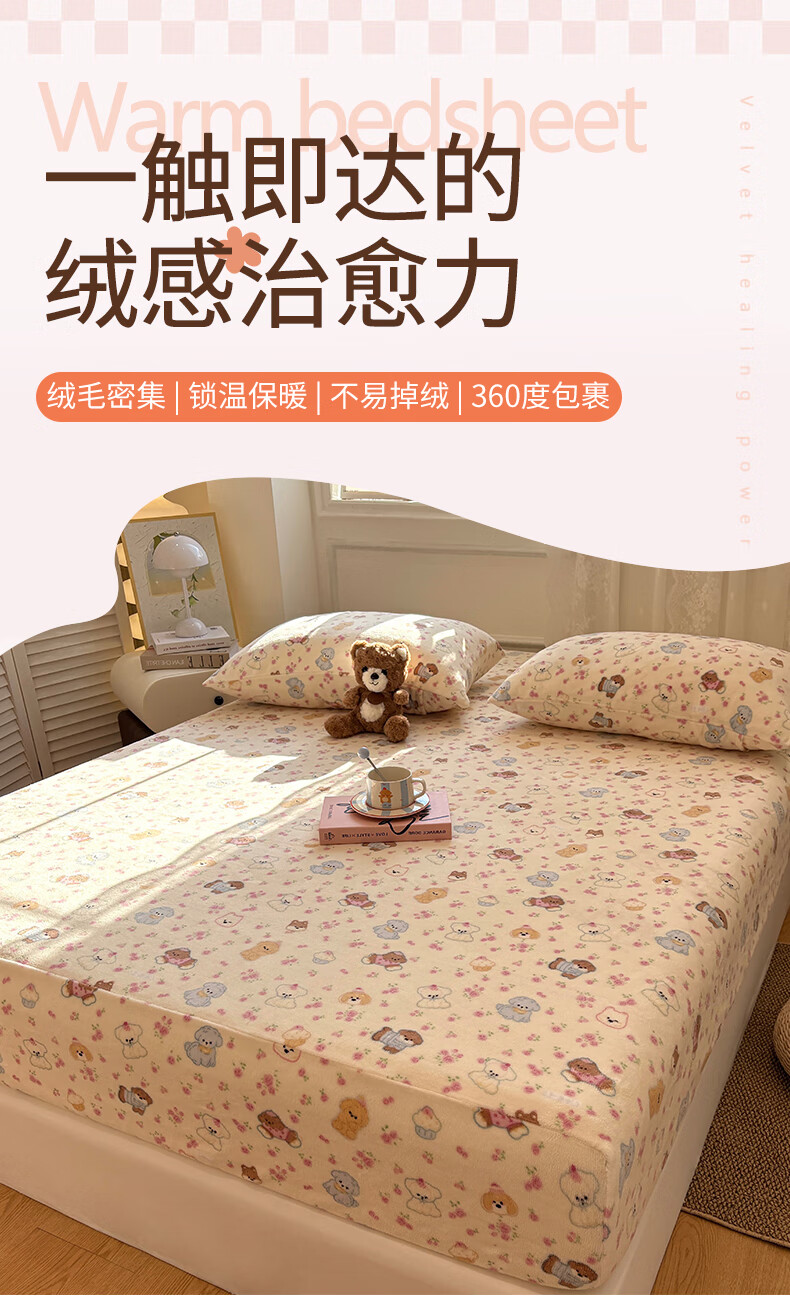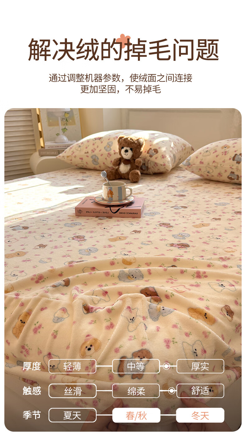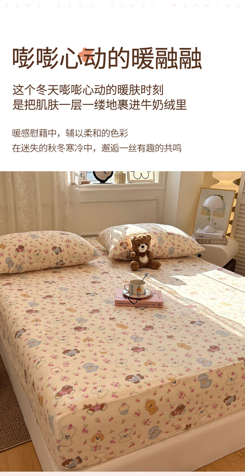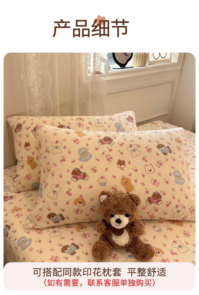 猫人(MiiOW)冬季加绒牛奶绒床笠珊瑚绒法兰绒床罩家用床垫保护罩加厚床套宿舍 芋泥小兔【亲肤保暖】 三件套-180x200cm床笠+枕套*2