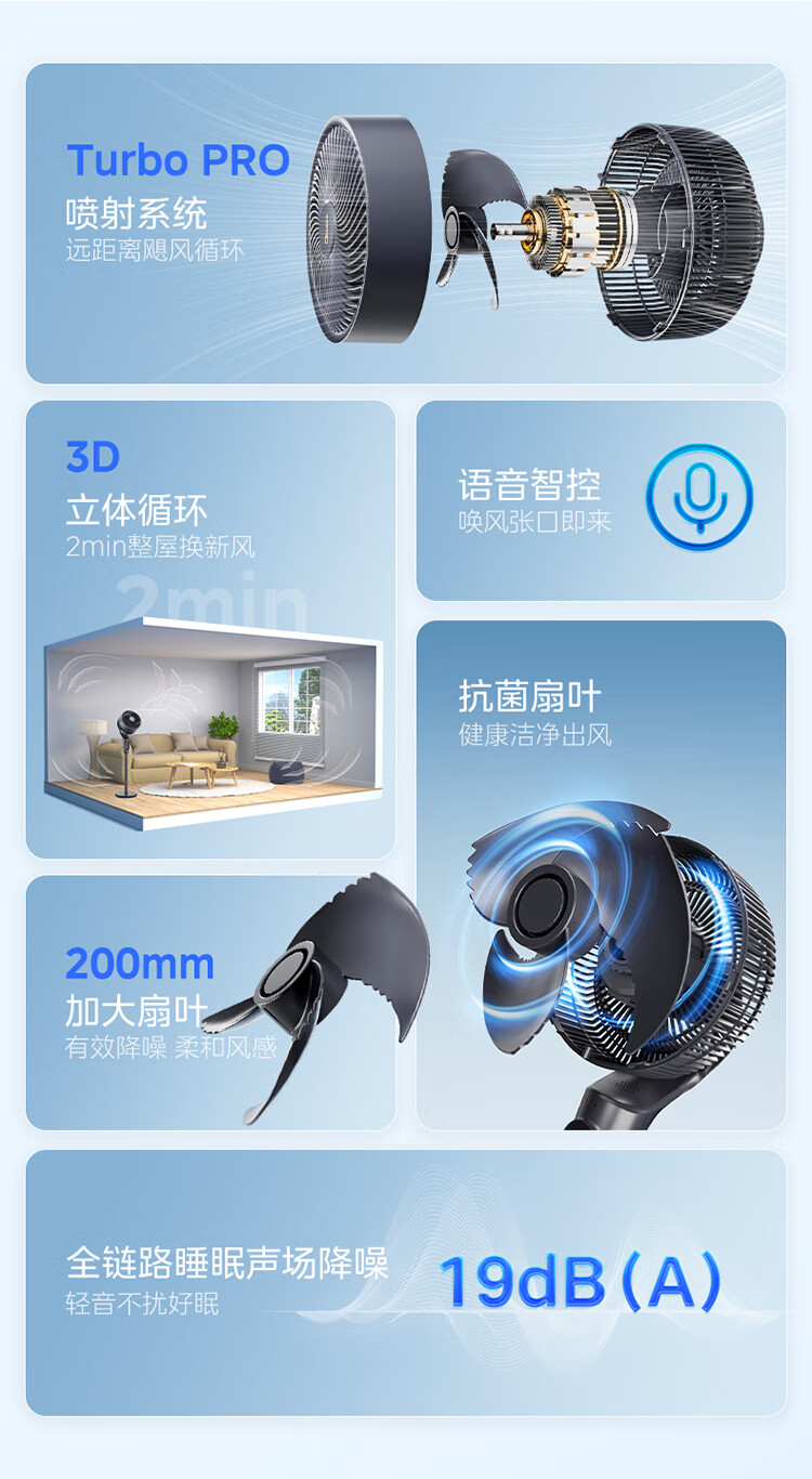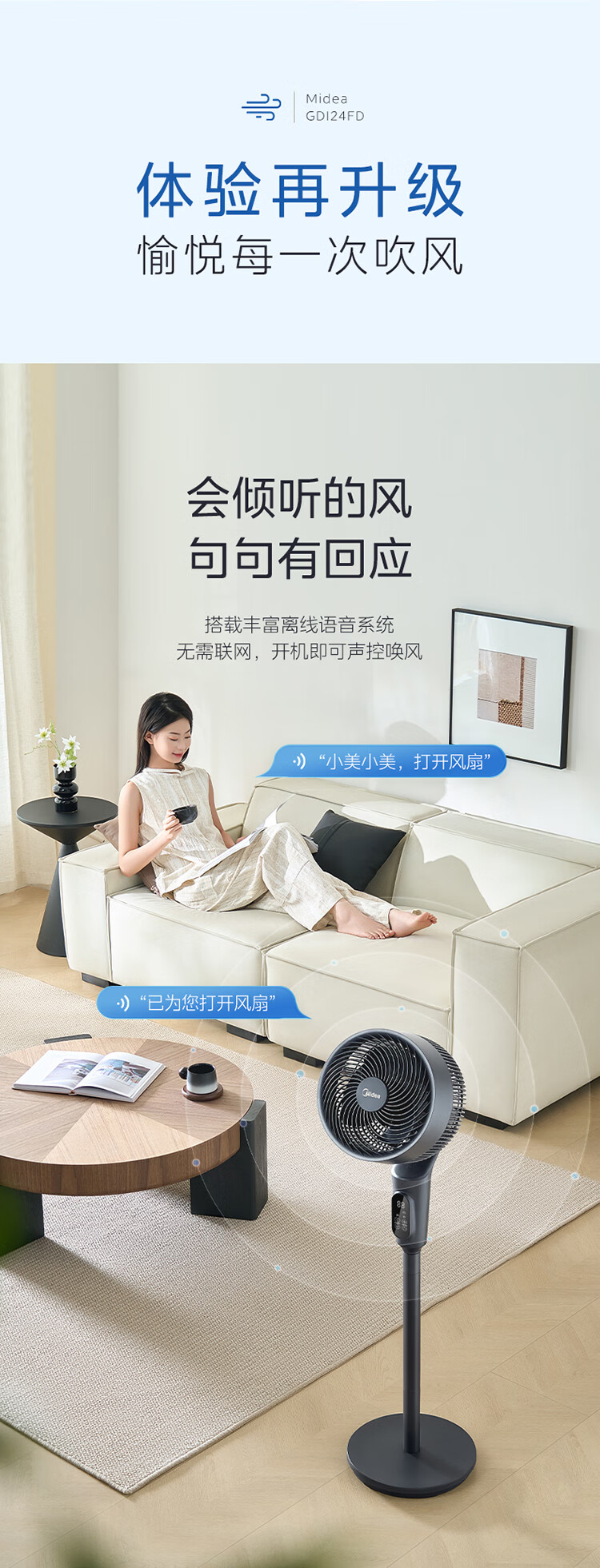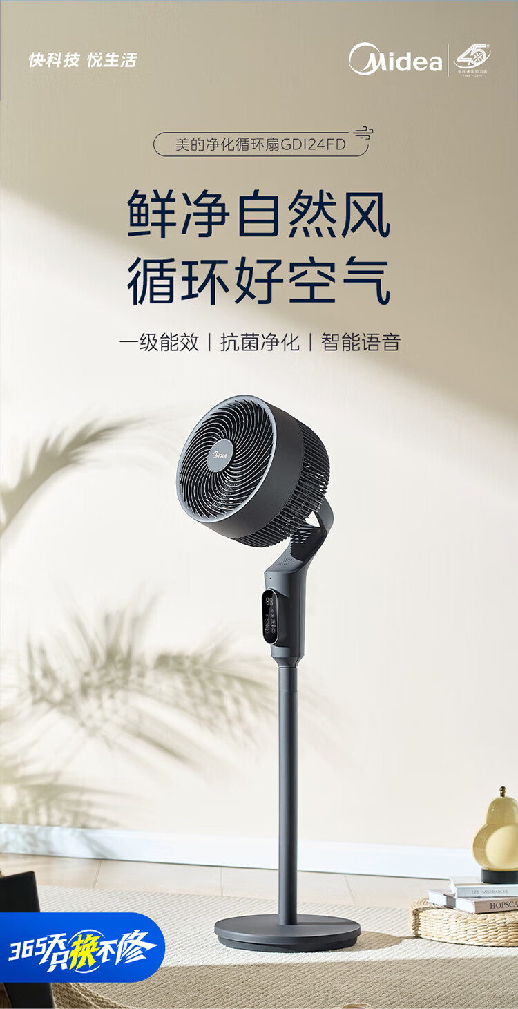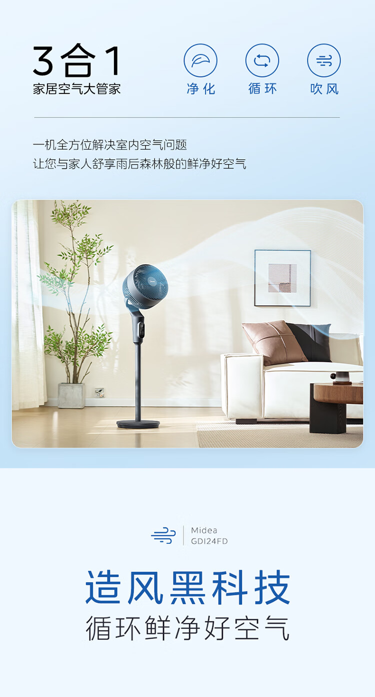 美的(Midea)空气循环扇一级变频电风扇卧室安睡循环扇语音遥控定时换气扇轻音节能电扇除菌净化 【轻音净化】一级变频空气循环扇