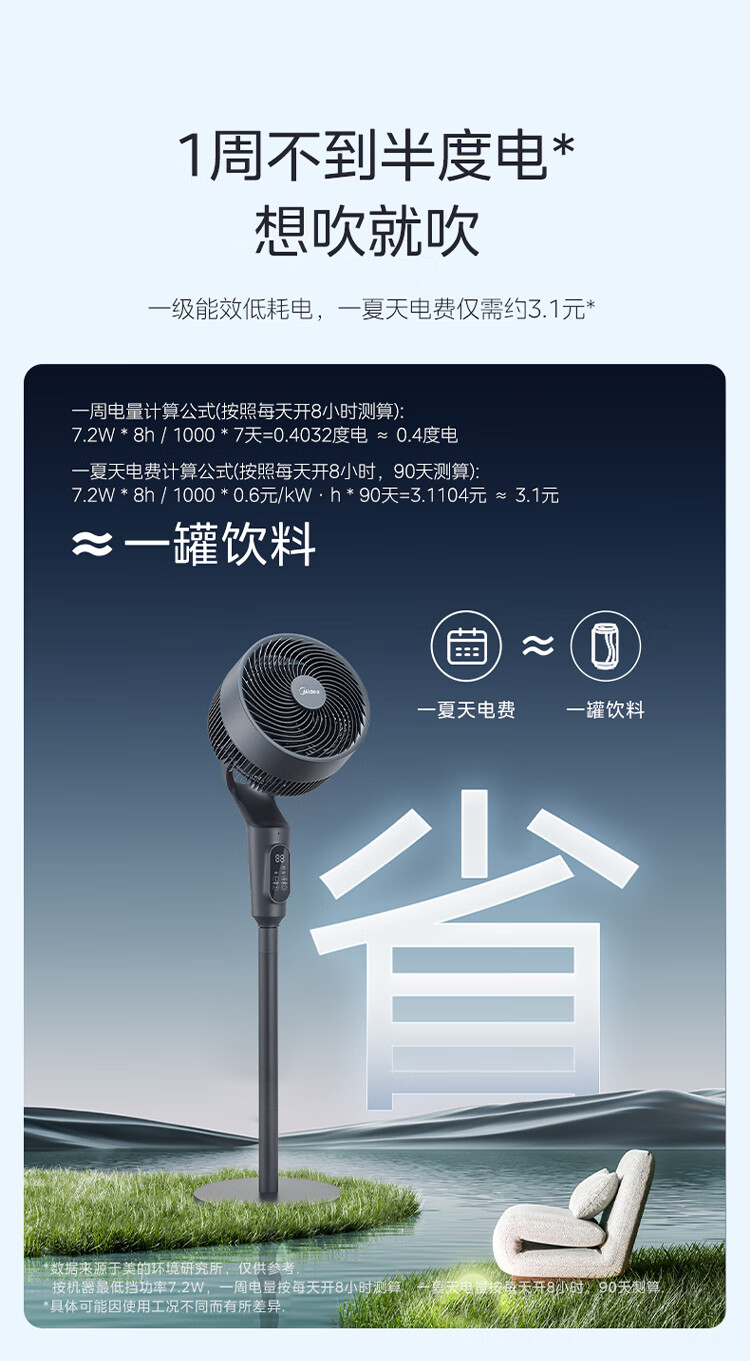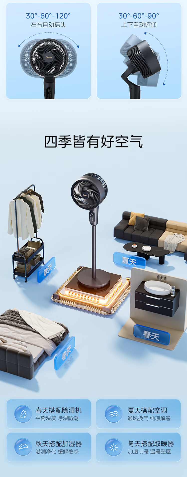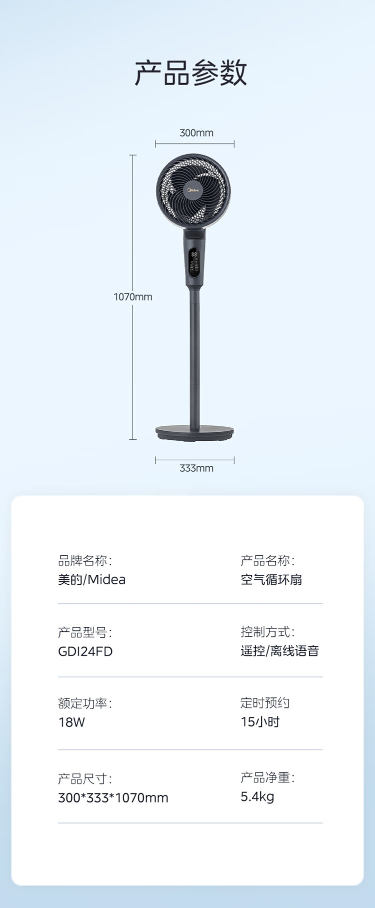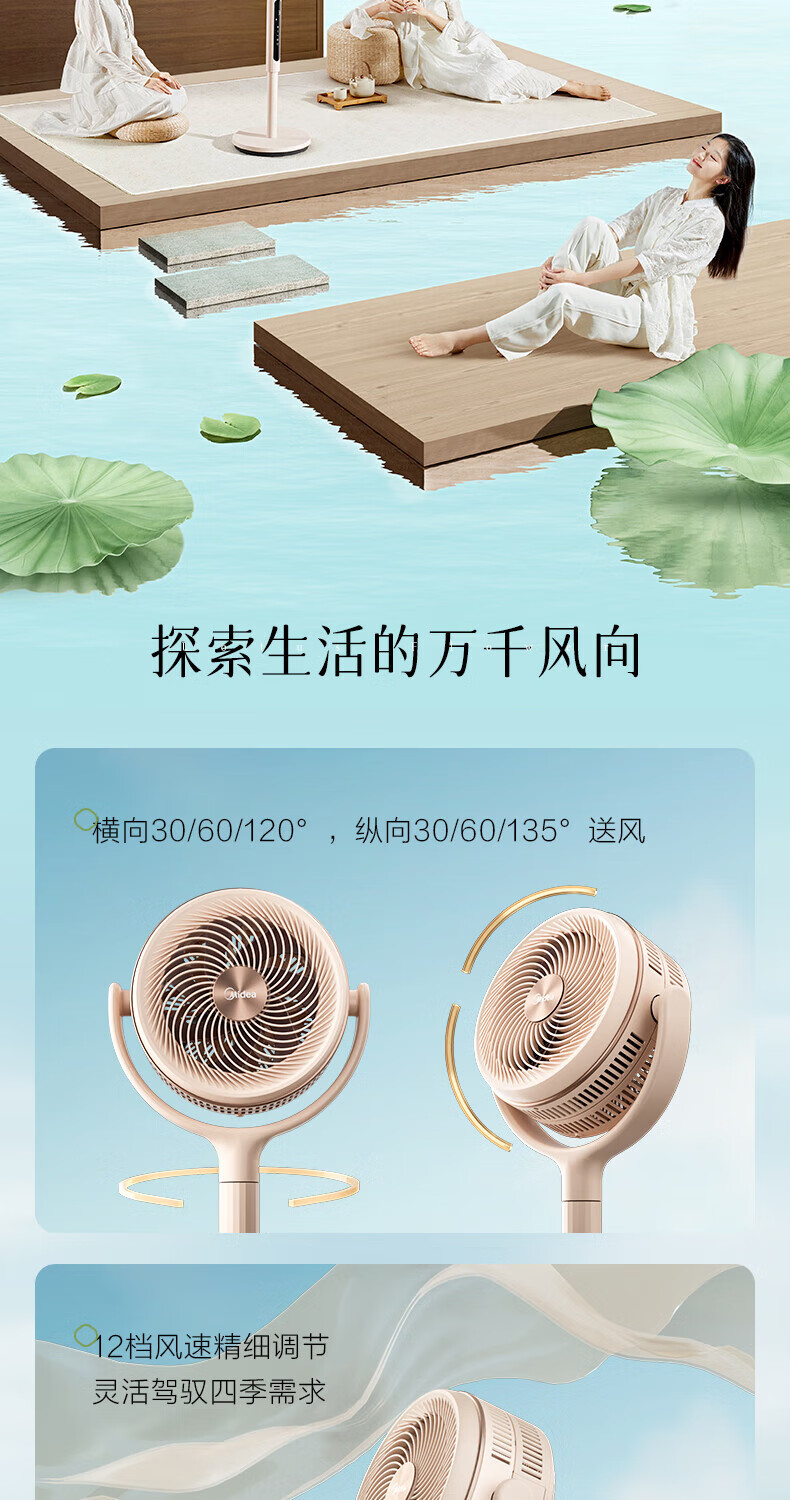 美的(Midea)空气循环扇一级变频电风扇卧室安睡循环扇语音遥控定时换气扇轻音节能电扇除菌净化 【轻音净化】一级变频空气循环扇