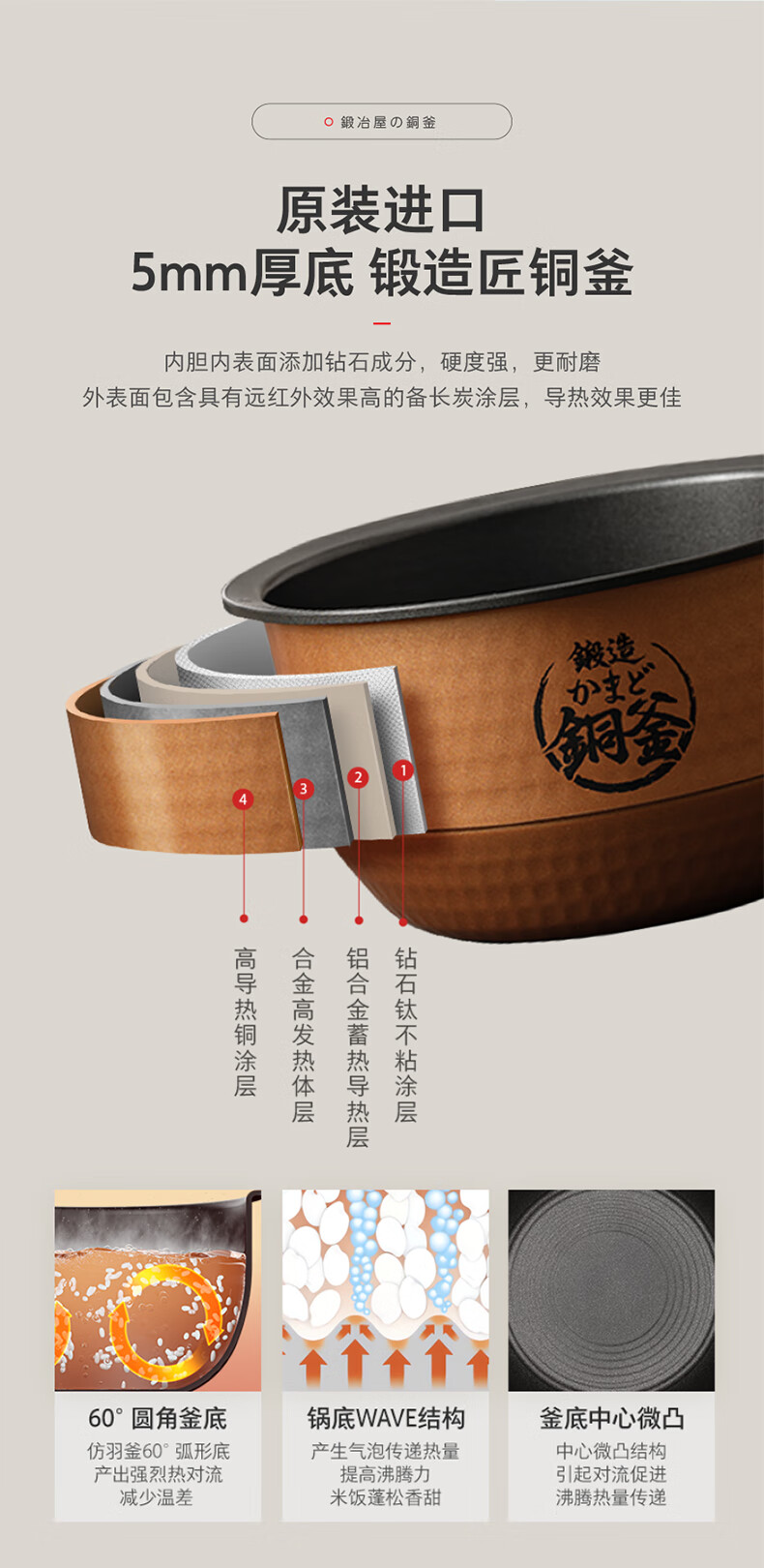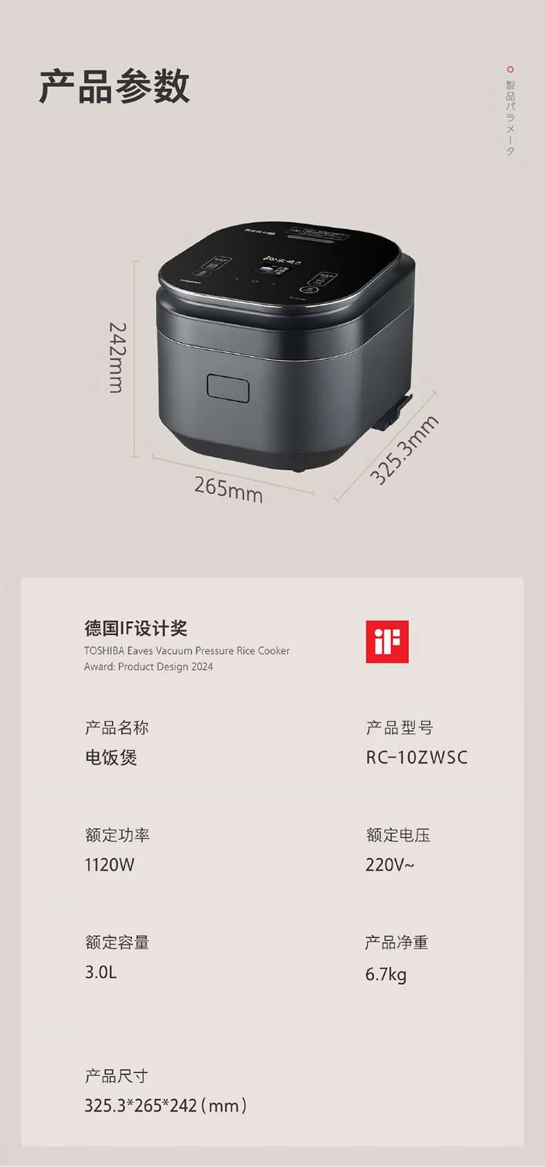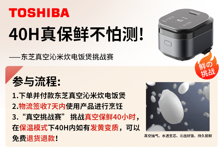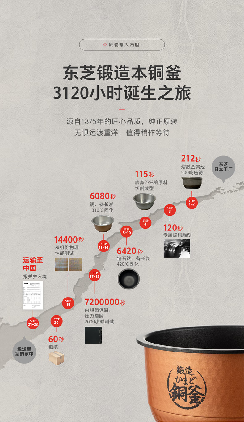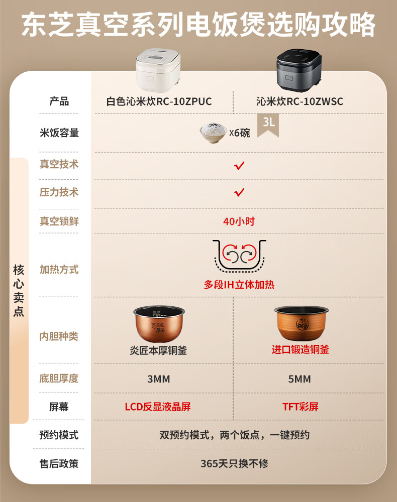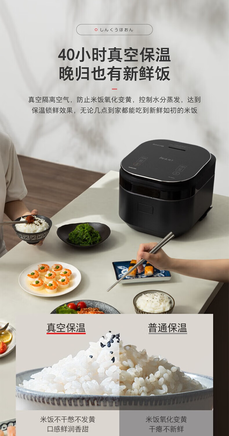东芝(TOSHIBA)真空沁米炊压力多段IH电饭煲微压3-4人柴火饭 3L真空锁鲜 5mm原装进口锻造铜釜电饭锅 RC-10ZWSC