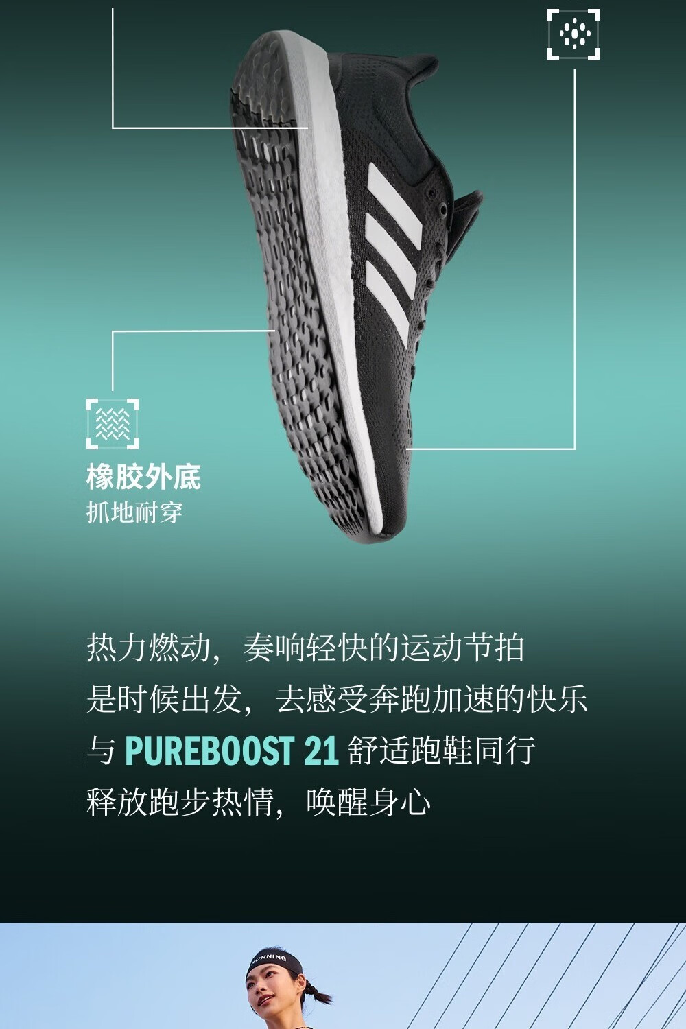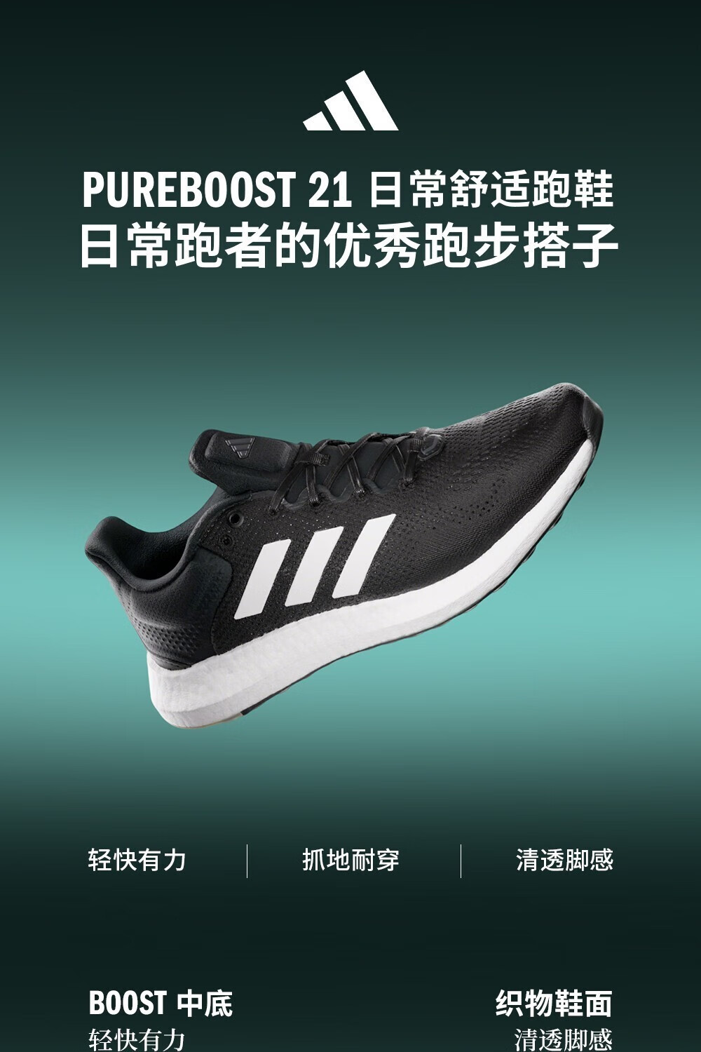 adidas PUREBOOST 21随心畅跑休闲舒适跑步鞋男女阿迪达斯 黑/白 41