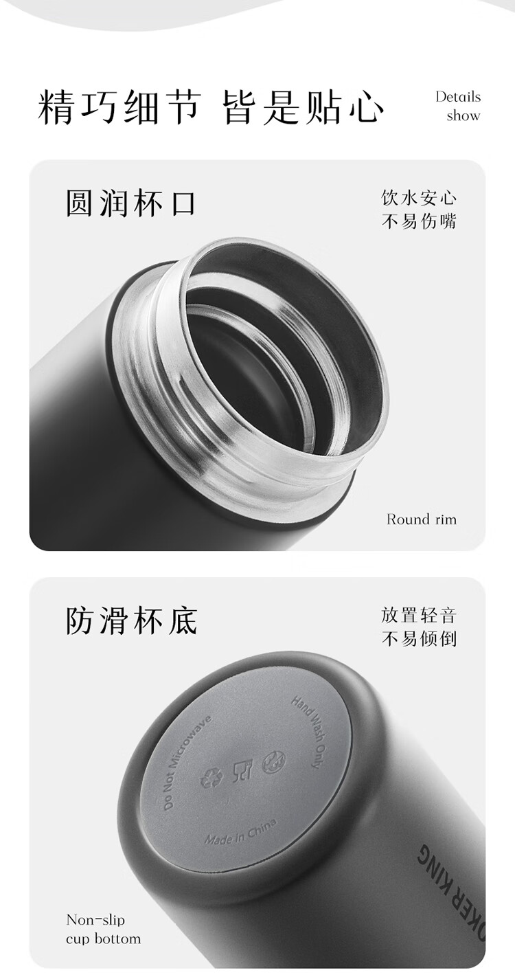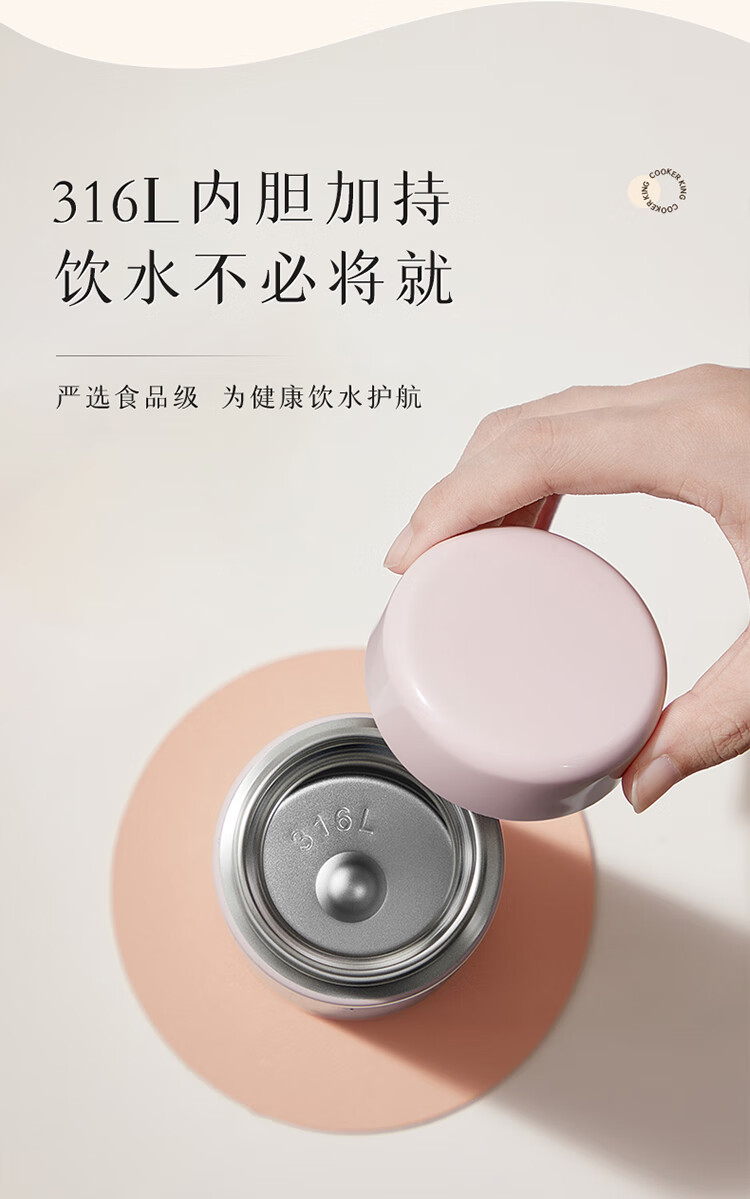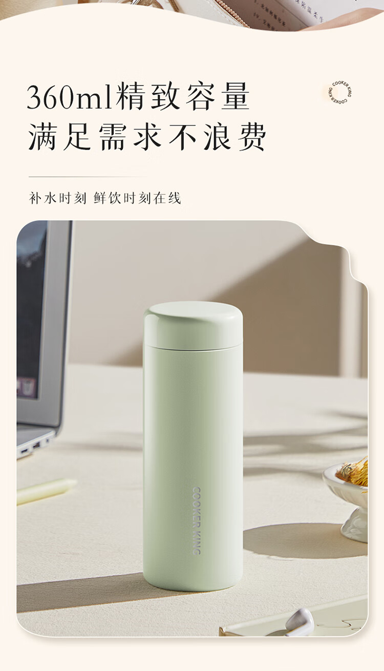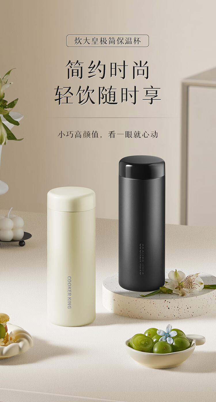 炊大皇保温杯 316L不锈钢水杯 男女士简约轻巧便携茶水杯子简约黑360ml