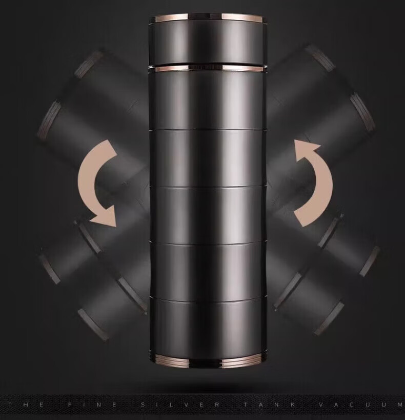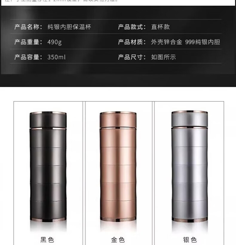 WFFPM德国品牌竹节银水杯男女士999足银内胆泡茶保温杯车载泡茶杯礼盒 银色 350ml
