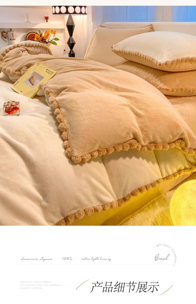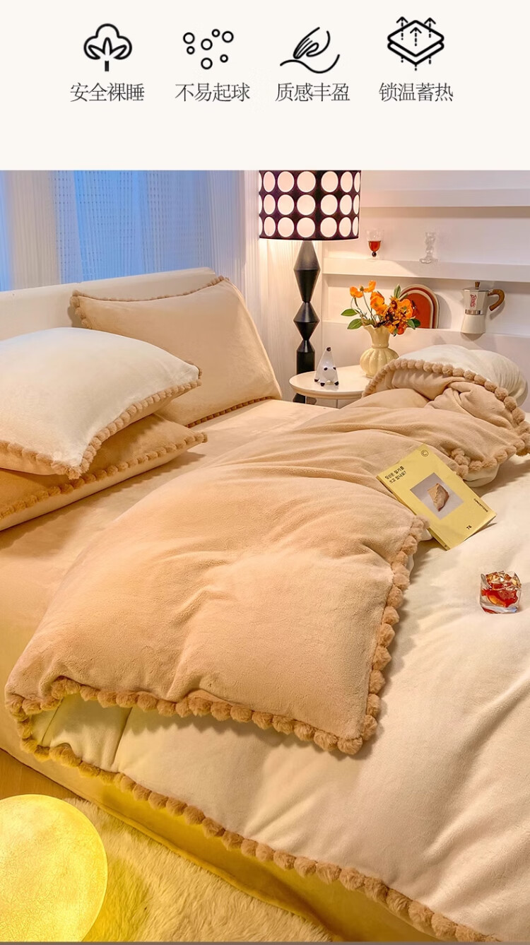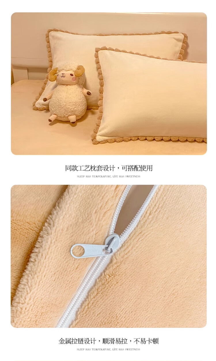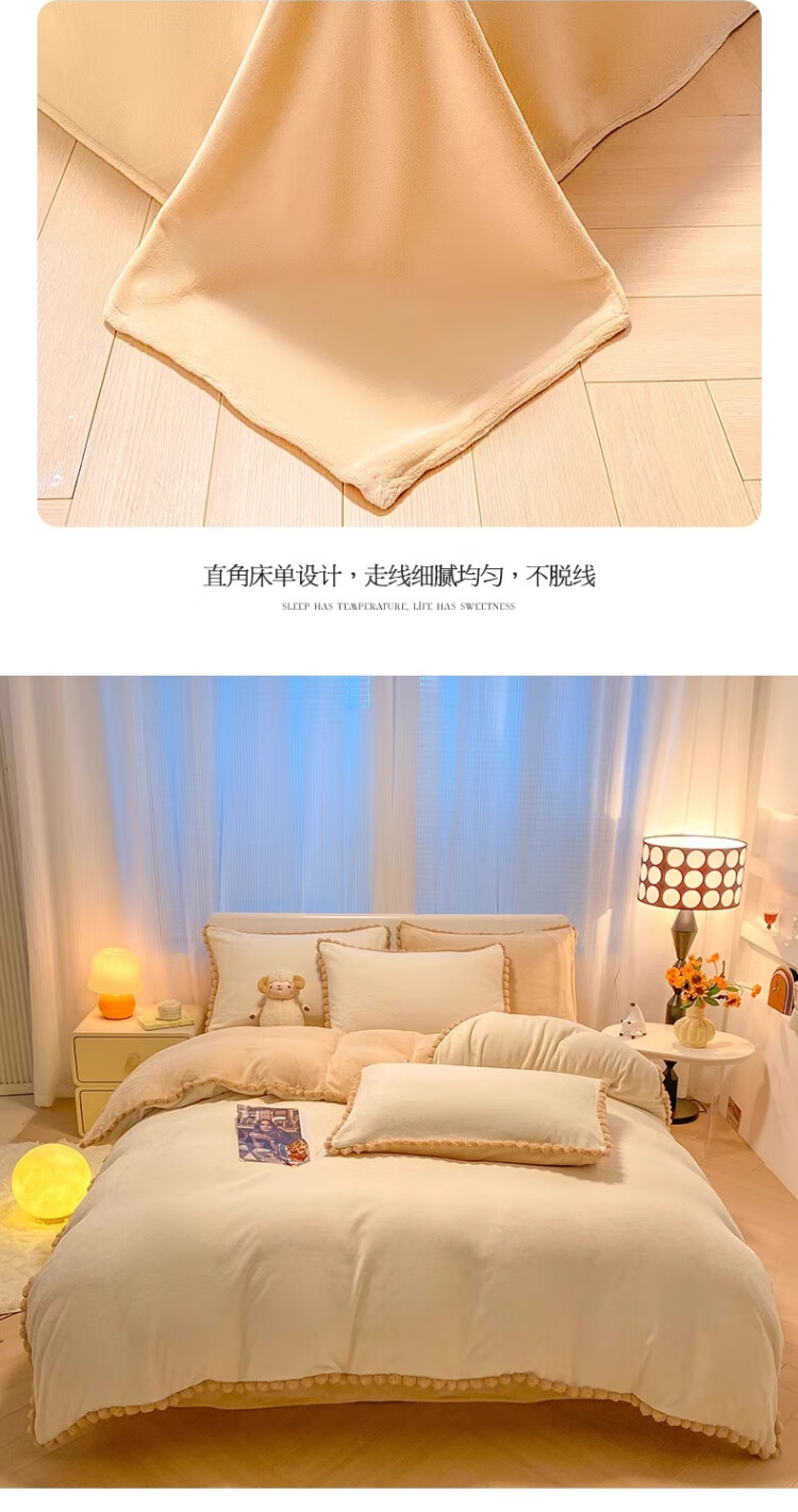 猫人(MiiOW)秋冬季牛奶绒四件套加厚保暖珊瑚绒法兰绒床单被套三件套学生宿舍 香槟色【双面加厚】 1.8m 床笠款 四件套-200x230cm被套