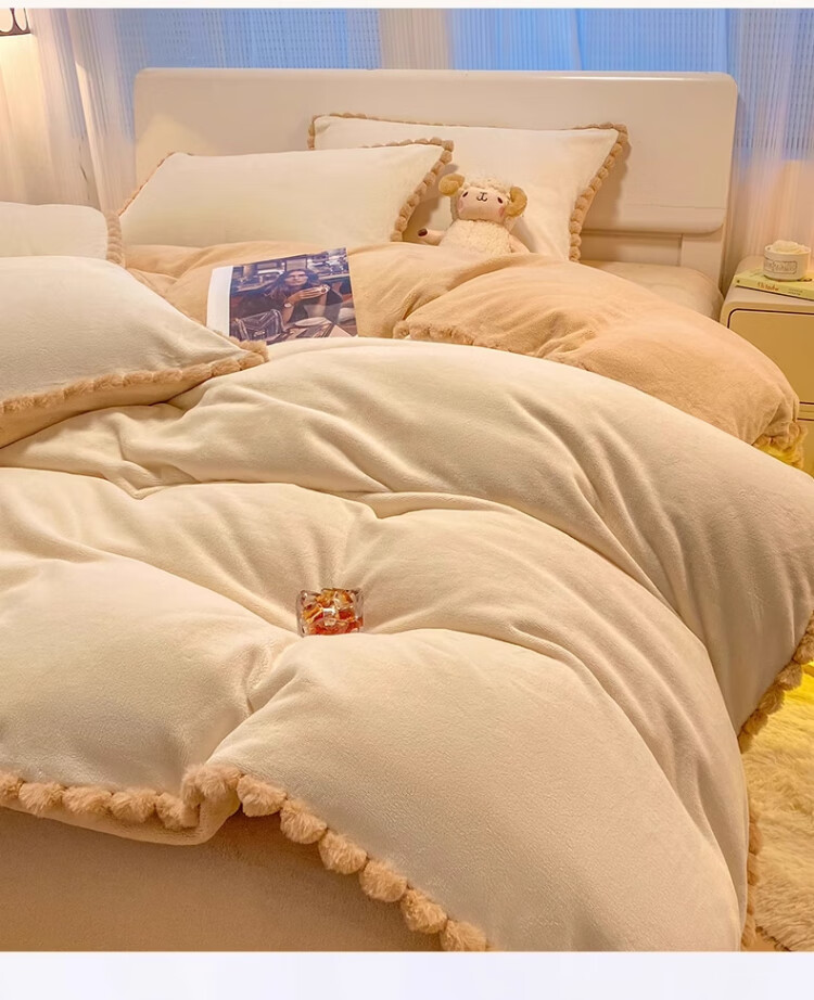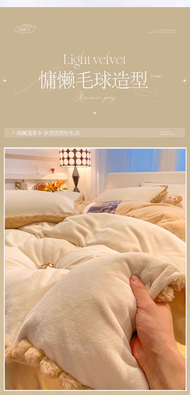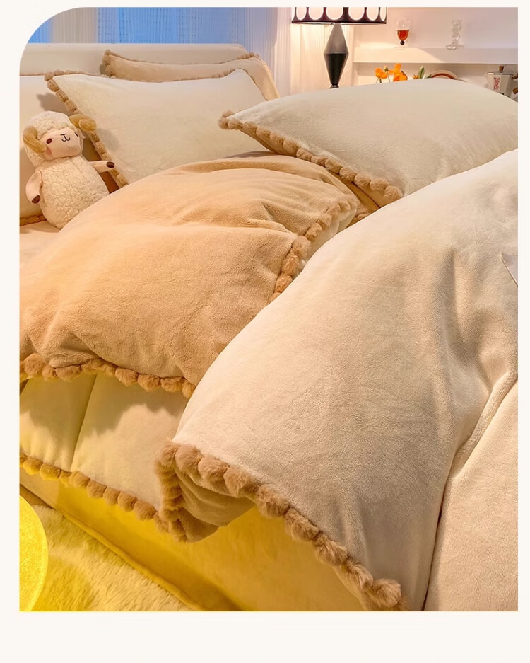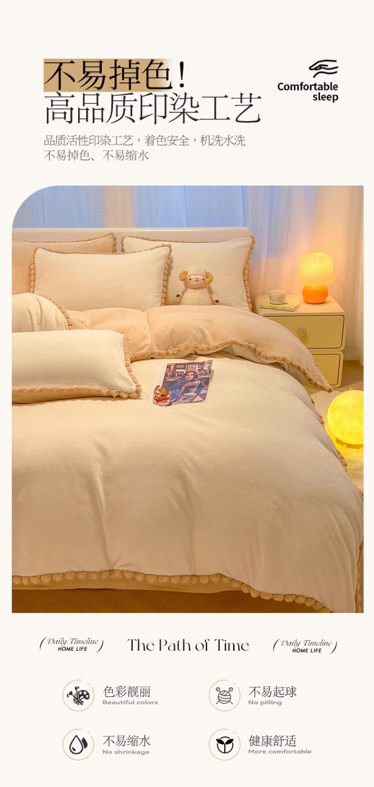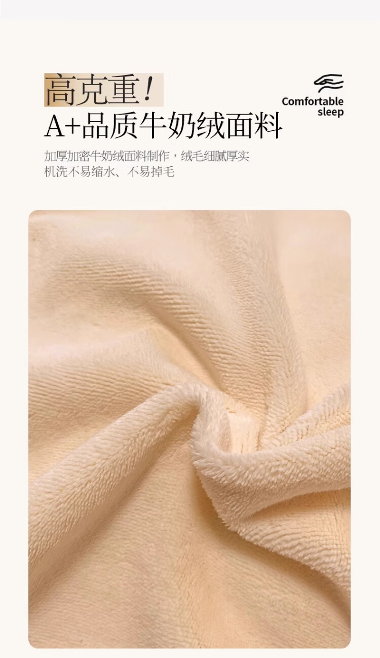 猫人(MiiOW)秋冬季牛奶绒四件套加厚保暖珊瑚绒法兰绒床单被套三件套学生宿舍 香槟色【双面加厚】 1.8m 床笠款 四件套-200x230cm被套