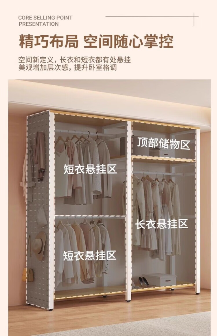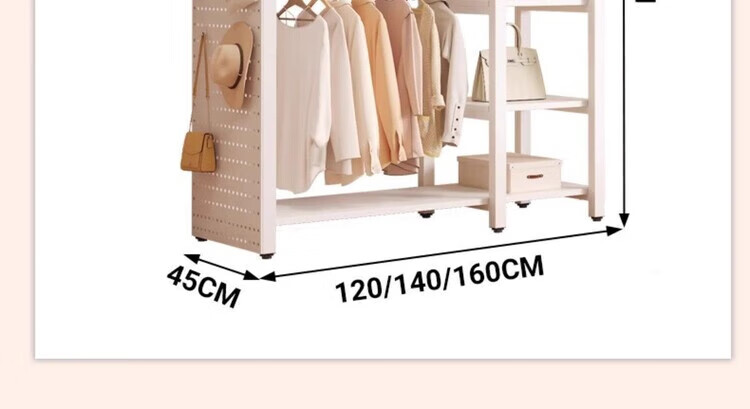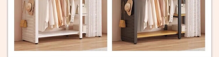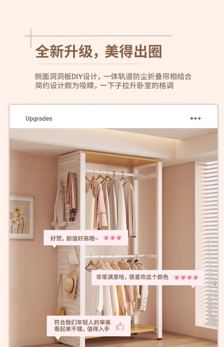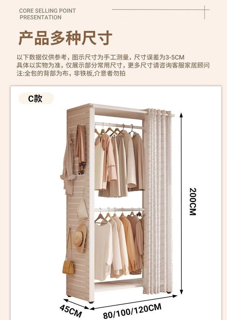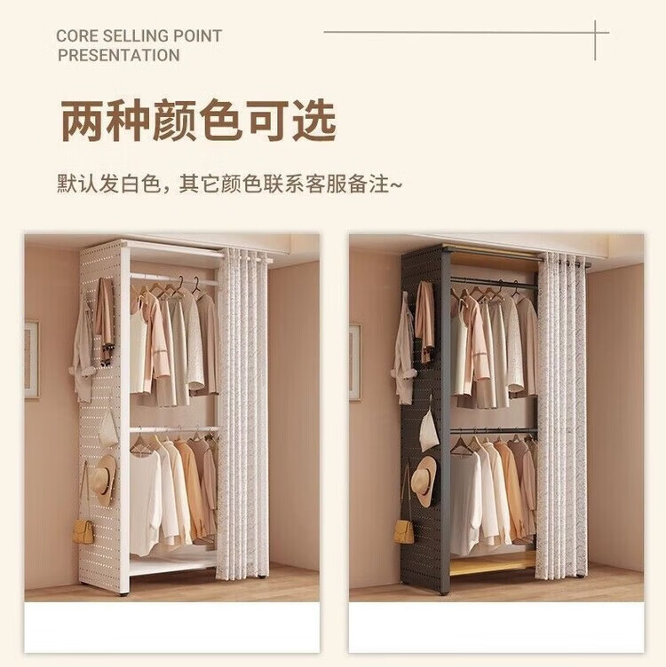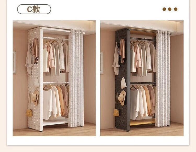 倘然之家衣帽架洞洞板落地卧室家用挂衣架子衣架置物架简易组装开放式衣柜 【A款前帘+单侧洞洞板】120*45*200