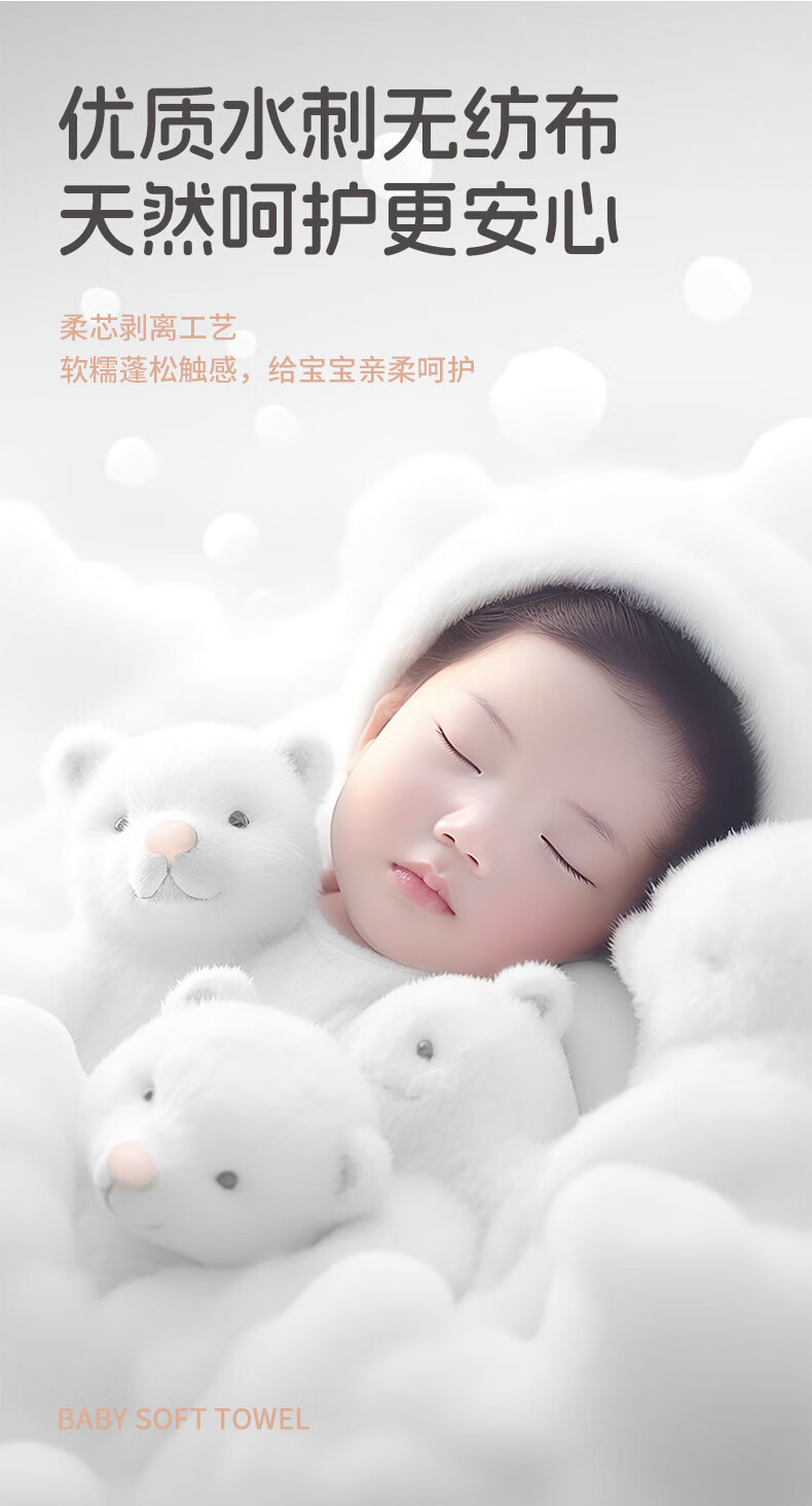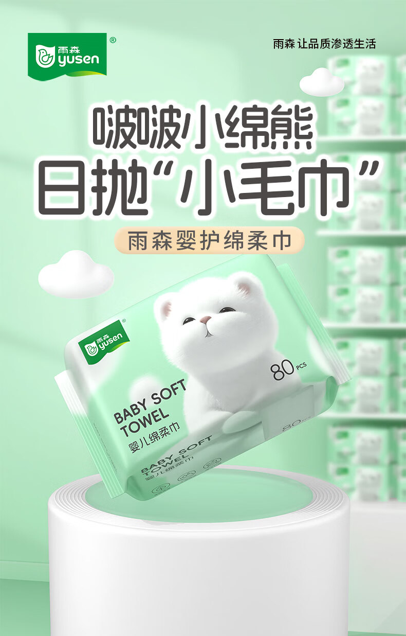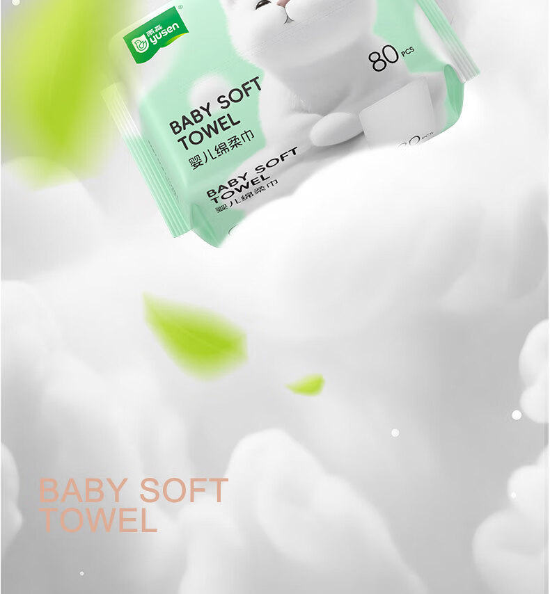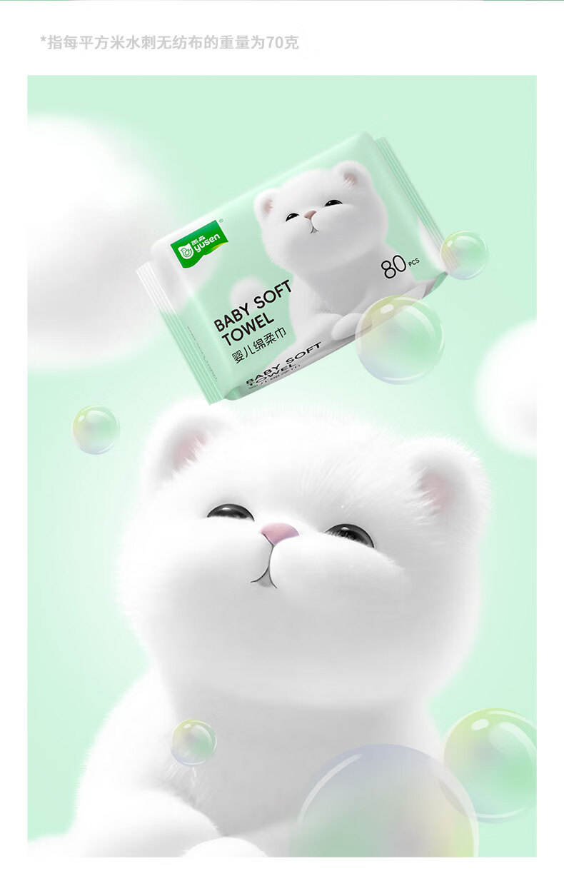 雨森(YUSEN)啵啵熊洗脸巾80抽/包干湿两用一次性清洁干巾洁面巾 4包