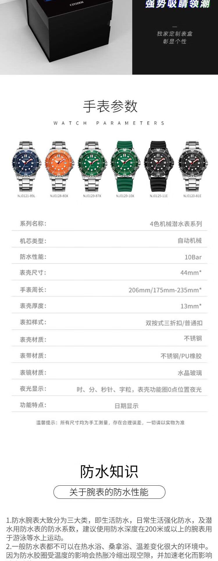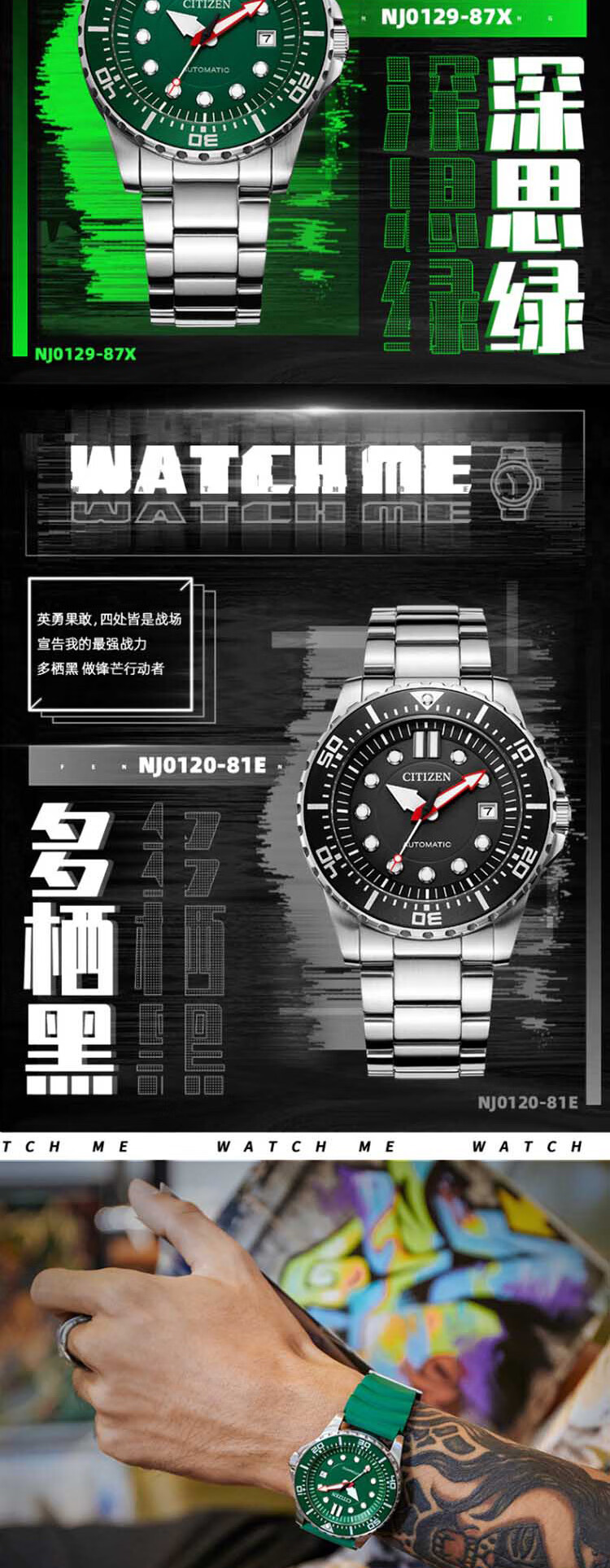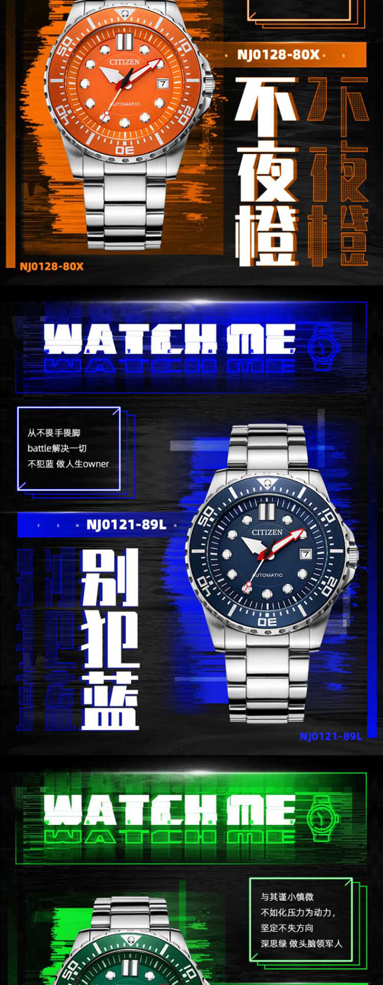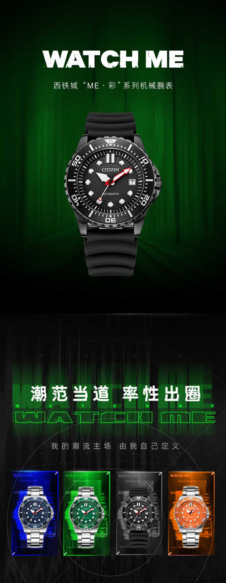 西铁城(CITIZEN)手表男日韩表ME彩系列自动机械PU带运动送礼物男友NJ0125-11E