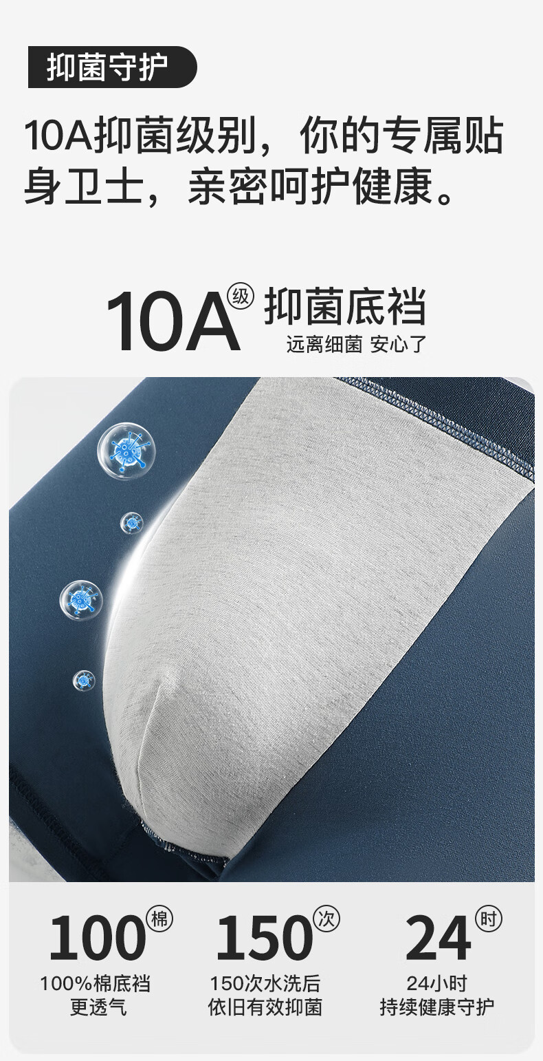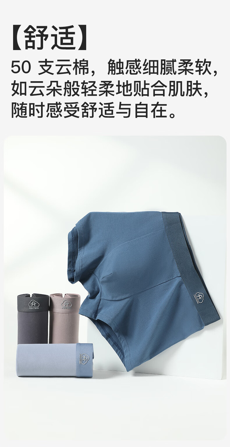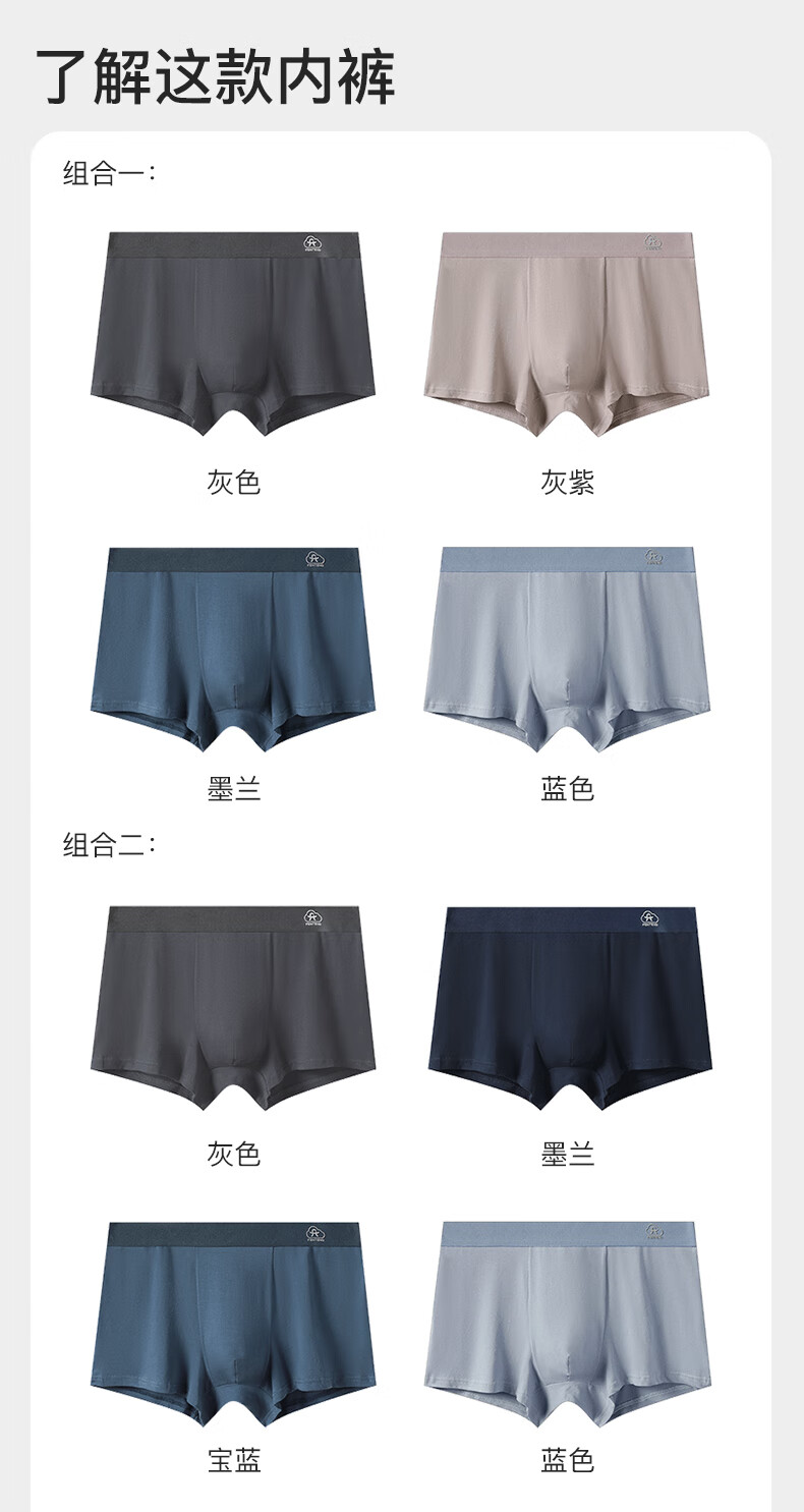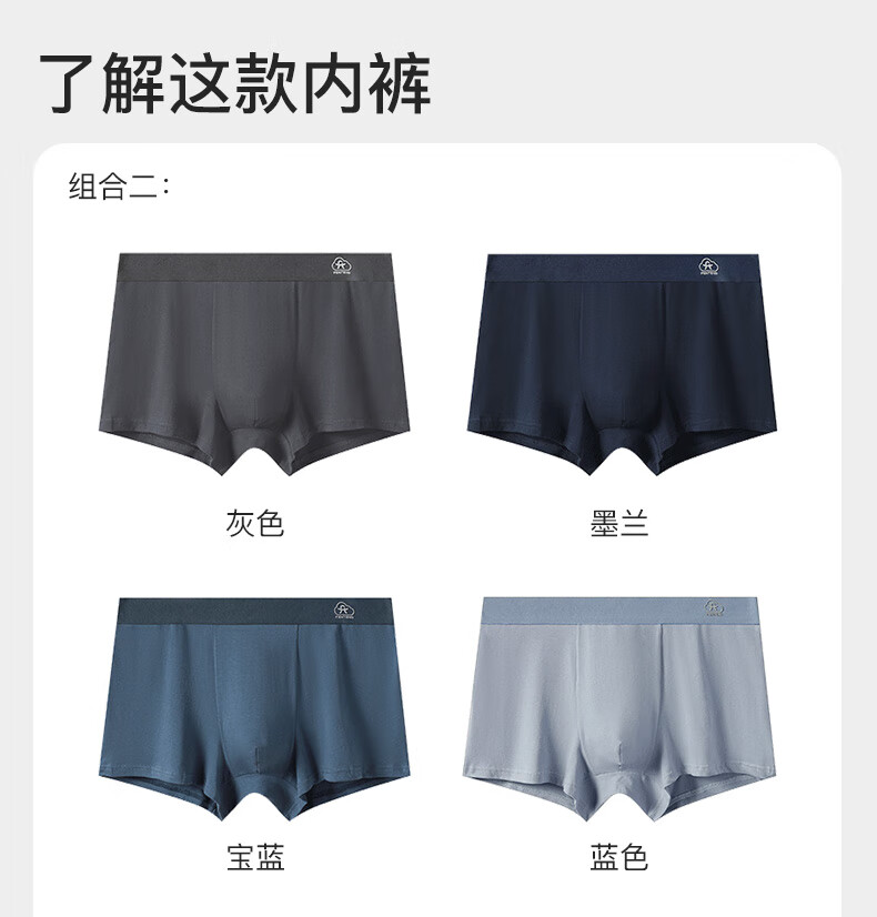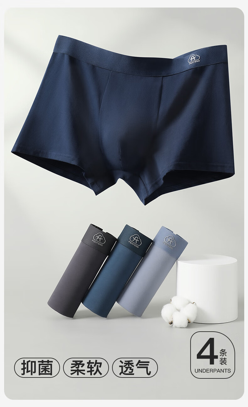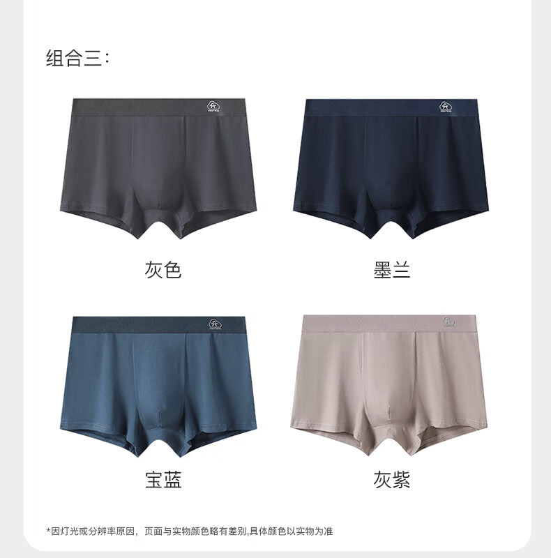 芬腾内裤男式2025年内裤中腰10A抑菌纯棉底裆简约平角内裤4条装 灰色/墨兰/灰紫/蓝色 4条 2XL