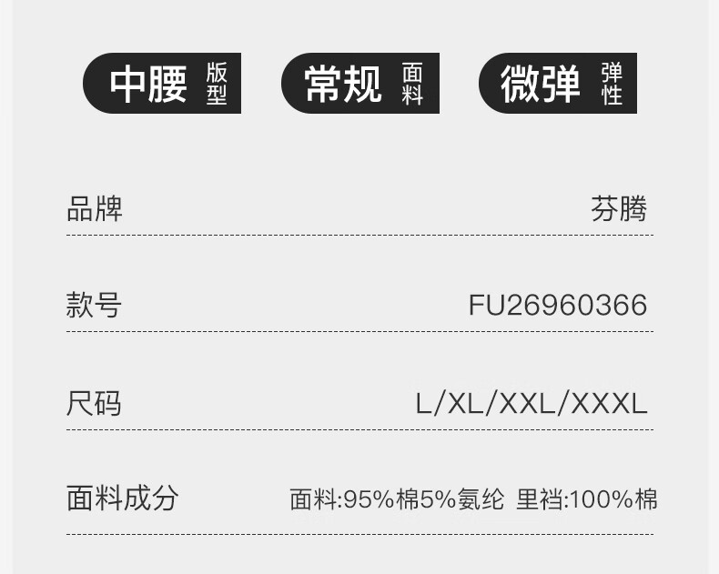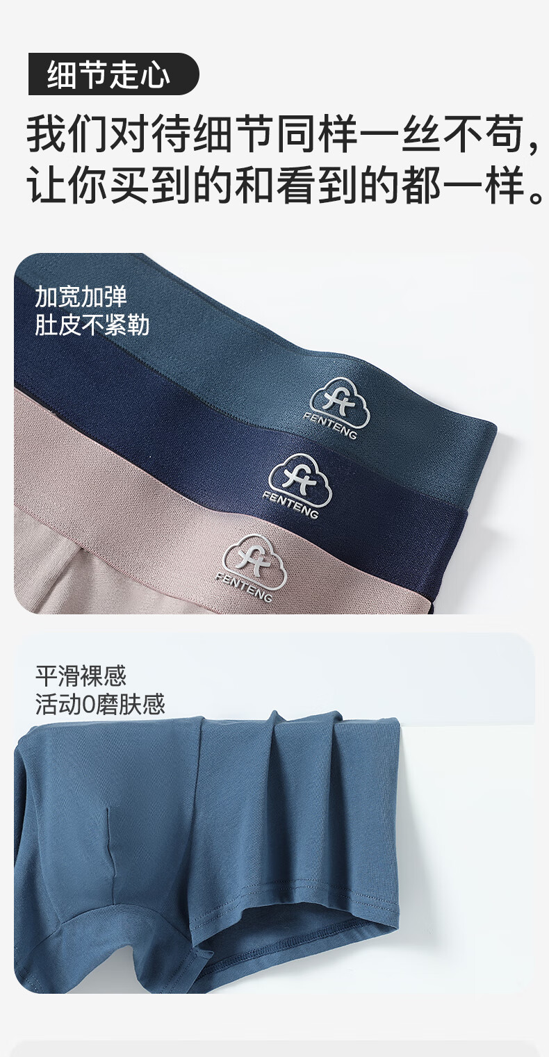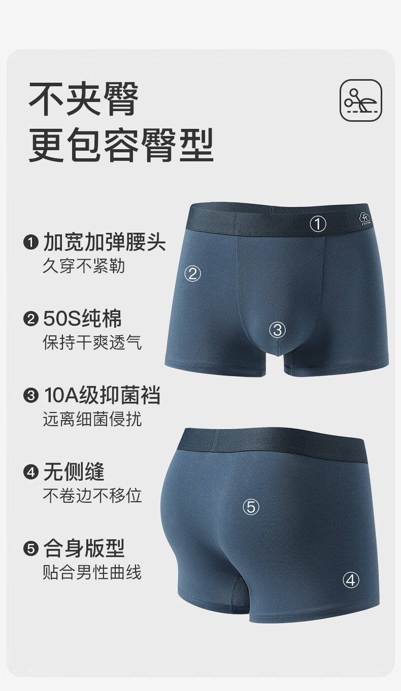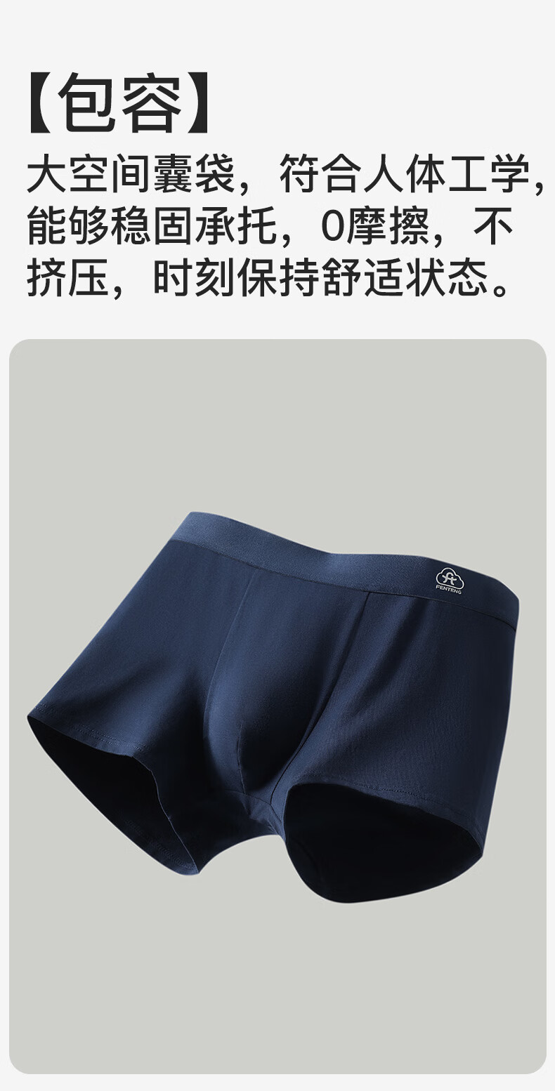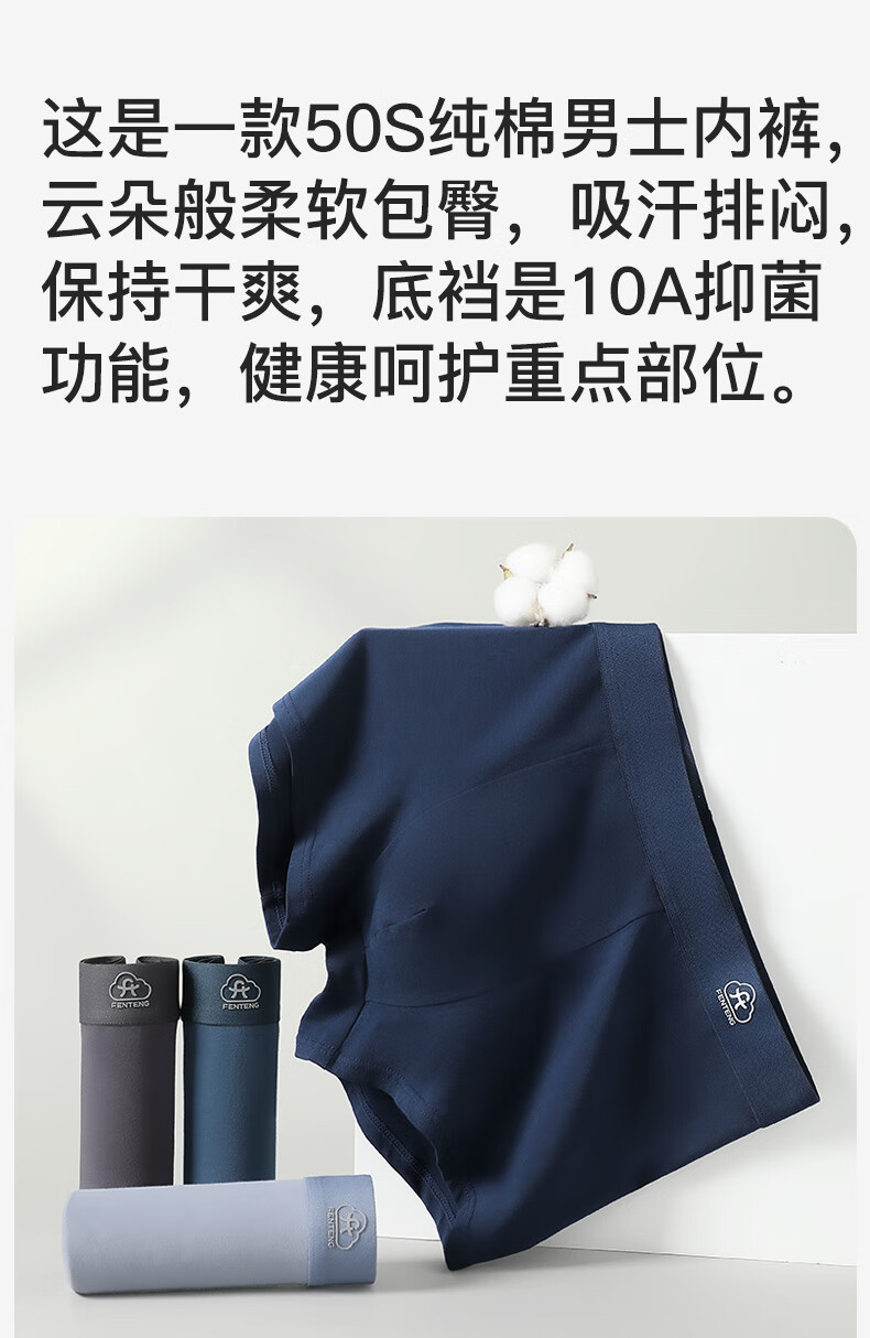 芬腾内裤男式2025年内裤中腰10A抑菌纯棉底裆简约平角内裤4条装 灰色/墨兰/灰紫/蓝色 4条 2XL