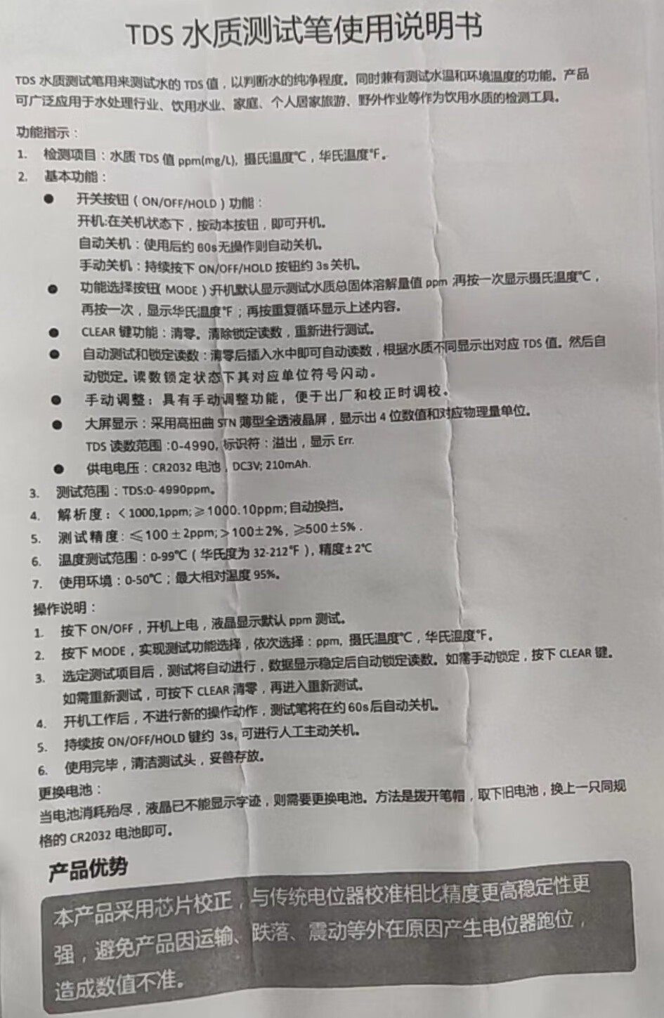 史密斯tds水质检测笔家用高精度测水质饮用水纯净水检测水质仪器