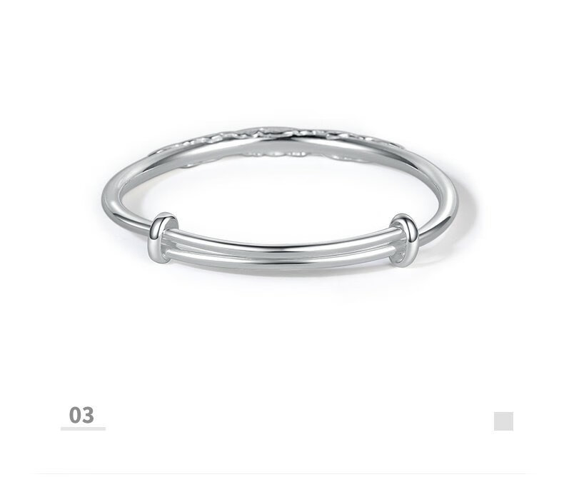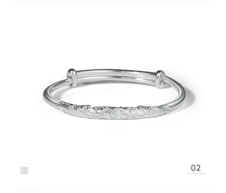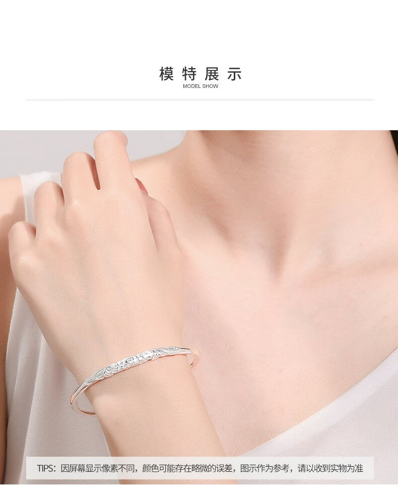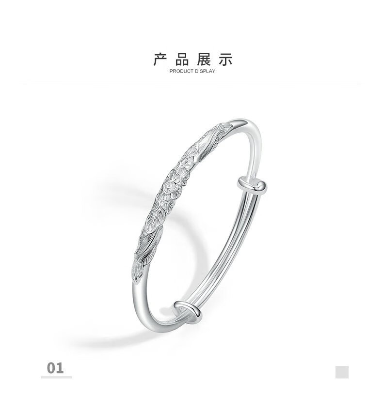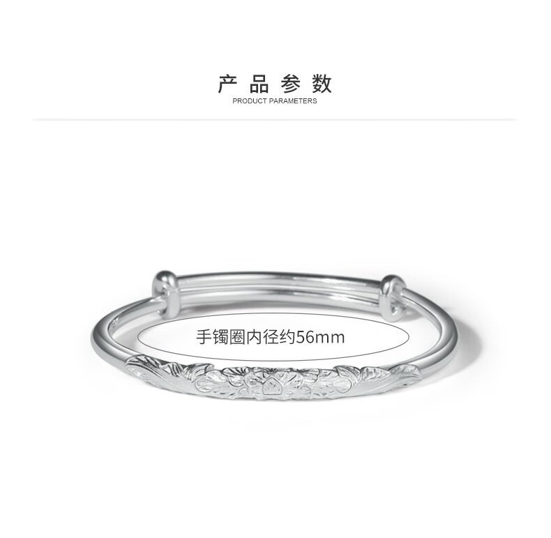 周大生足银手镯花朵雕花气质银手镯生日礼物送女友