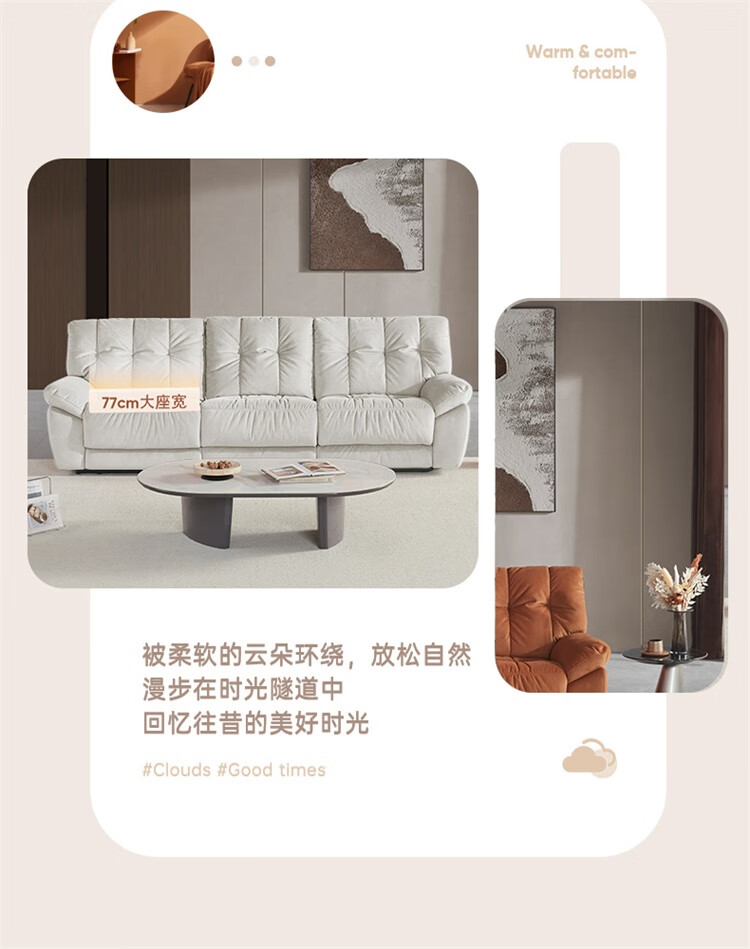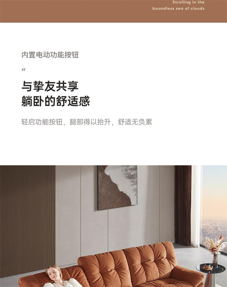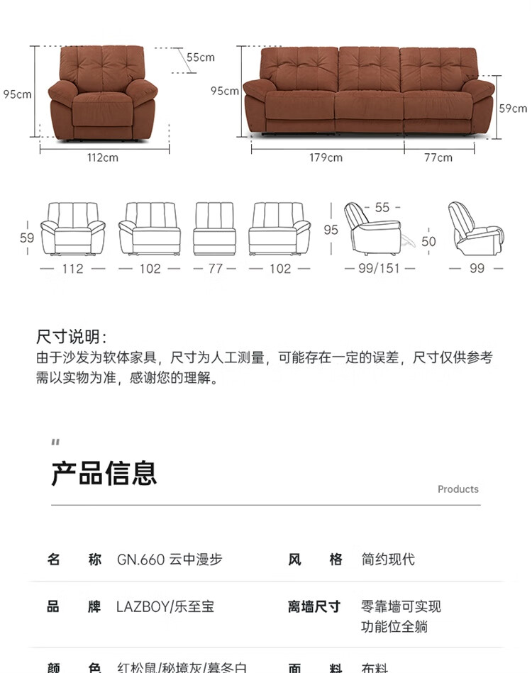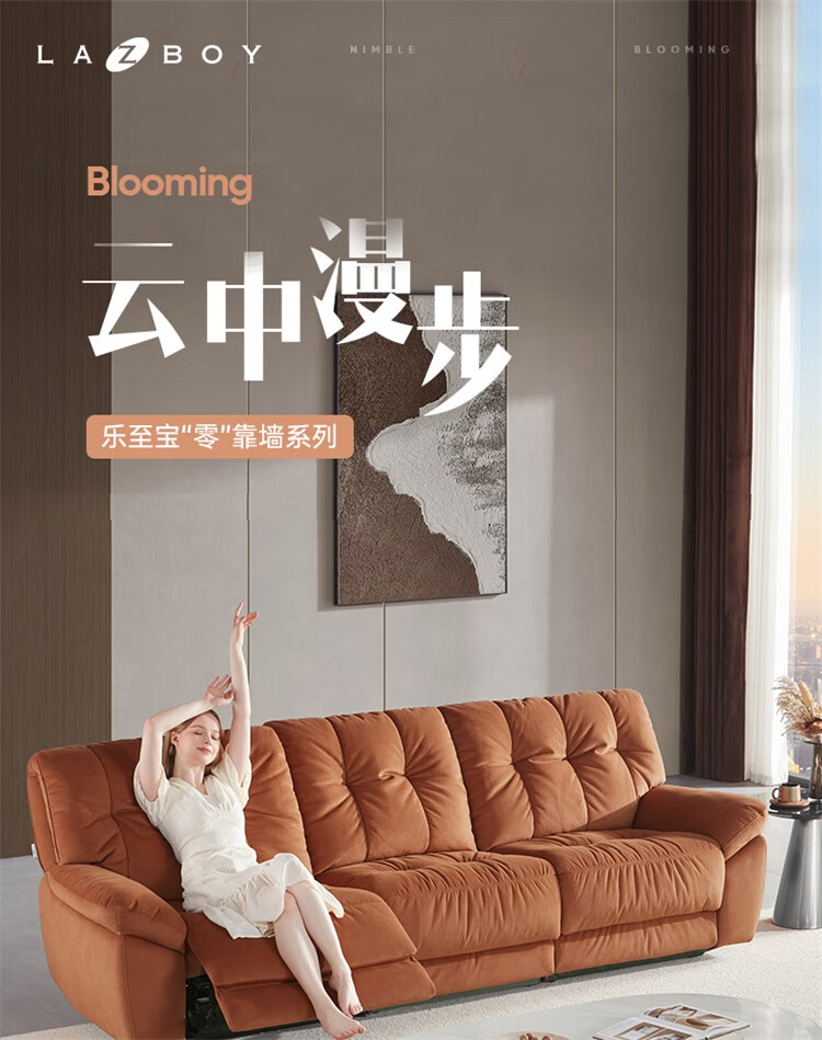 乐至宝LAZBOY奶油风云朵沙发客厅零靠墙双电动660云中漫步红【7天发】