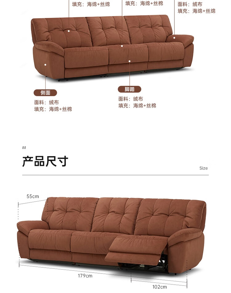 帕沙曼电动沙发床布艺小户型客厅复古风棉花糖可伸缩折叠功能沙发2713ZF 【智能三控款】3.07米多人位·单功能位 【旗舰版】抗菌防水雪尼尔TY74 (硅胶棉+竹炭海绵)