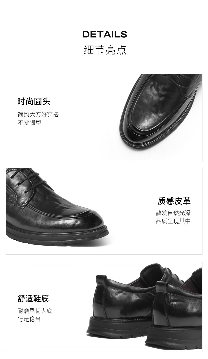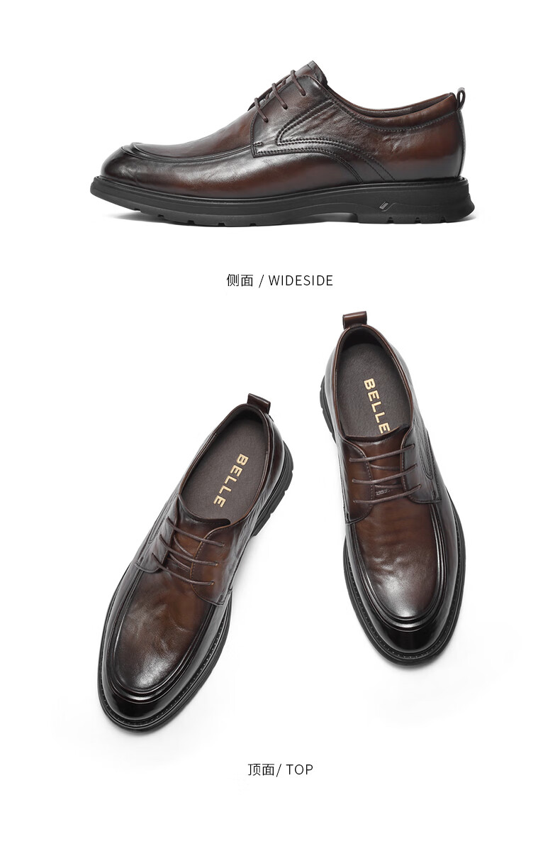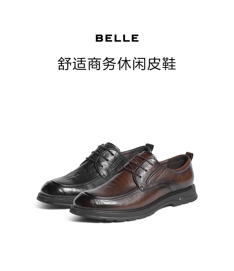 百丽简约商务鞋男2025新款秋商场同款牛皮革上班休闲皮鞋8VK01CM5 黑色 39 (245mm)