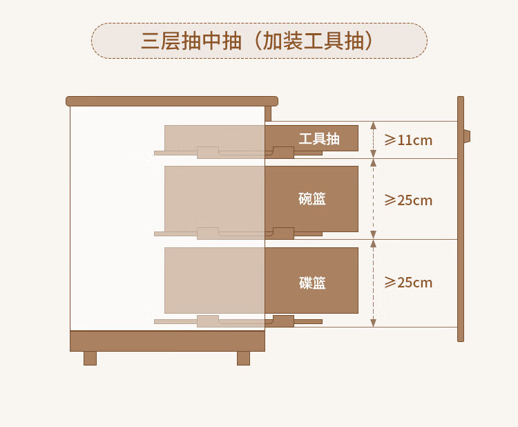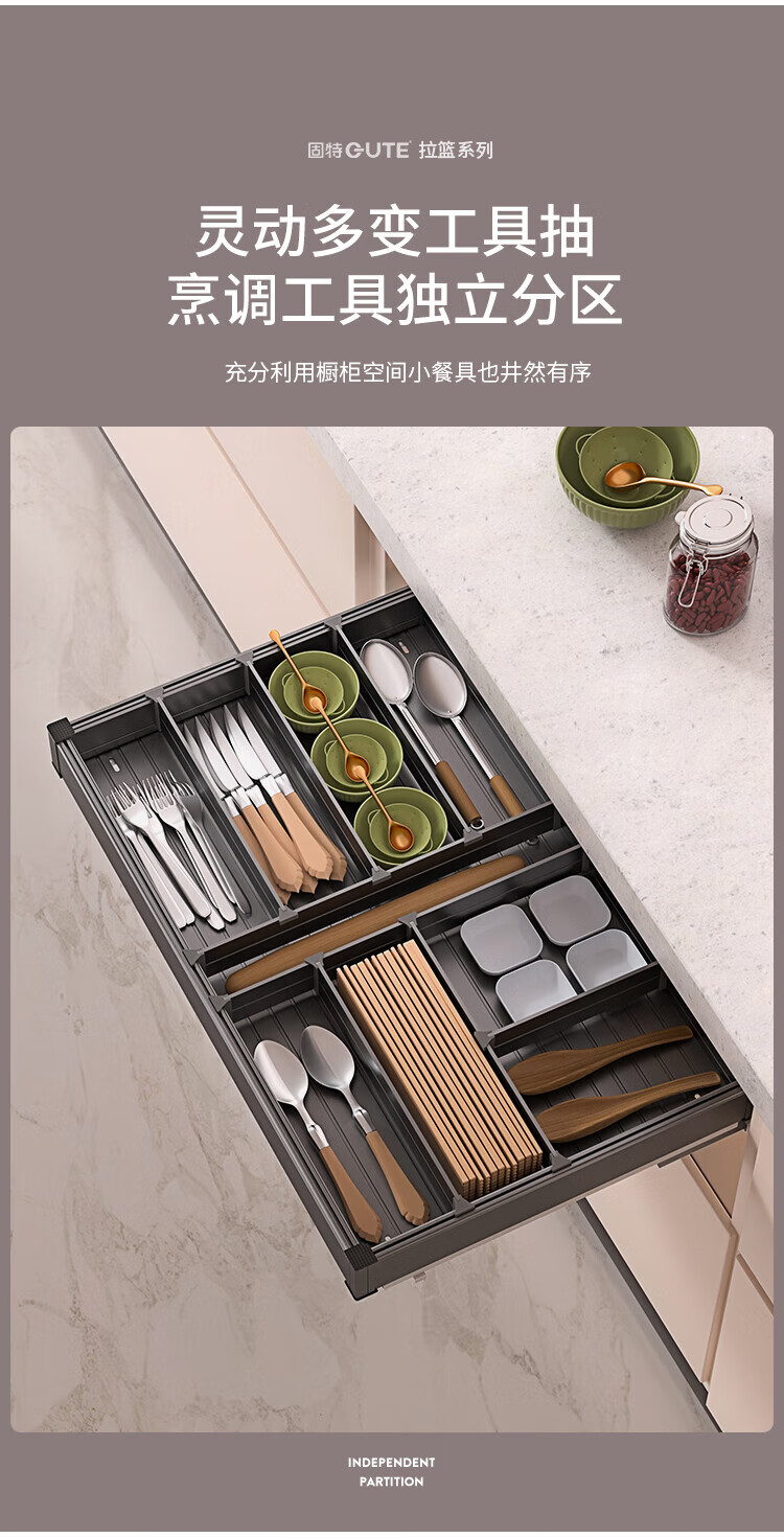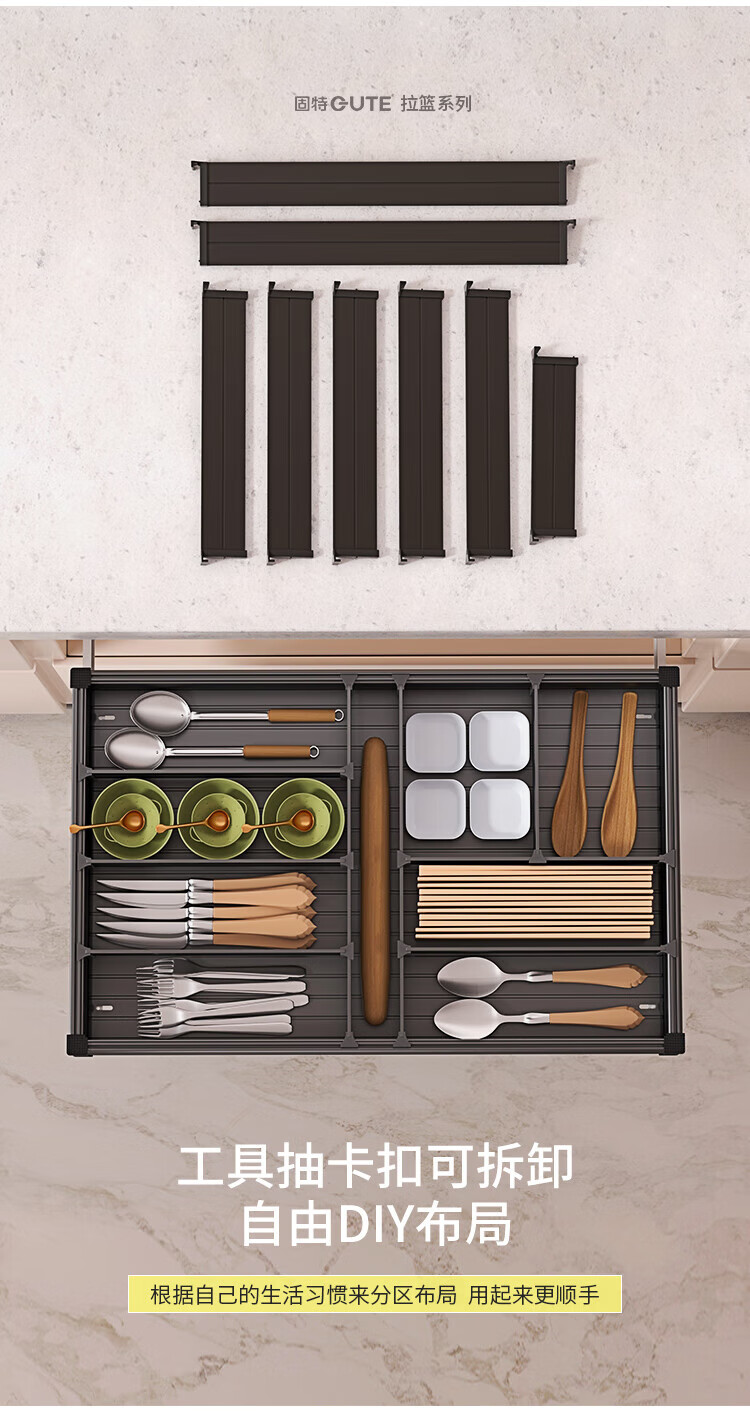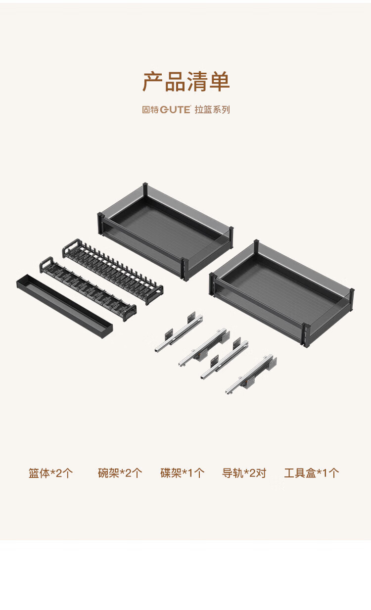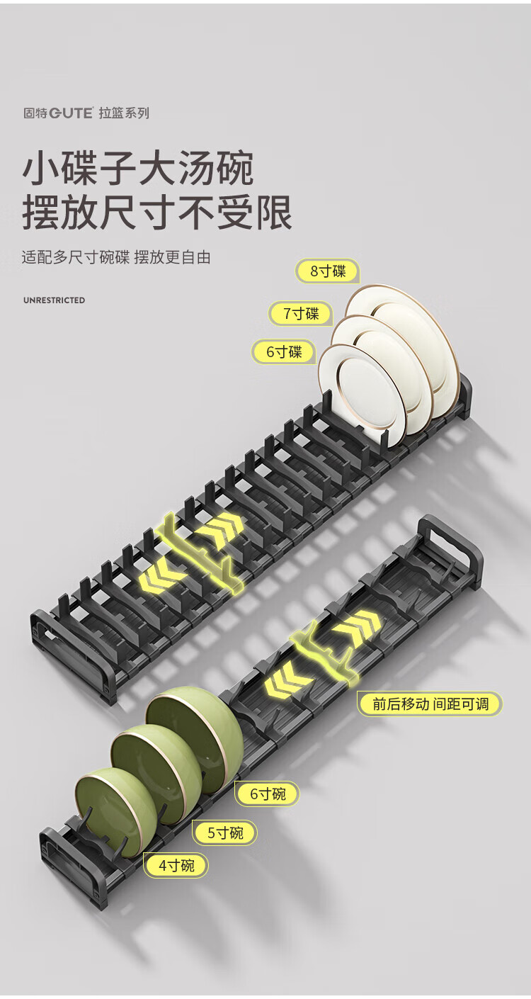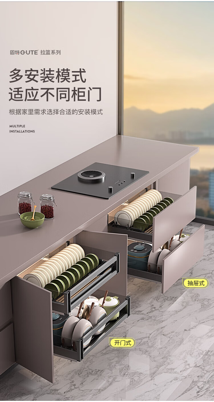 固特(GUTE)厨房拉篮橱柜抽屉式碗碟蓝收纳架橱柜加厚碗篮碗架置物架内置阻尼 【玻璃款600柜】铝合金单层 大容量收纳