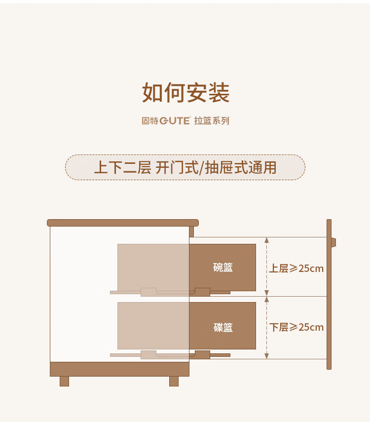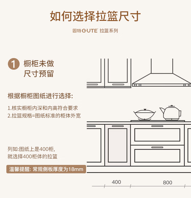 固特(GUTE)厨房吊柜下拉式橱柜缓冲拉篮升降拉篮收纳置物架调料篮 四档调节【玻璃款400柜】升降拉篮 缓冲降速
