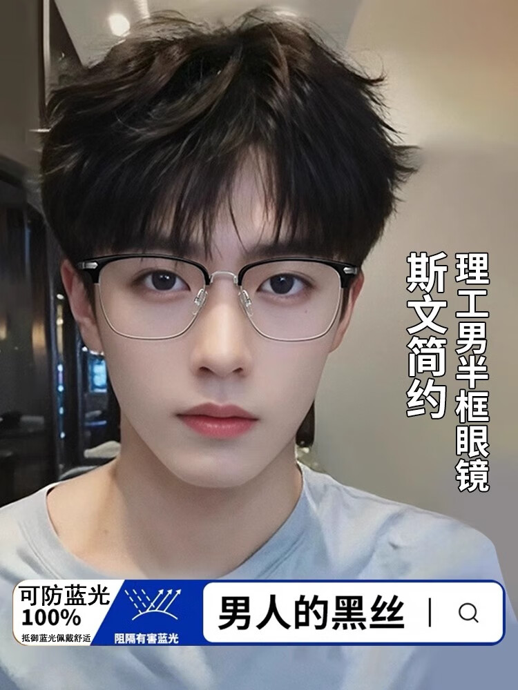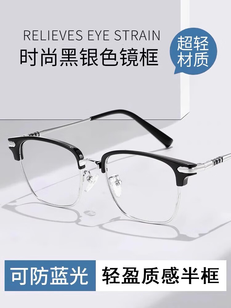 LESCA LUNETIER半框近视眼镜男款防蓝光辐射平光镜度数高级感斯文理工男痞帅眼镜