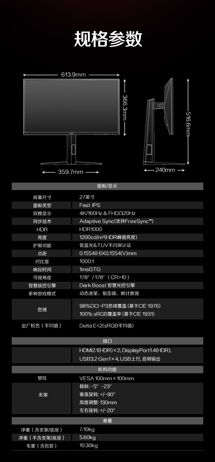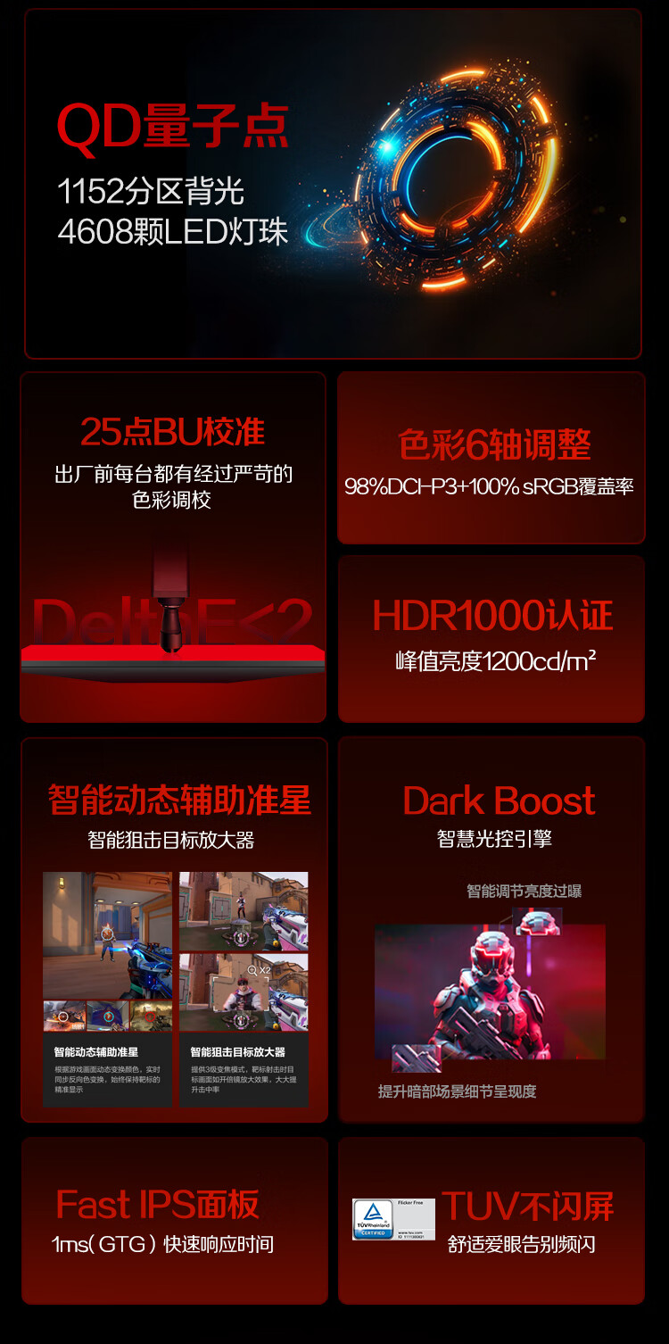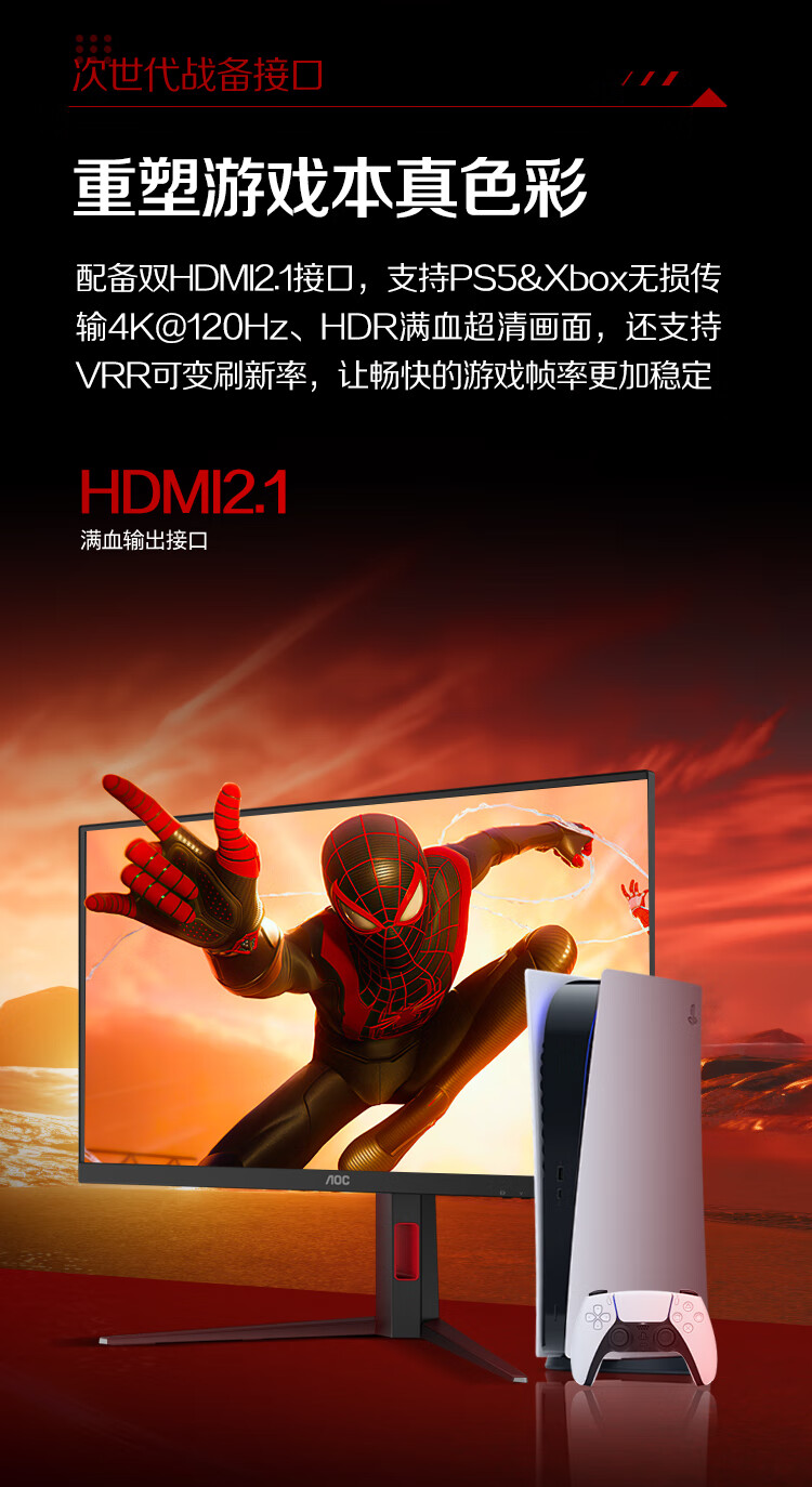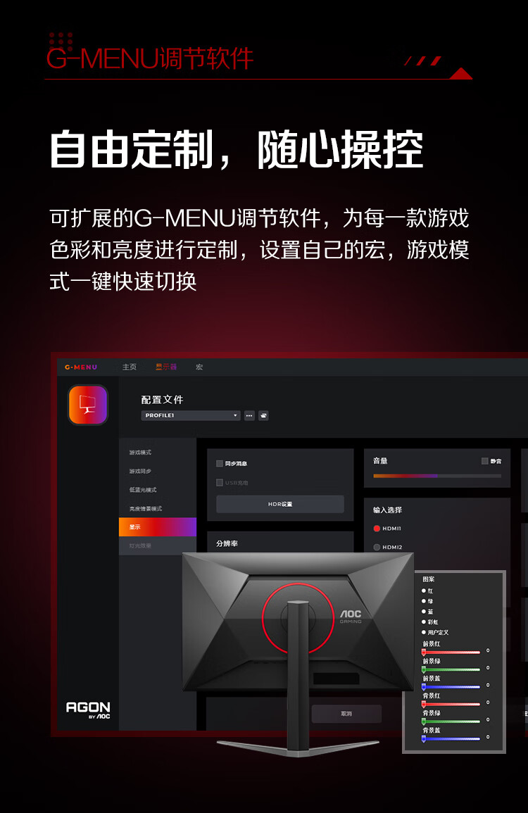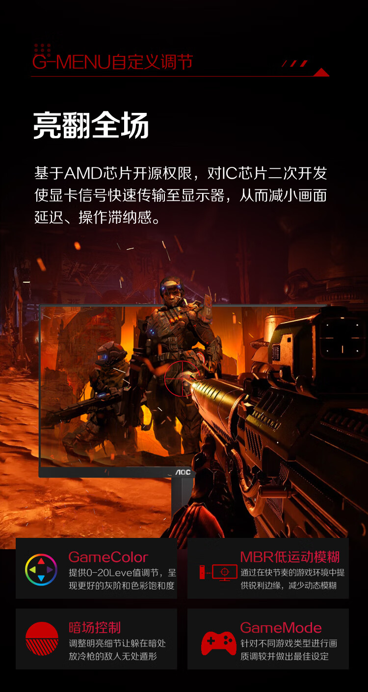 AOC 27英寸1152分区QD-MiniLED 4K 160Hz双模FHD 320Hz HDR1000 1ms 游戏电竞电脑显示器 逐光U27G4XM