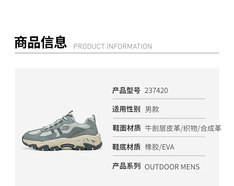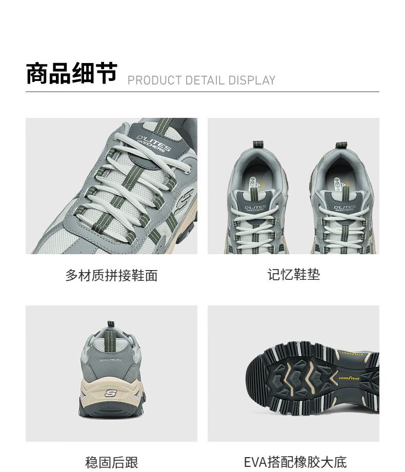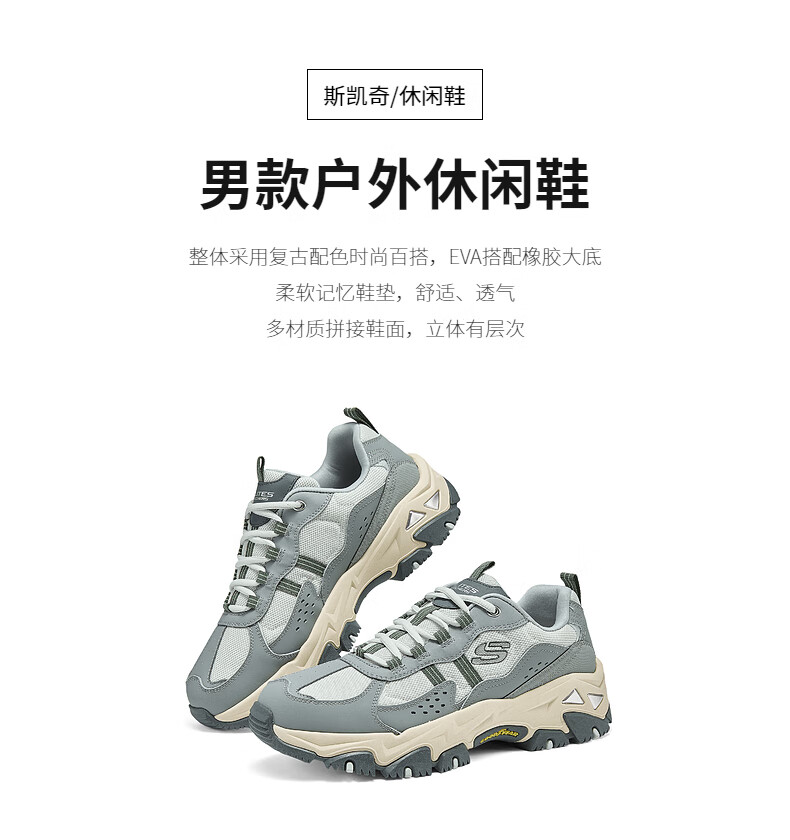 斯凯奇(Skechers)【成毅同款】男鞋户外登山鞋云屿闪穿减震徒步鞋透气运动鞋237420