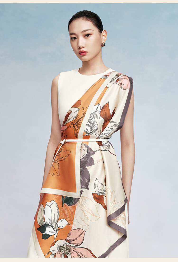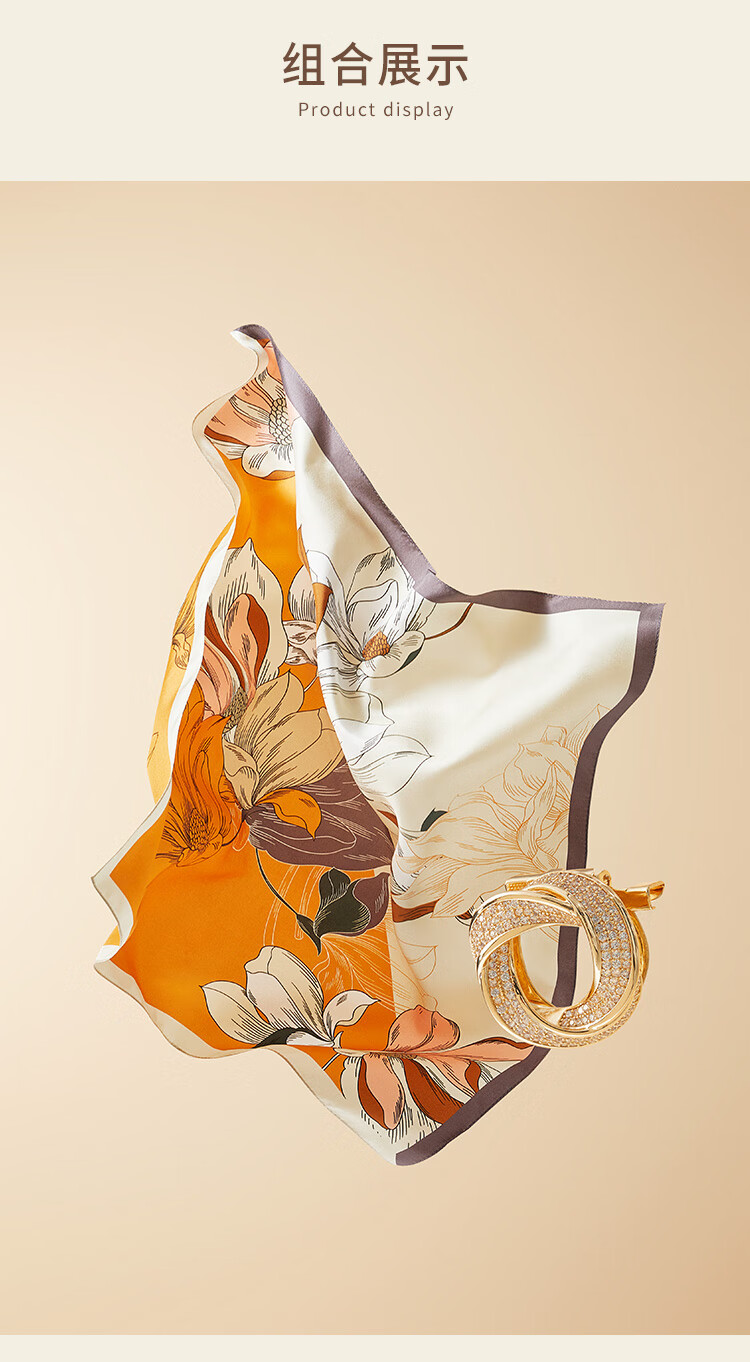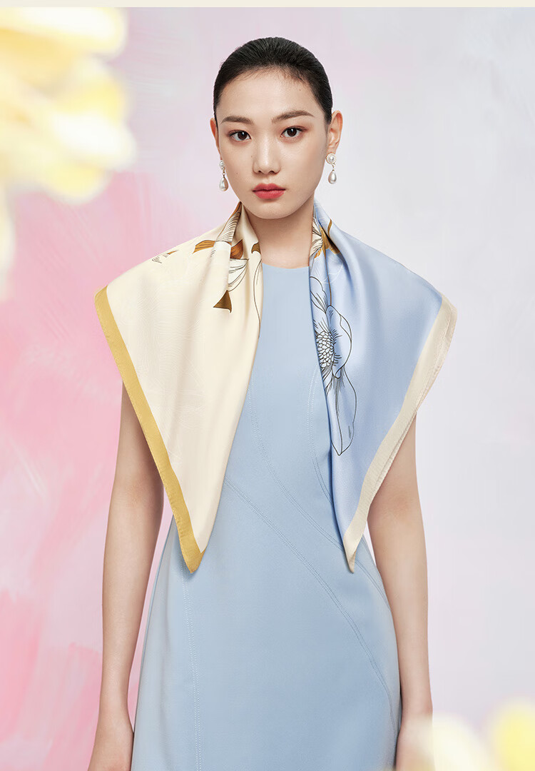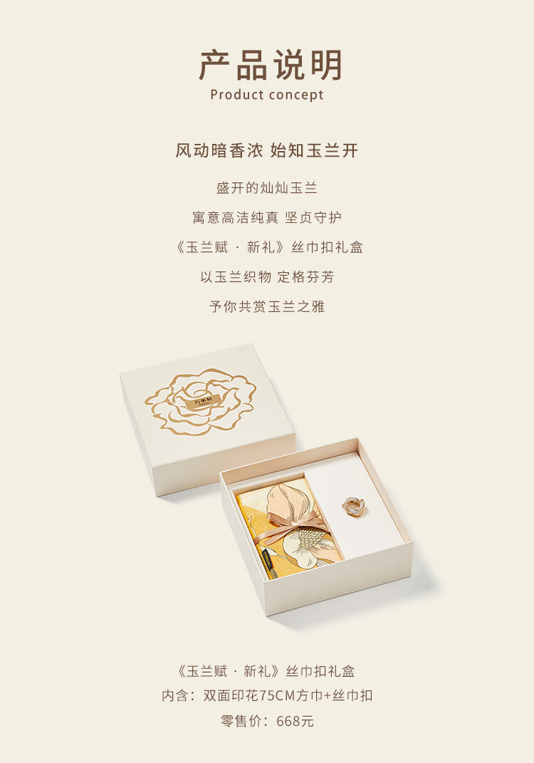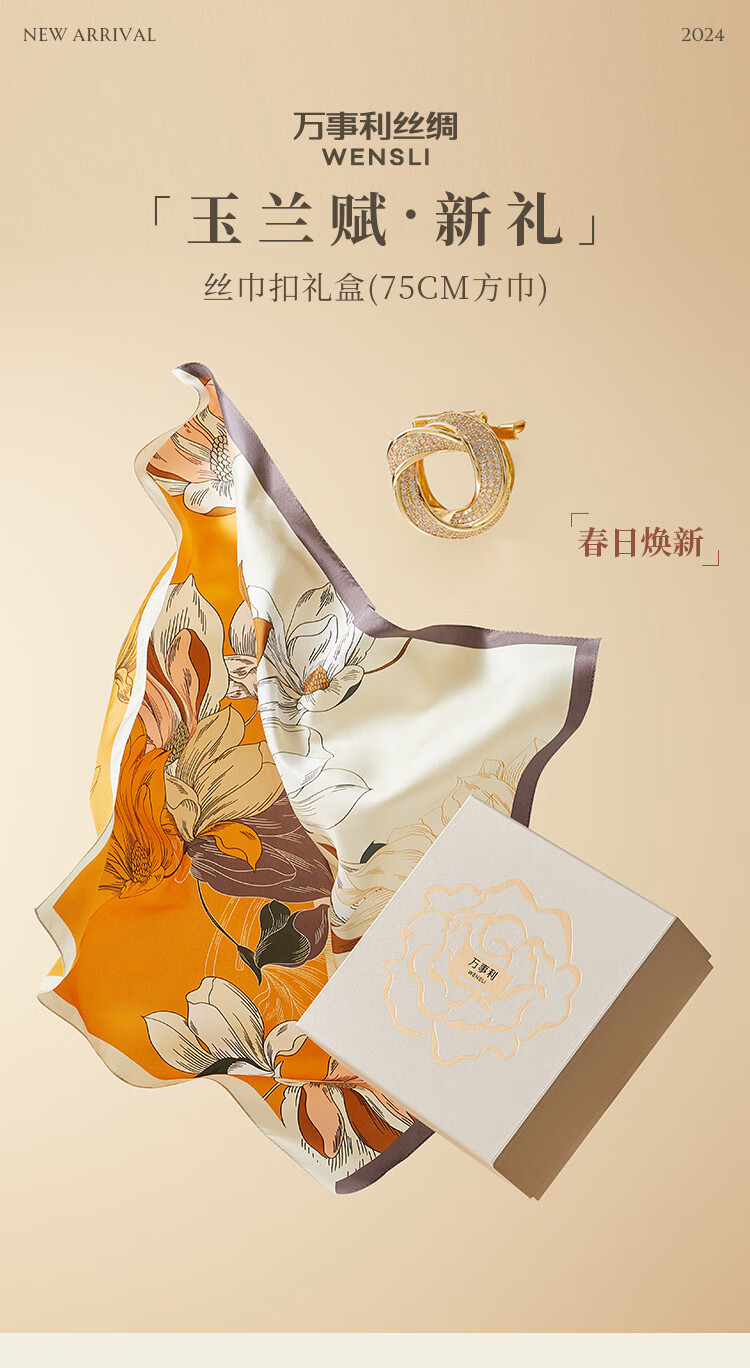 万事利真丝丝巾桑蚕丝75cm方巾丝巾扣礼盒送长辈妈妈生日礼物玉兰赋