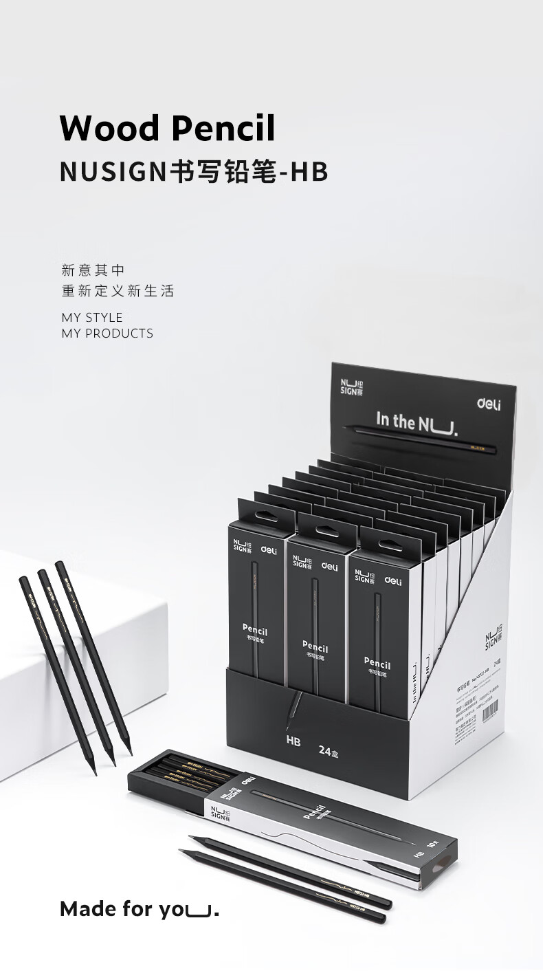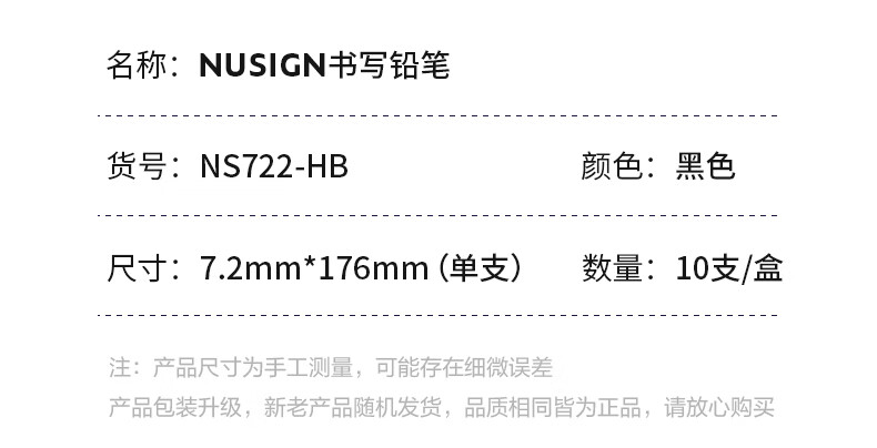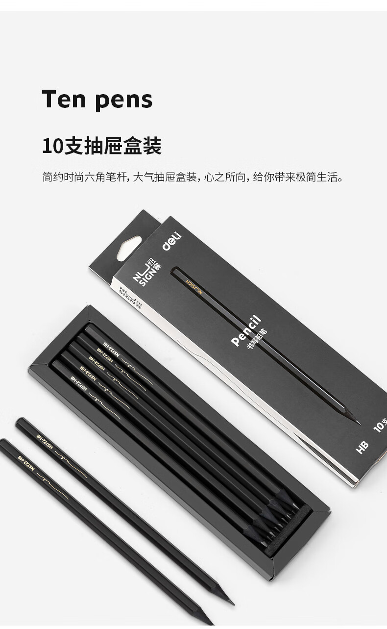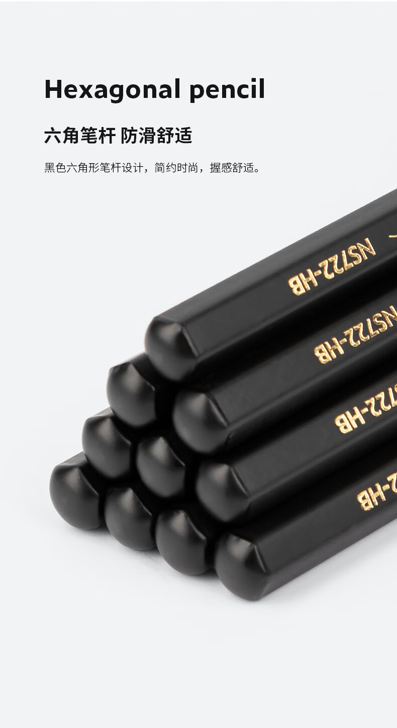 纽赛(NUSIGN)【热门商品】黑木铅笔六角杆绘画涂鸦考试绘图黑木铅笔礼物NS722-HB_10支装(黑)